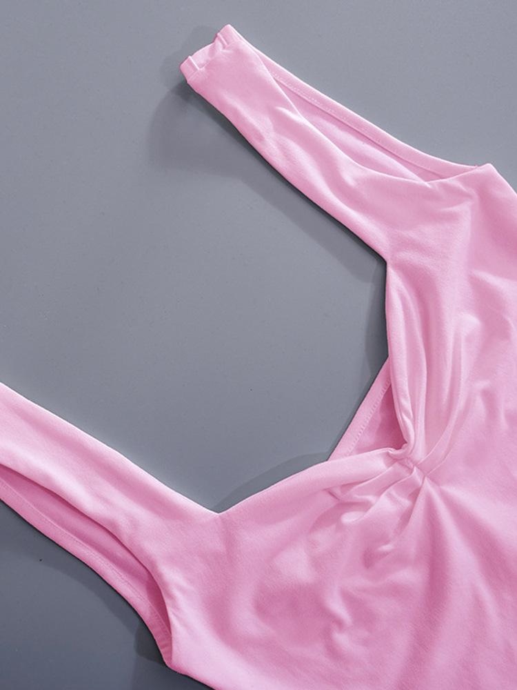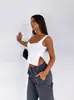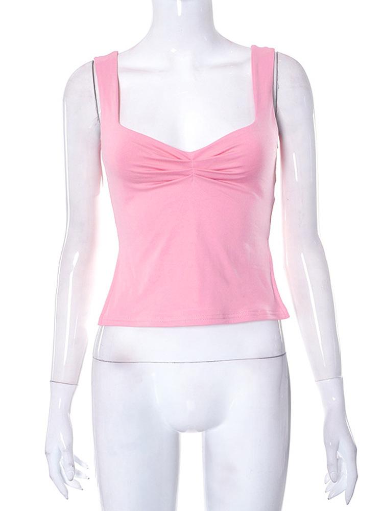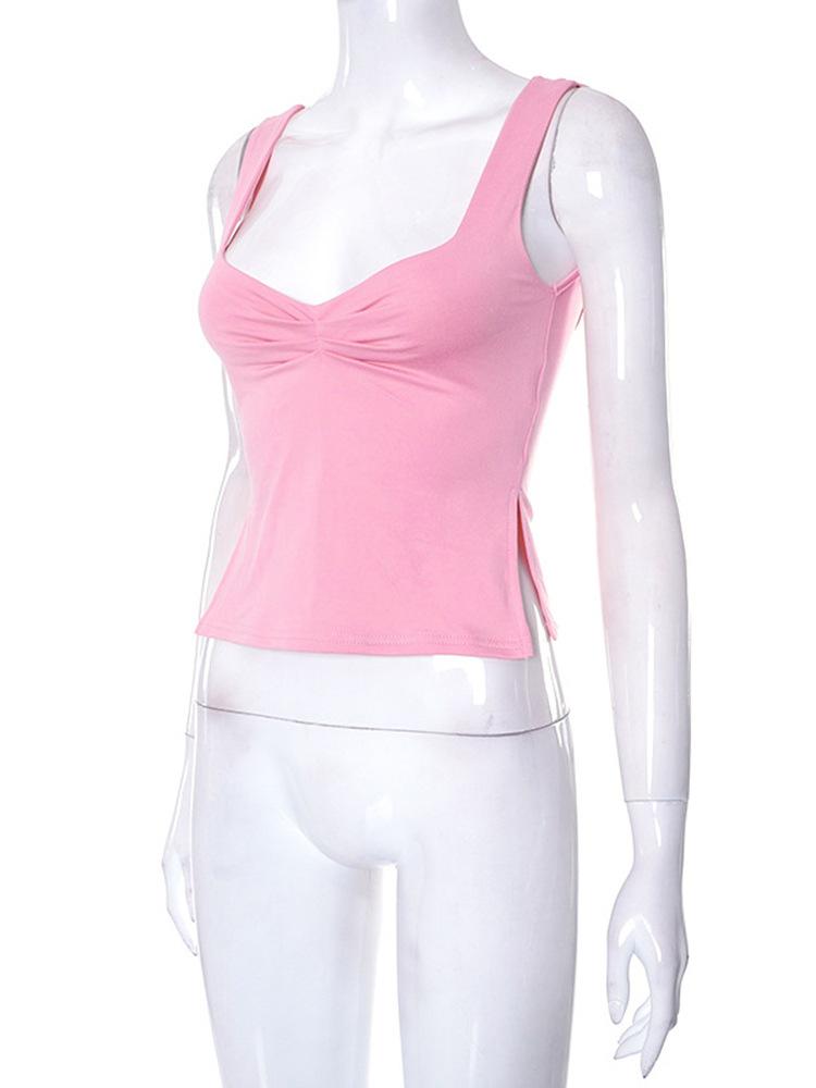 Top de color sólido de Spice Girls europeo y americano, corto de corte bajo, exhibe cintura, sexy, plisado, adelgazante, con abertura, moda callejera 24 verano