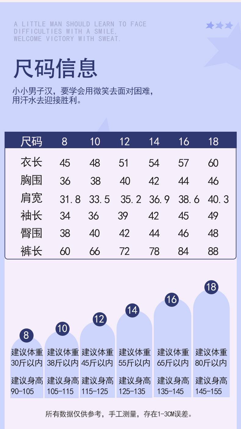 Size 8 (90-105cm), Size 10 (105-115cm), Size 12 (115-125cm), Size 14 (125-135cm), Size 16 (135-145cm), Size 18 (145-155cm)