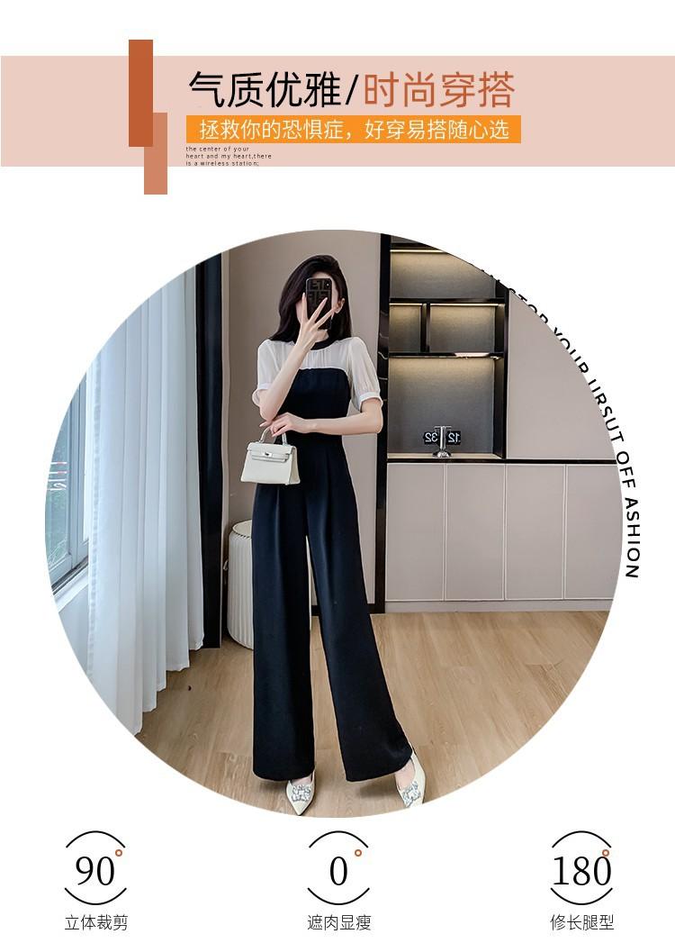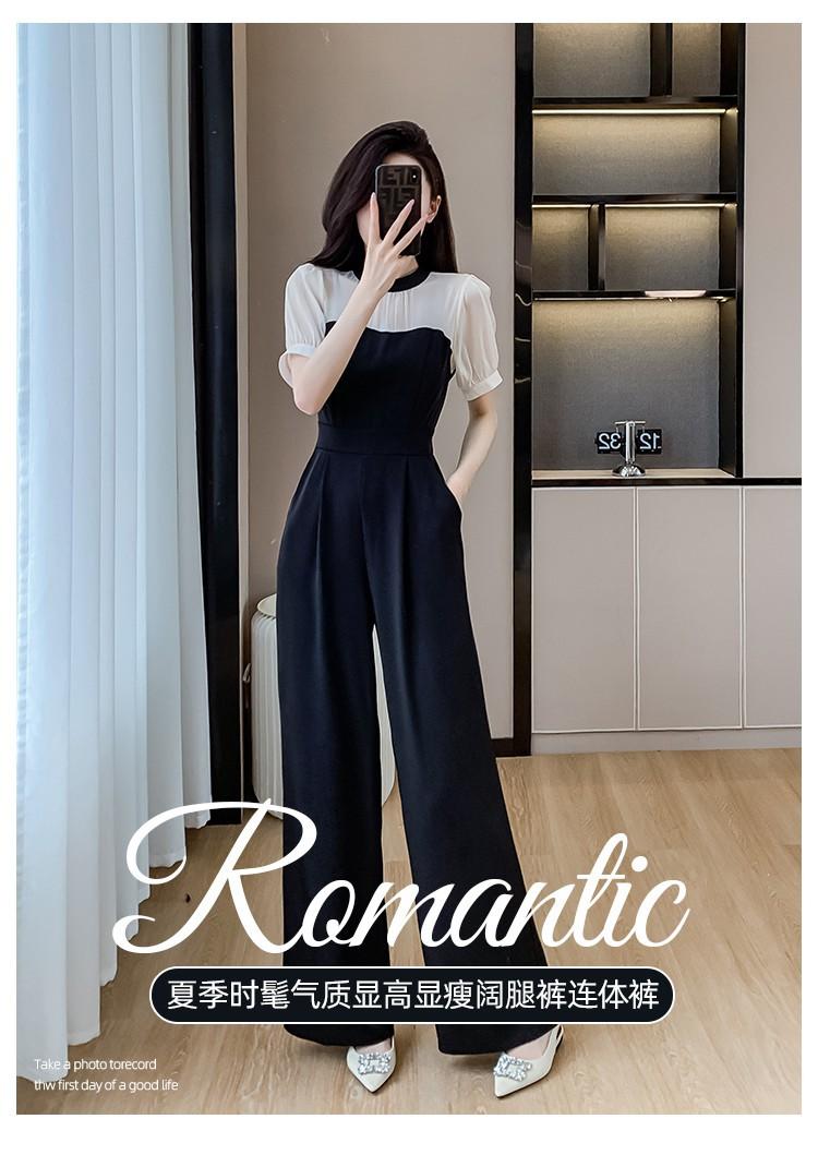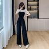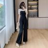 Mono Socialite de Cintura Alta y Pierna Ancha Transfronterizo Moda 2024 Elegante Ajustado Adelgazante Mono Negro Verano