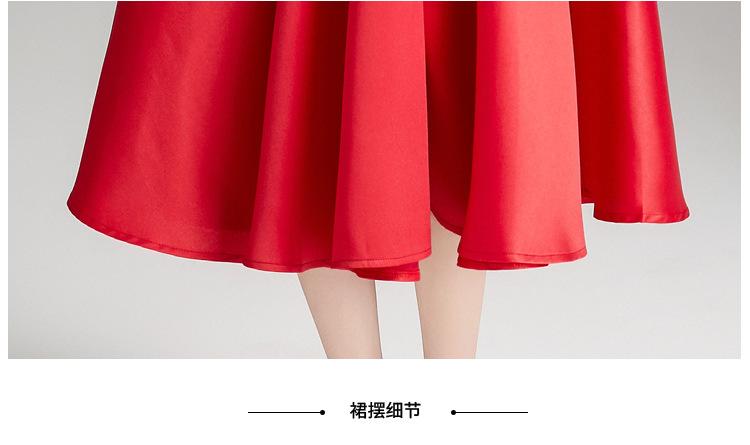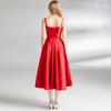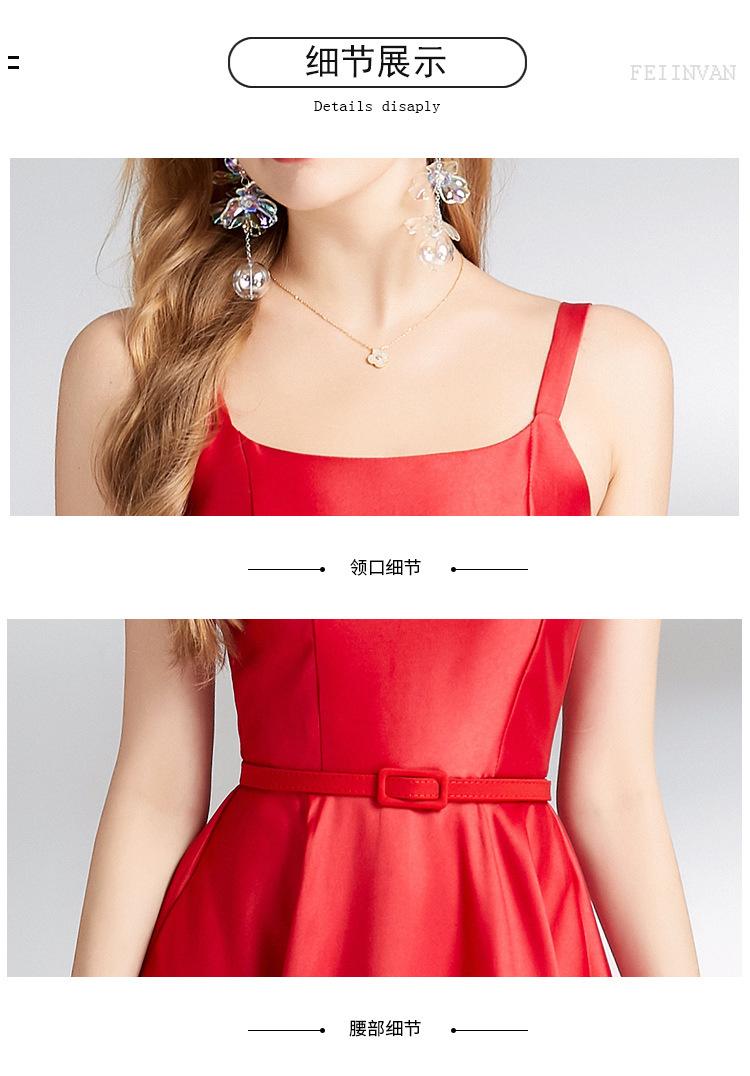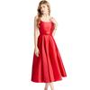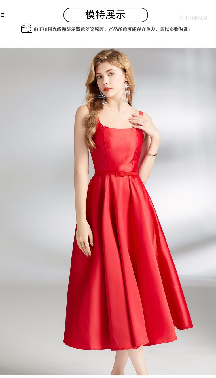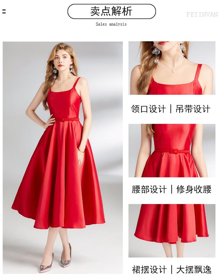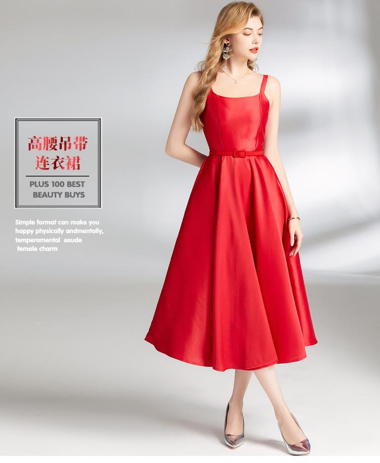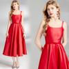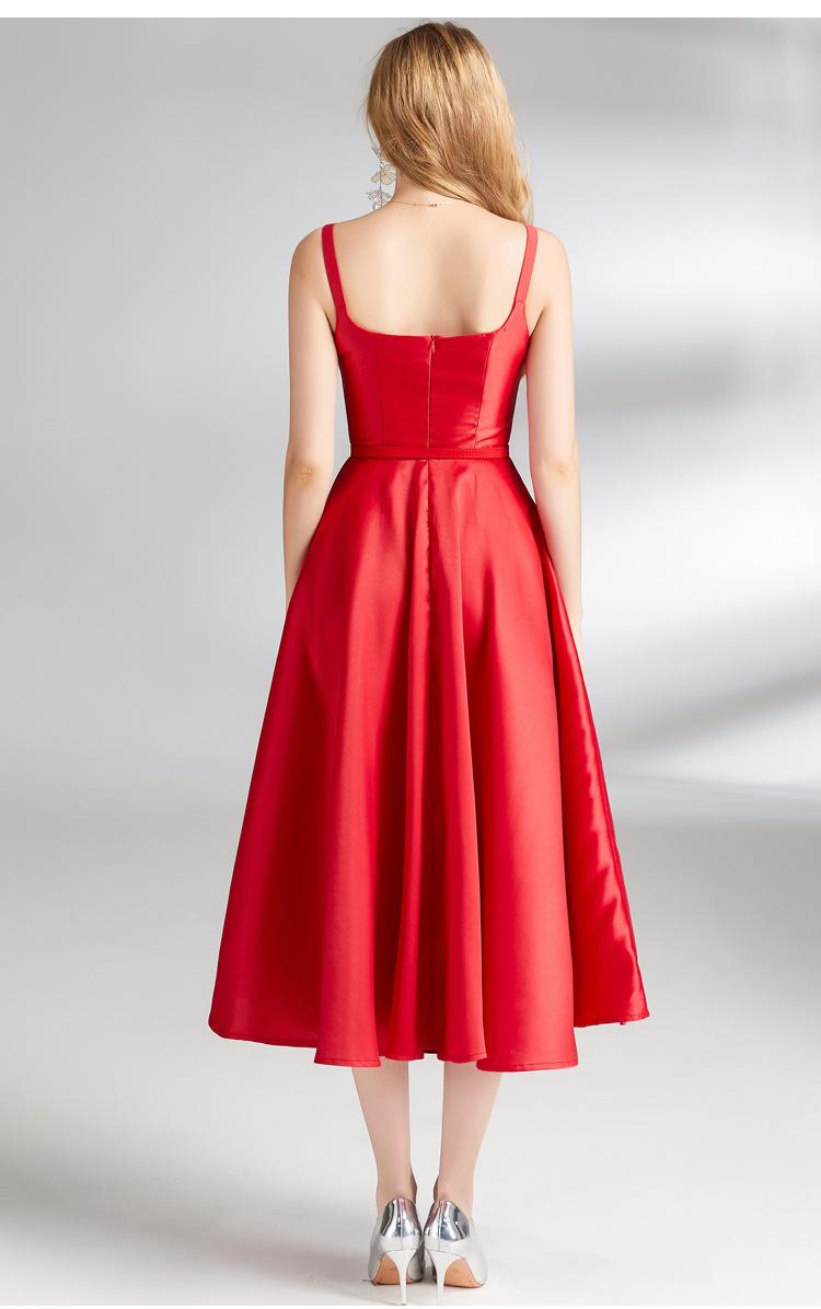 Vestido Rojo Estilo Hepburn de Moda Adelgazante de Cintura Vestido de Tirantes Nuevo para Mujer Ajustado con Cinturón