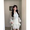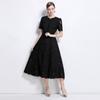 Vestido floral negro de verano para mujer, nuevo estilo francés, falda lencero con pintura de tinta retro, falda de alta calidad para vacaciones en la playa.