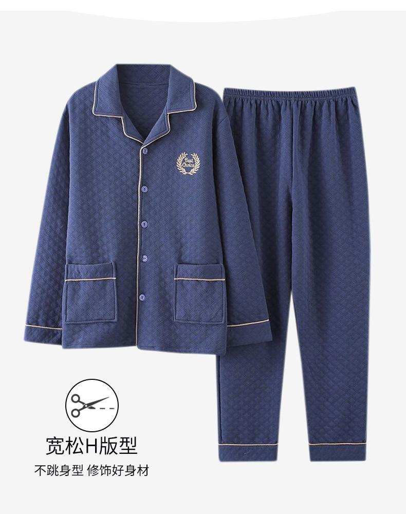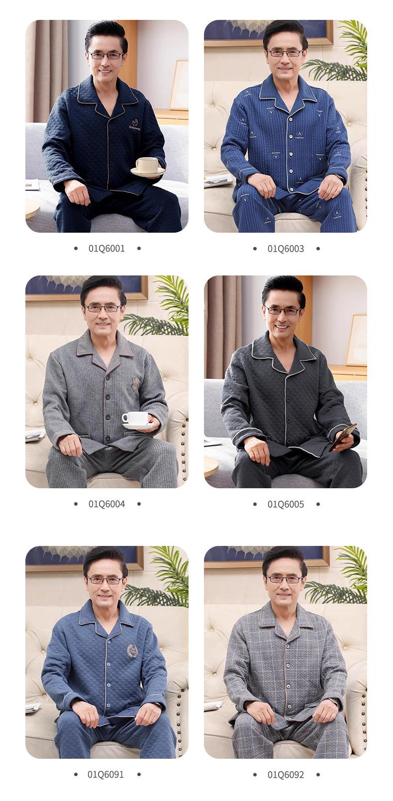 Pijamas para hombres de mediana edad y ancianos, estilo primavera y otoño, de algodón grueso tipo sándwich, de manga larga, para el hogar, para papá, para uso exterior.