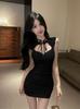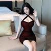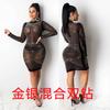 Nuevo Vestido de Noche de Moda Europea para Club Nocturno con Cuello Colgante, Ajustado, Delgado, con Pliegues y Malla, Talla Plus 200 Jin