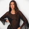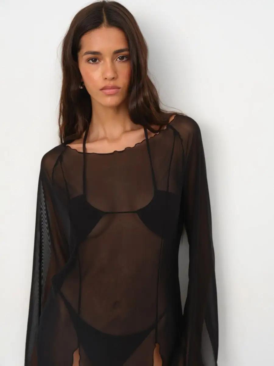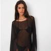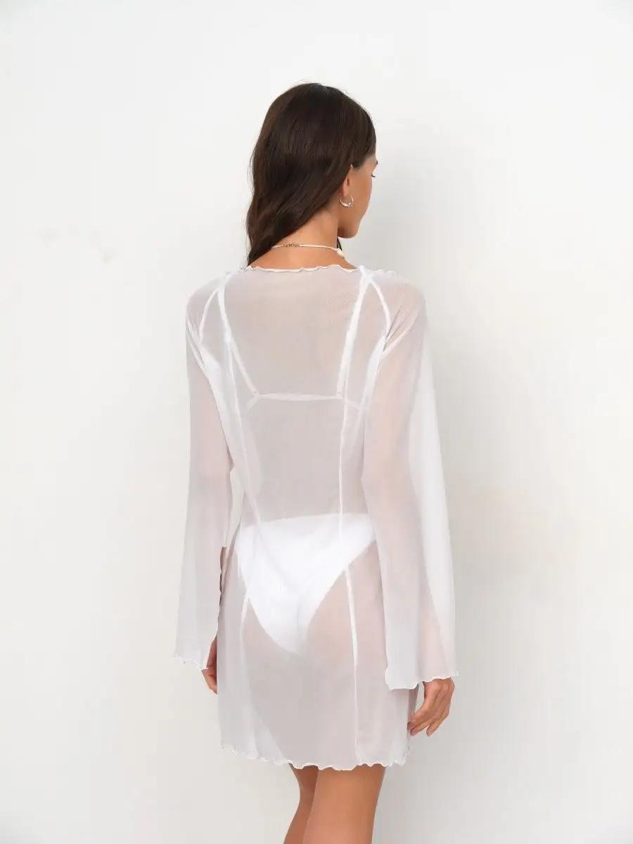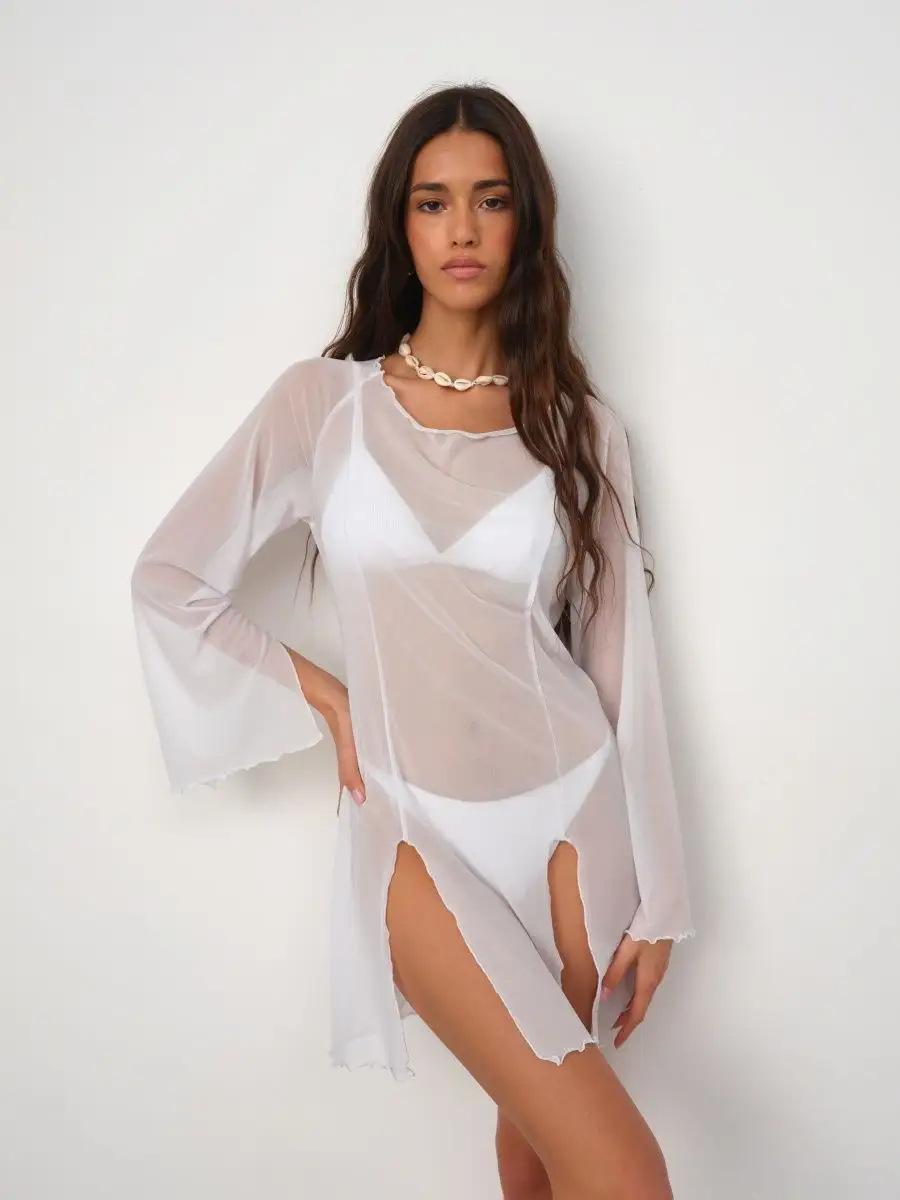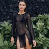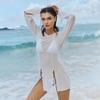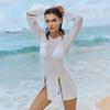 Europeo y Americano Transfronterizo 2025 Verano Nuevo Color Sólido Abertura Chifón Casual Falda Suelta Cuello Redondo Manga Larga Copa Transparente