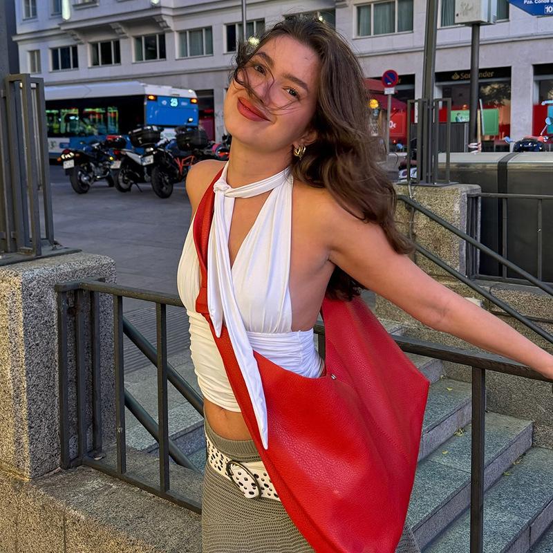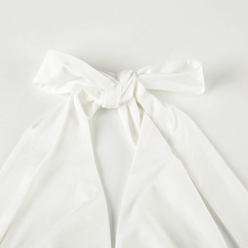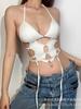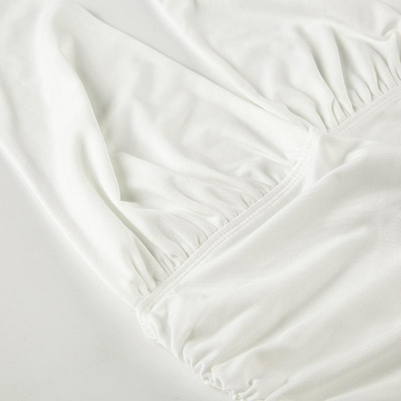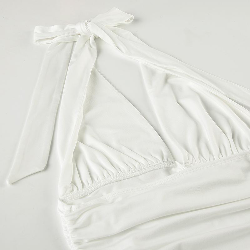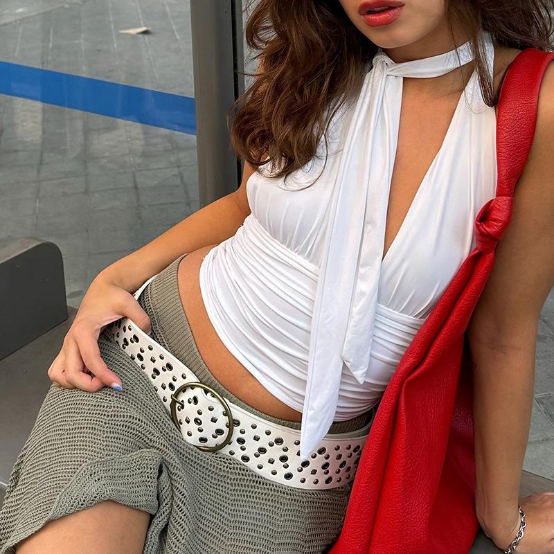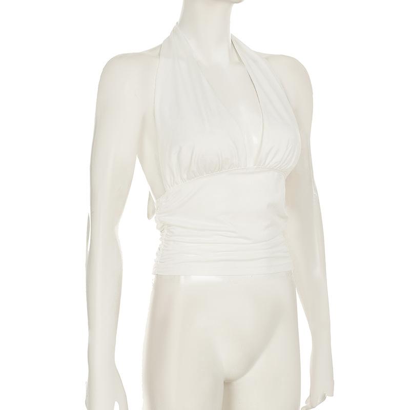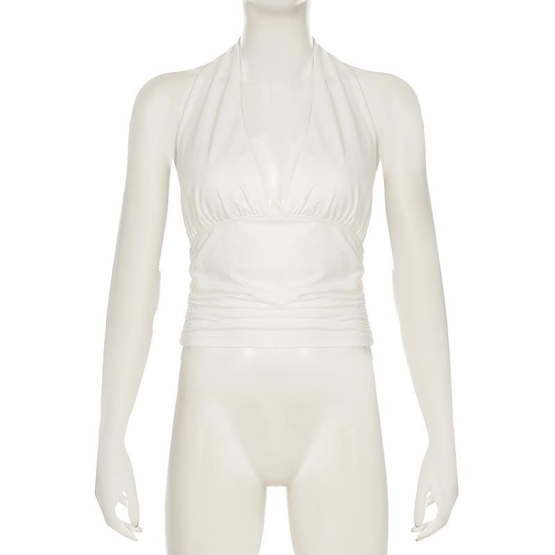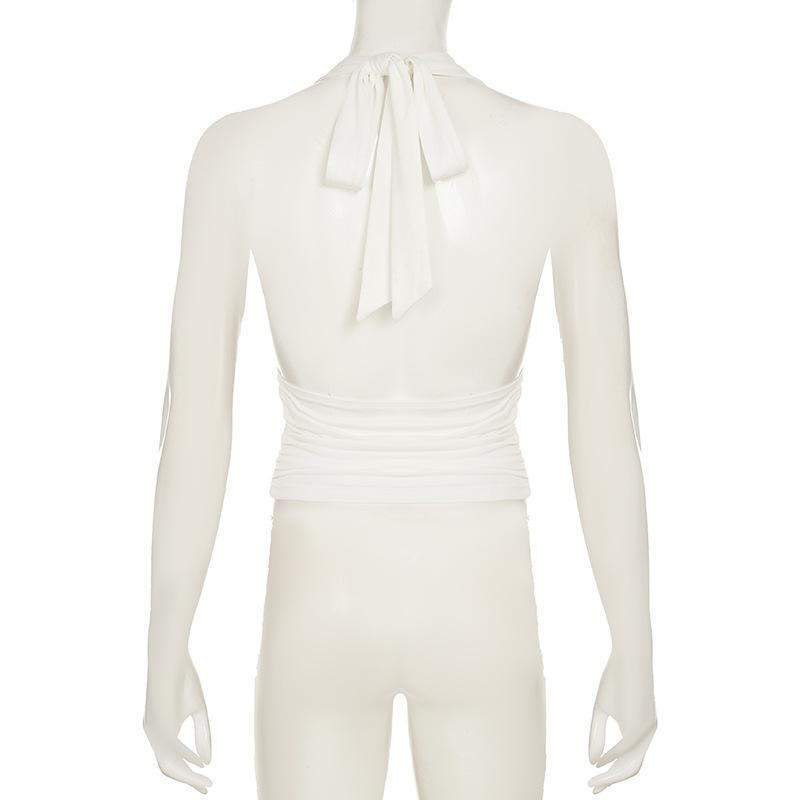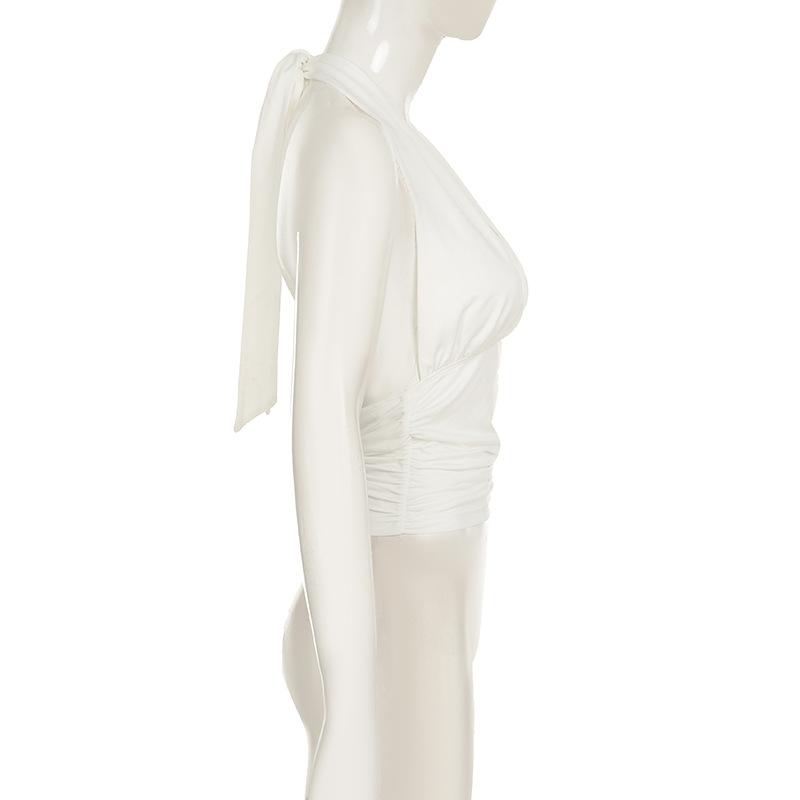 Top blanco sexy sin mangas con escote en V profundo, plisado y cordones