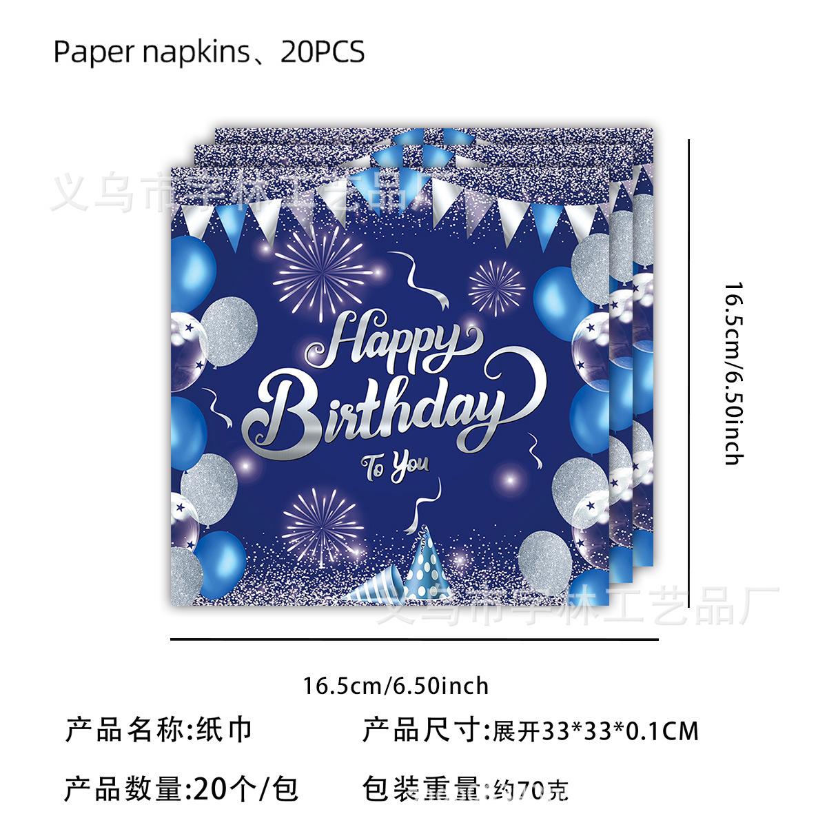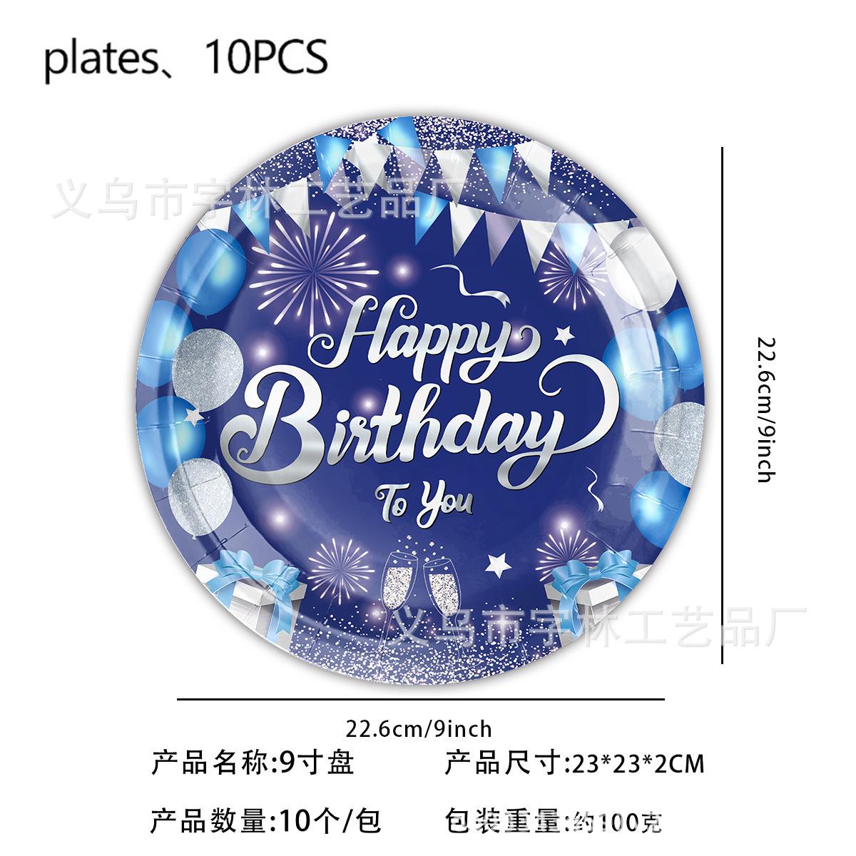 Suministros para fiesta de cumpleaños azul marino clásico, vajilla desechable, plato de papel, mantel, globo, decoración de fiesta azul plateado