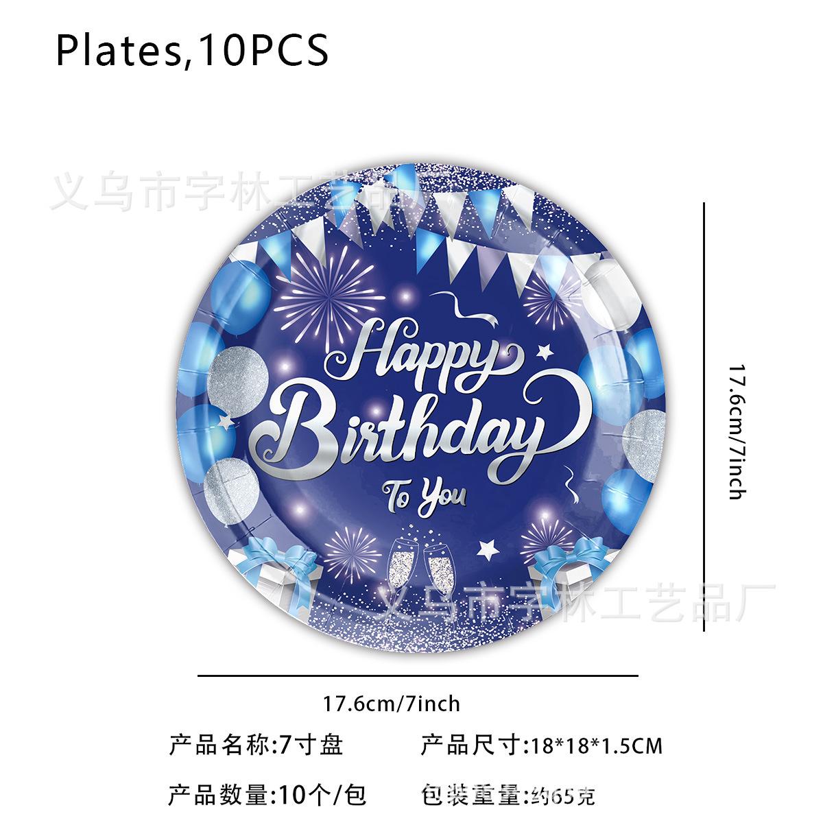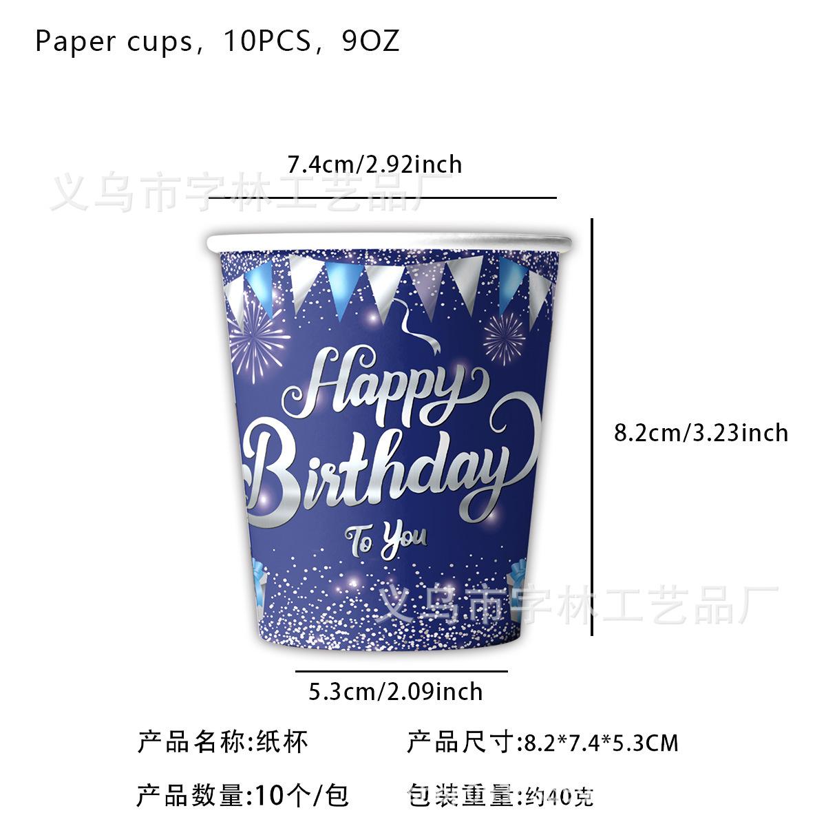 7inch plate 10pcs-blue silver birthday, 9inch plate 10pcs-blue silver birthday, Paper cup 10pcs-blue and silve...