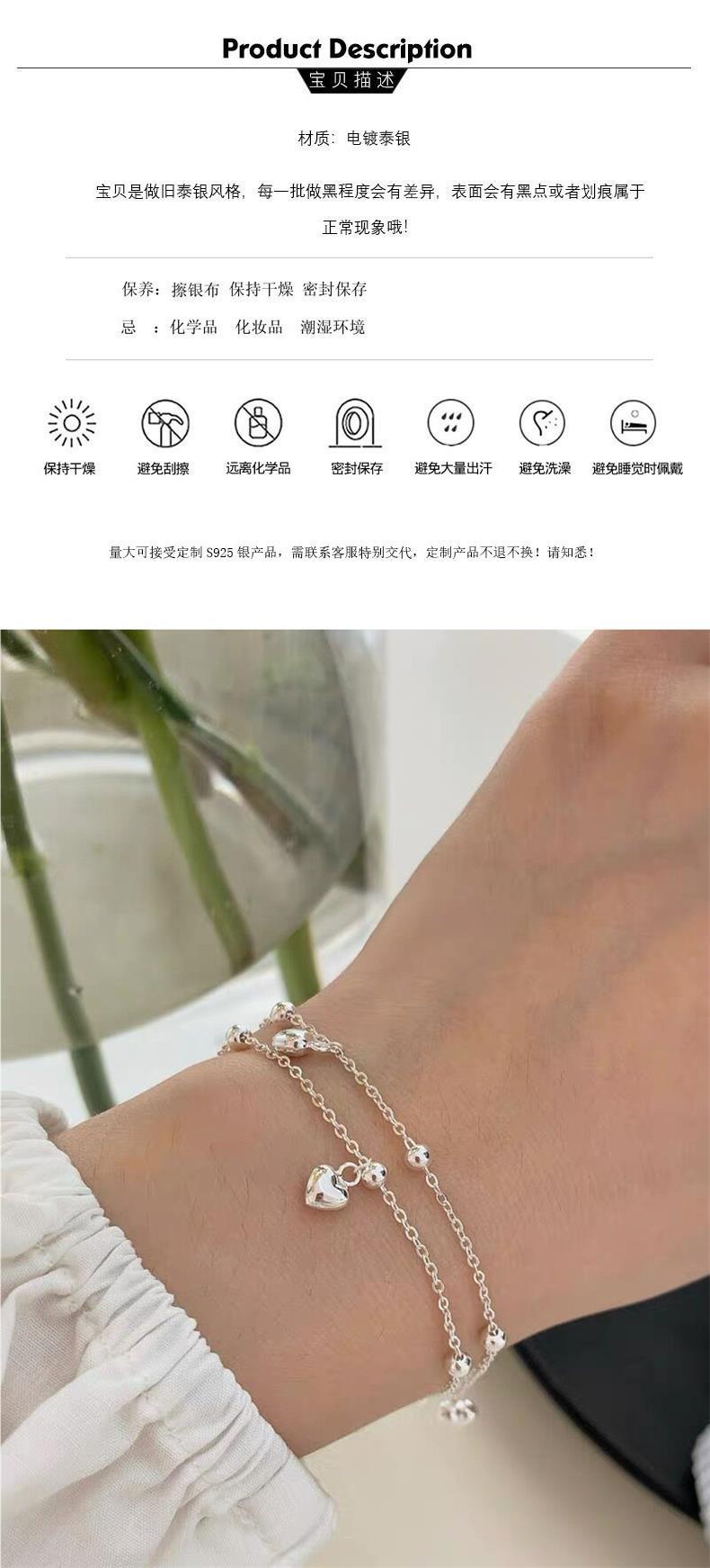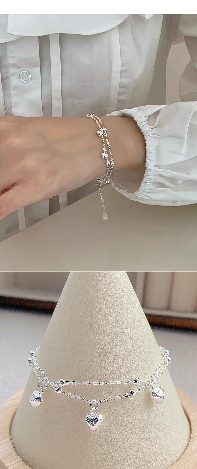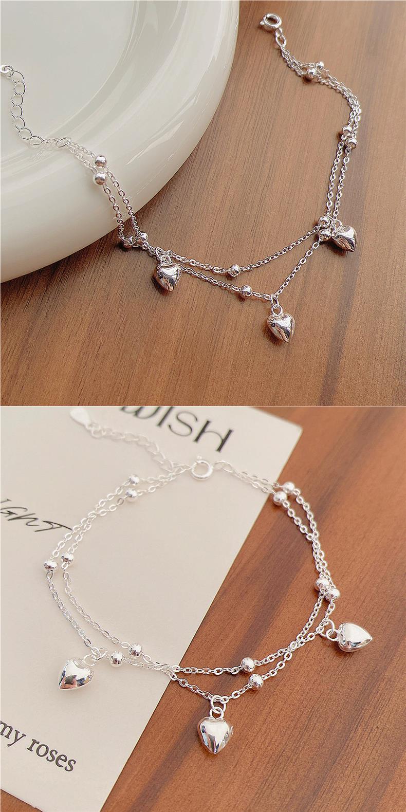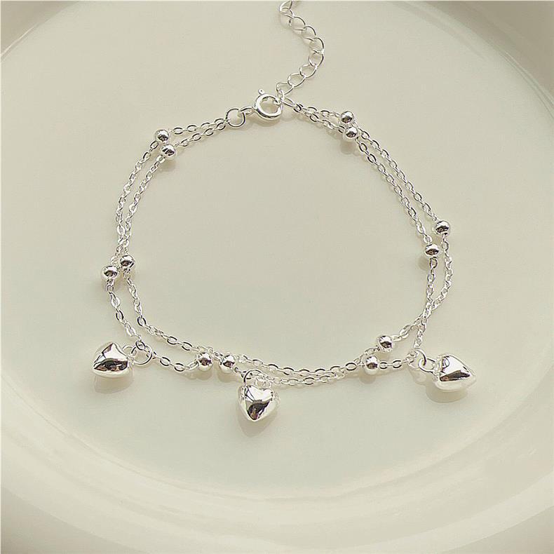 Dulce Pulsera de Amor de Doble Capa para Mujer, Simple, a la Moda, Combinable, Exquisita, Elegante, Chapada en Plata S925, Pulsera de Moda Ins