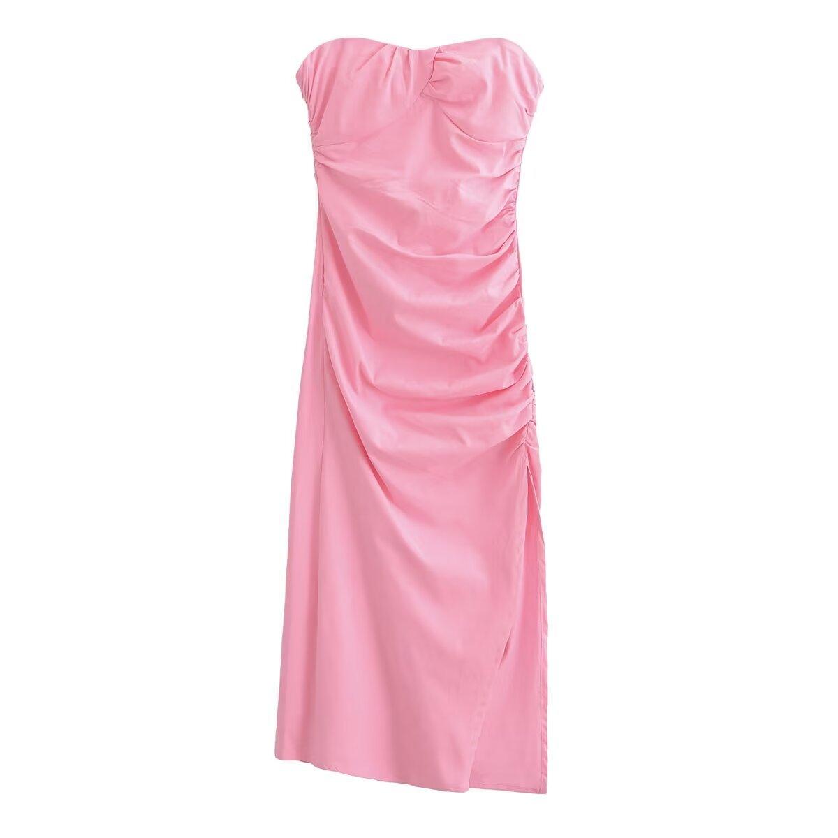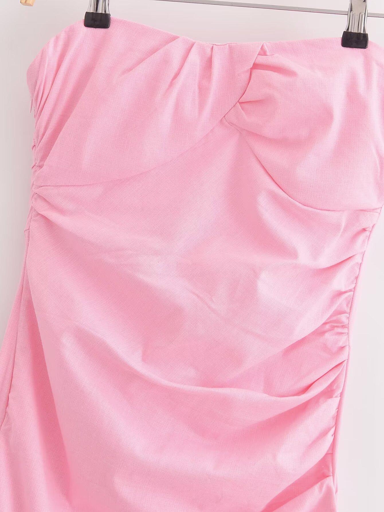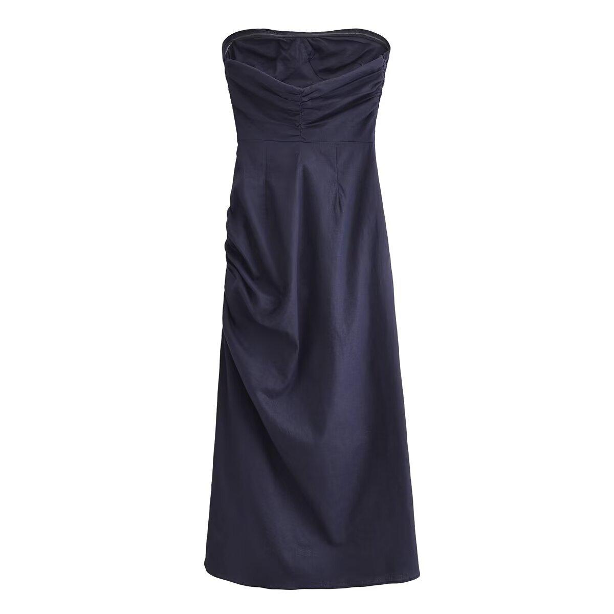 Vestido ajustado de color liso sin tirantes, de mezcla de lino, sexy, de moda europea y americana para mujer, novedad de verano de 2024