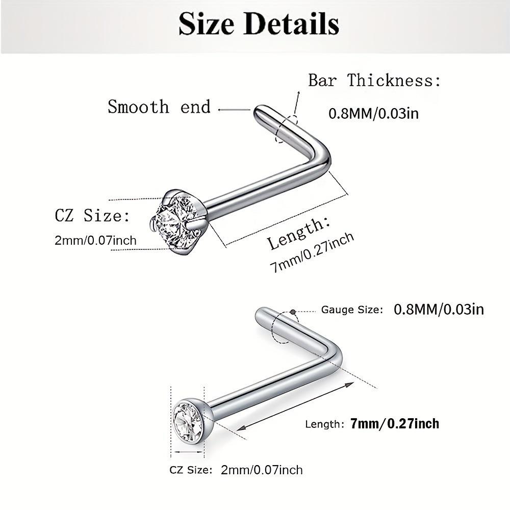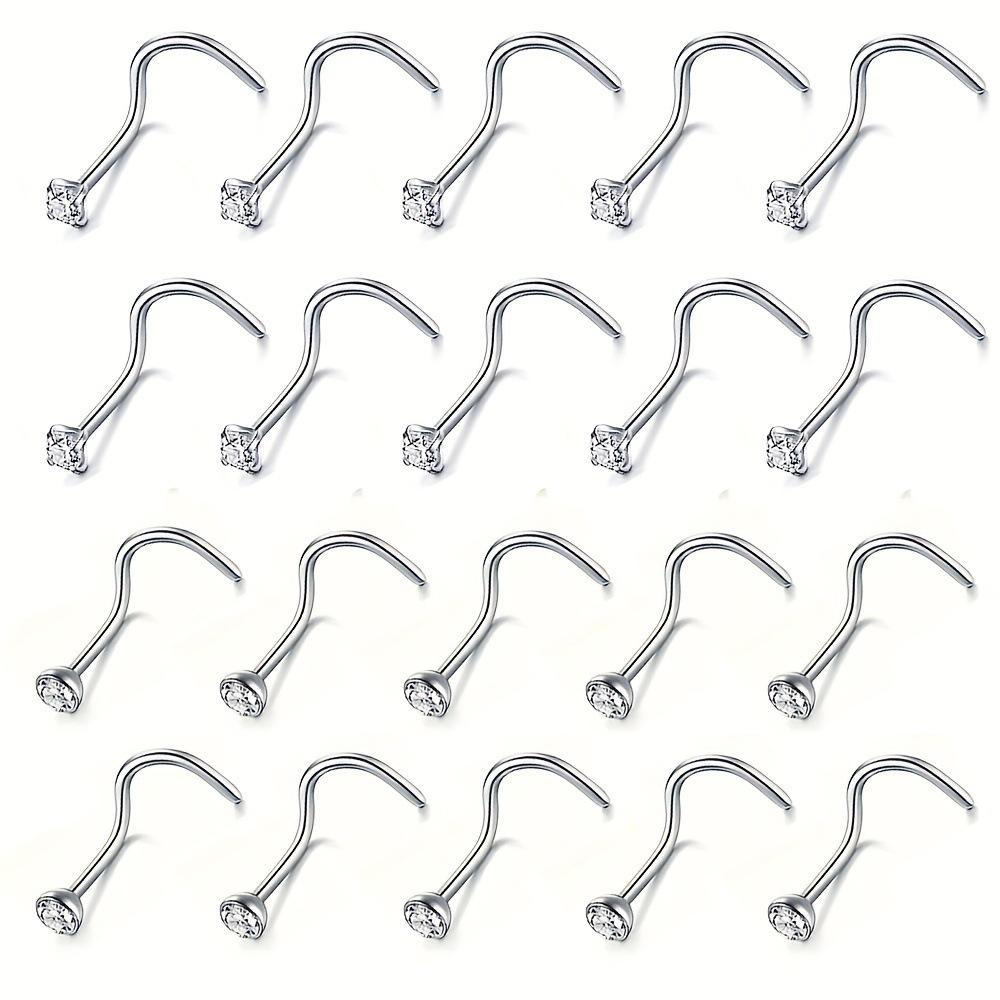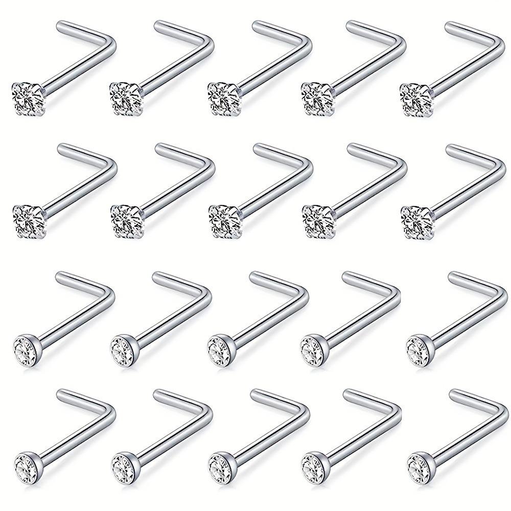 Transfronterizo 20 piezas de acero inoxidable anillo de nariz barra L barra curva circonita con incrustaciones de diamantes joyería para perforación traje combinado venta caliente de Amazon