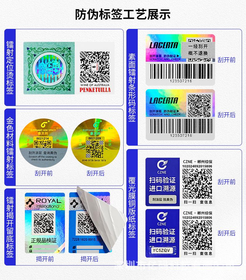 Laser positioning ironing, Plain laser barcode, Golden laser qr code, Laser uncovering the bottom, Conventional copper paper