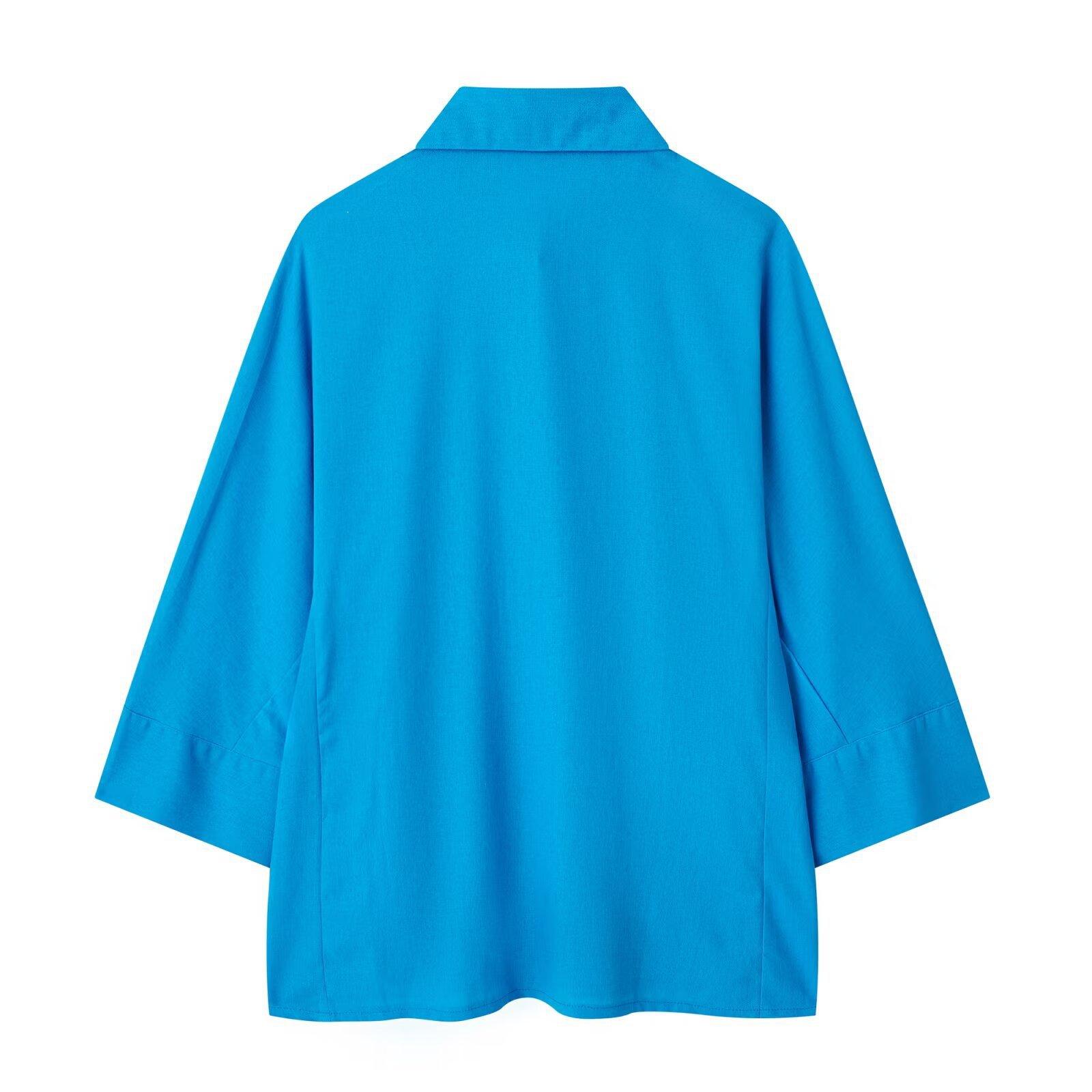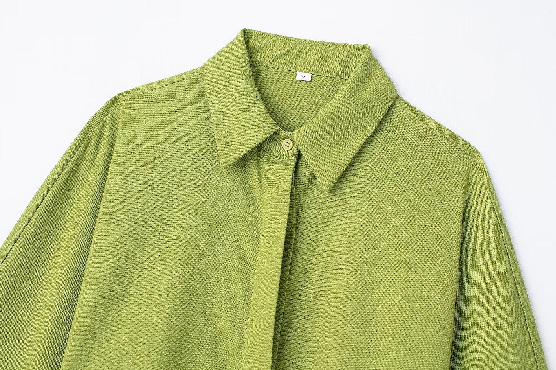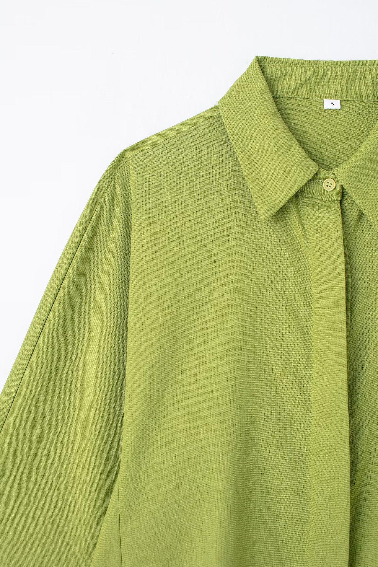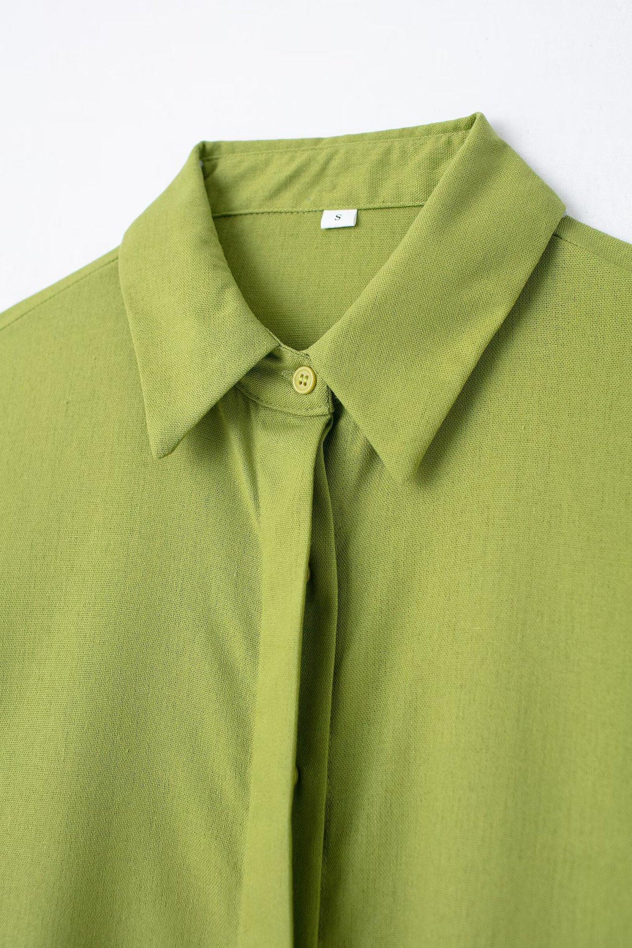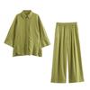 2024 Nuevo Estilo de Verano para Mujer Estilo Europeo y Americano Solapa Lino Camisa Holgada + Pantalones Casuales Caída Casual Color Puro