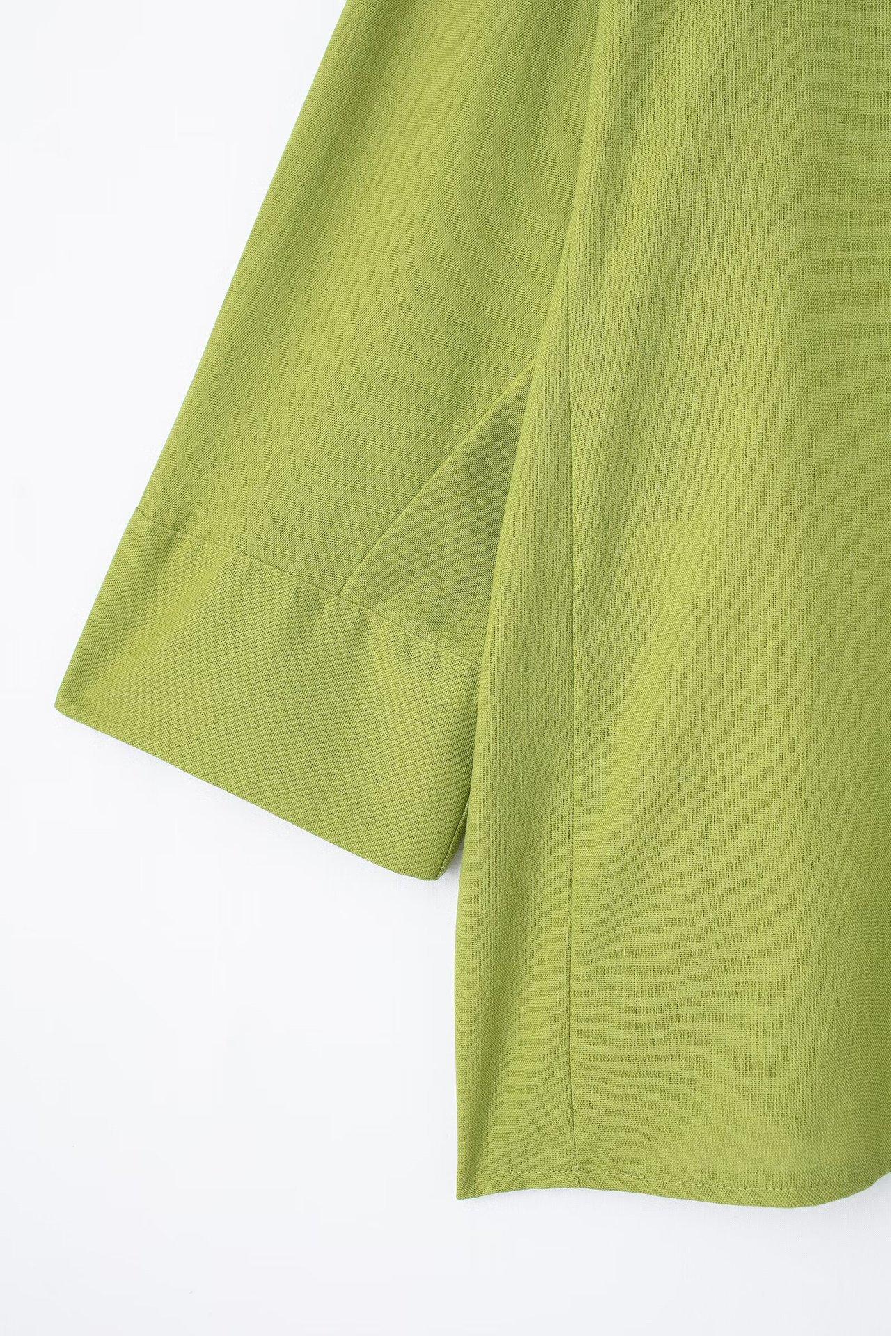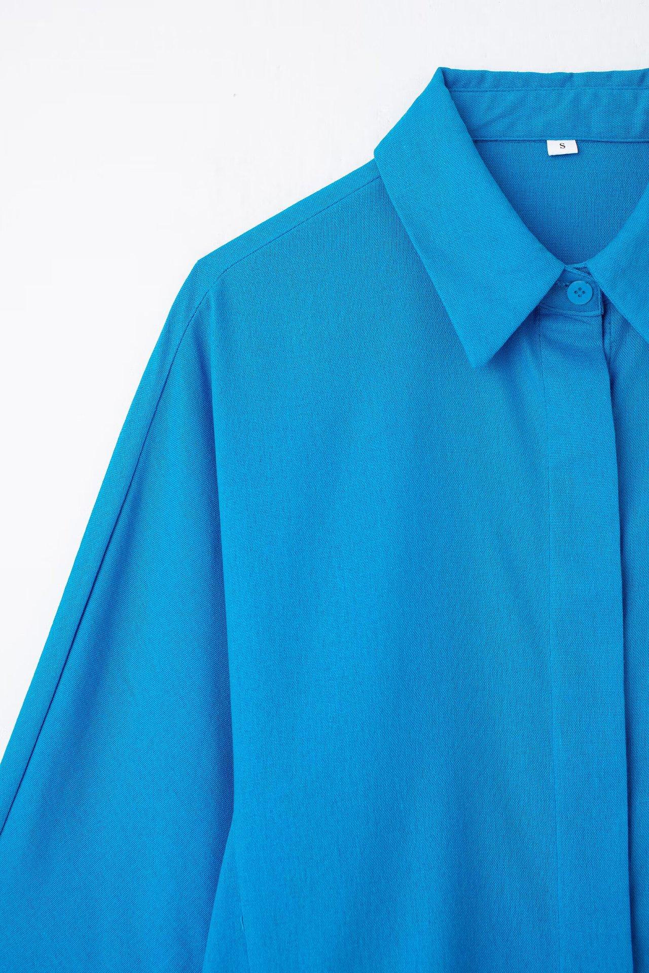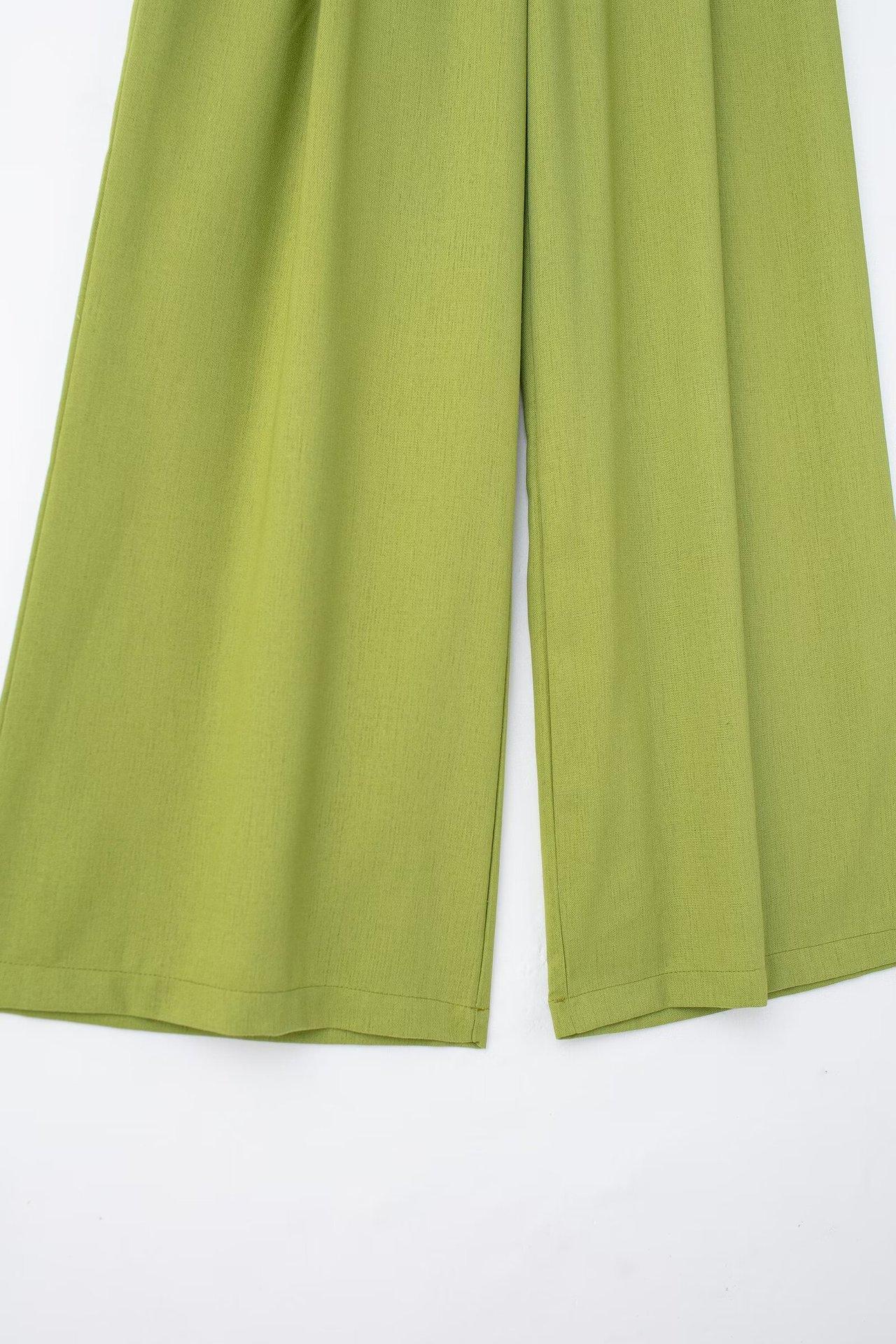 2024 Nuevo Estilo de Verano para Mujer Estilo Europeo y Americano Solapa Lino Camisa Holgada + Pantalones Casuales Caída Casual Color Puro