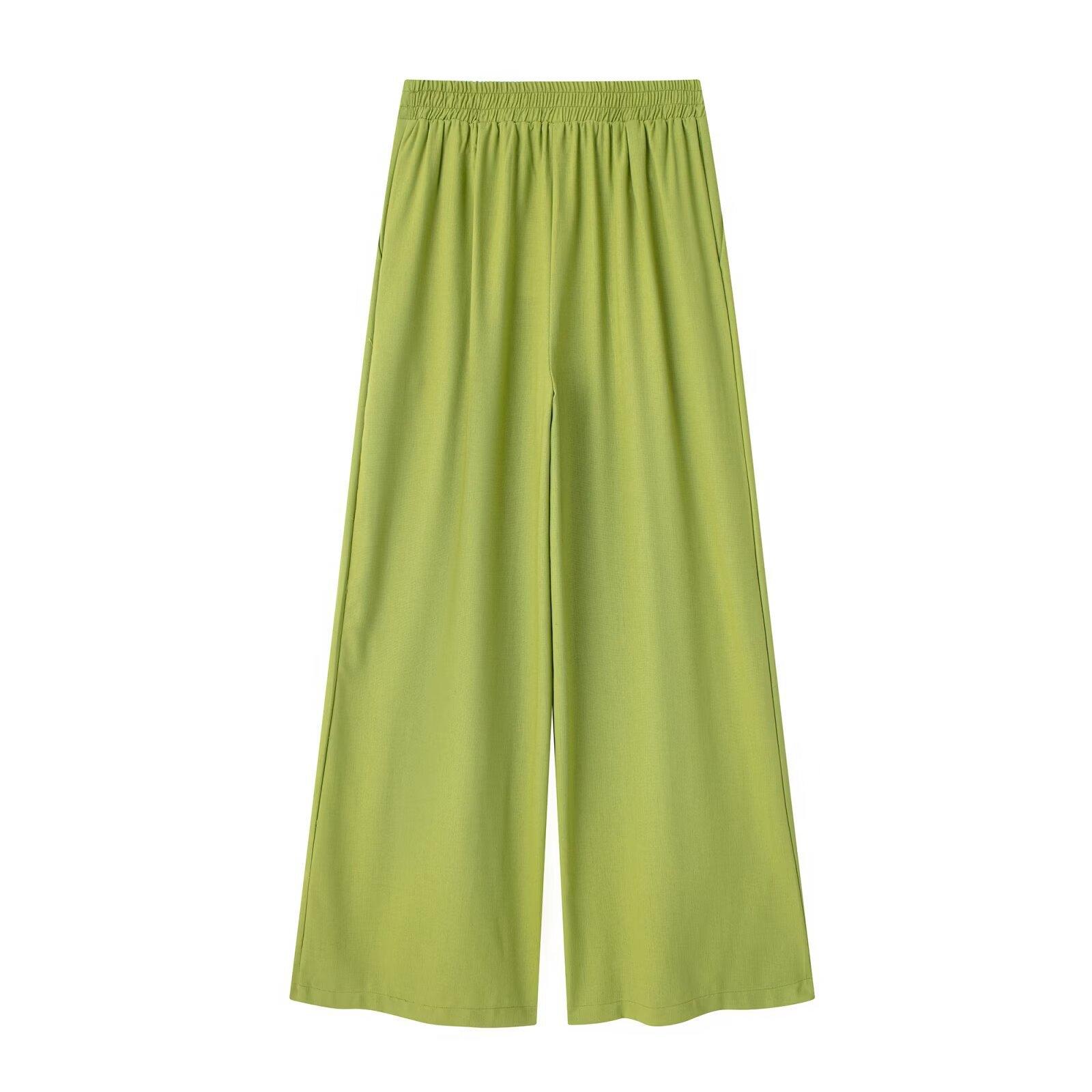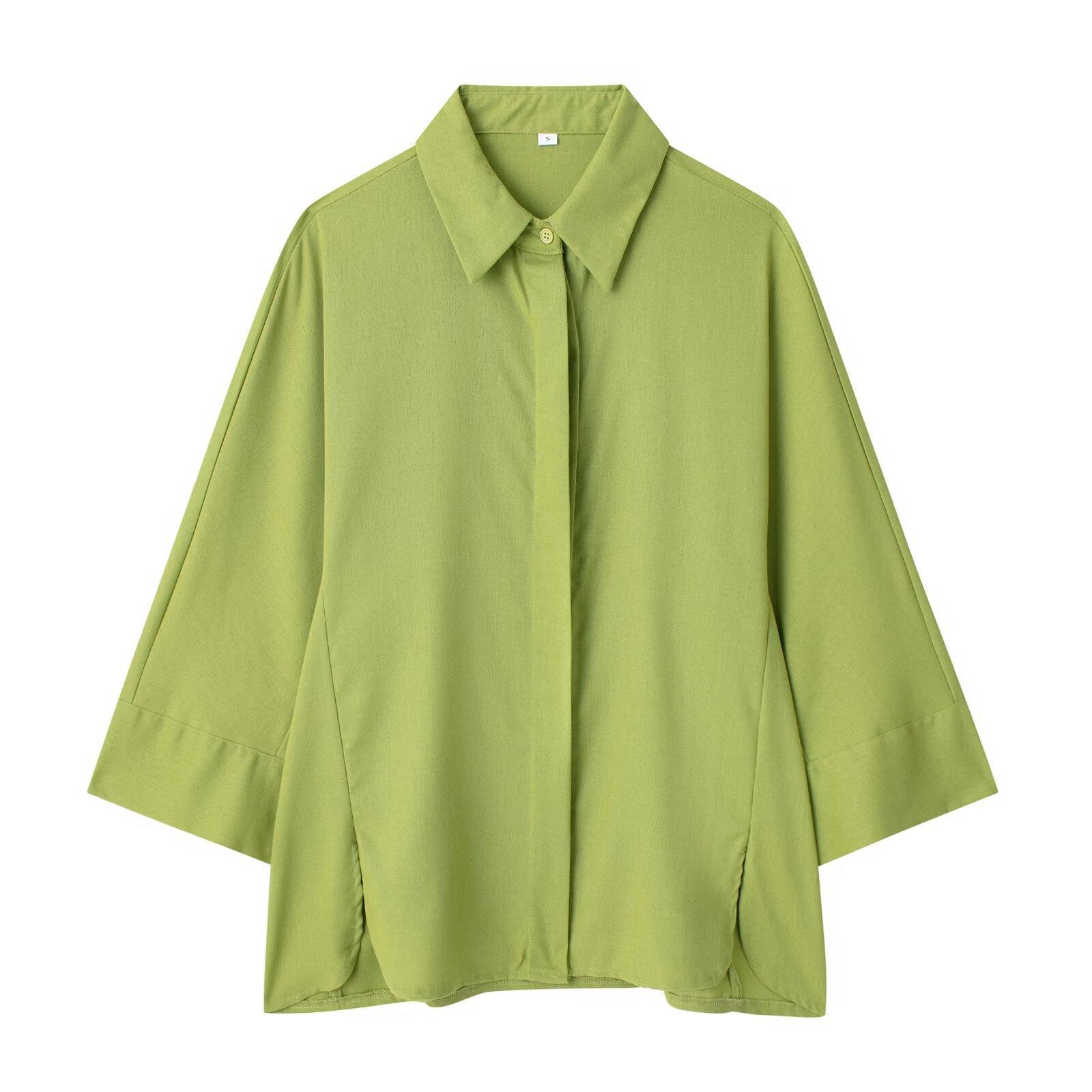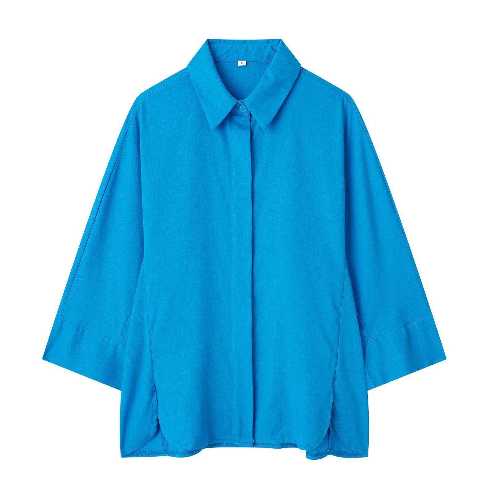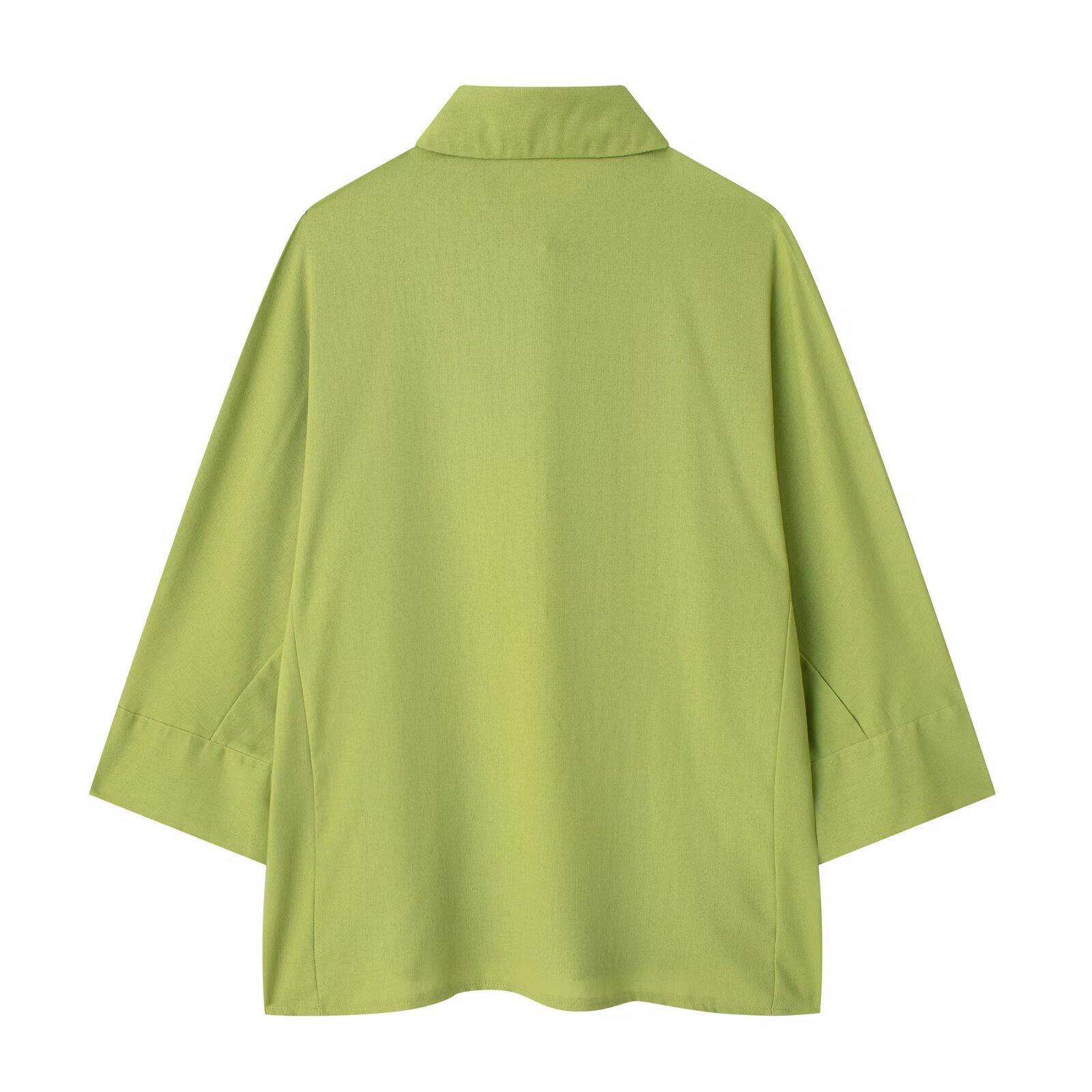 2024 Nuevo Estilo de Verano para Mujer Estilo Europeo y Americano Solapa Lino Camisa Holgada + Pantalones Casuales Caída Casual Color Puro