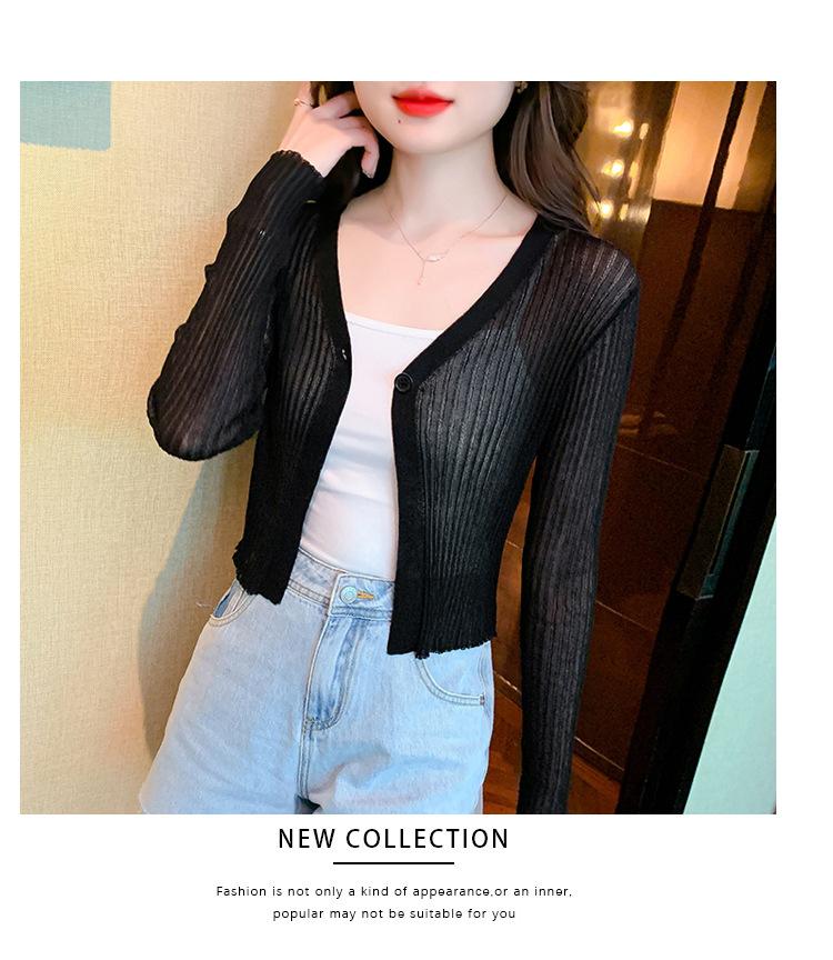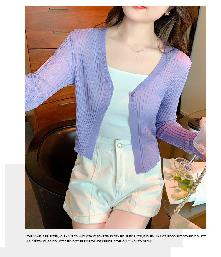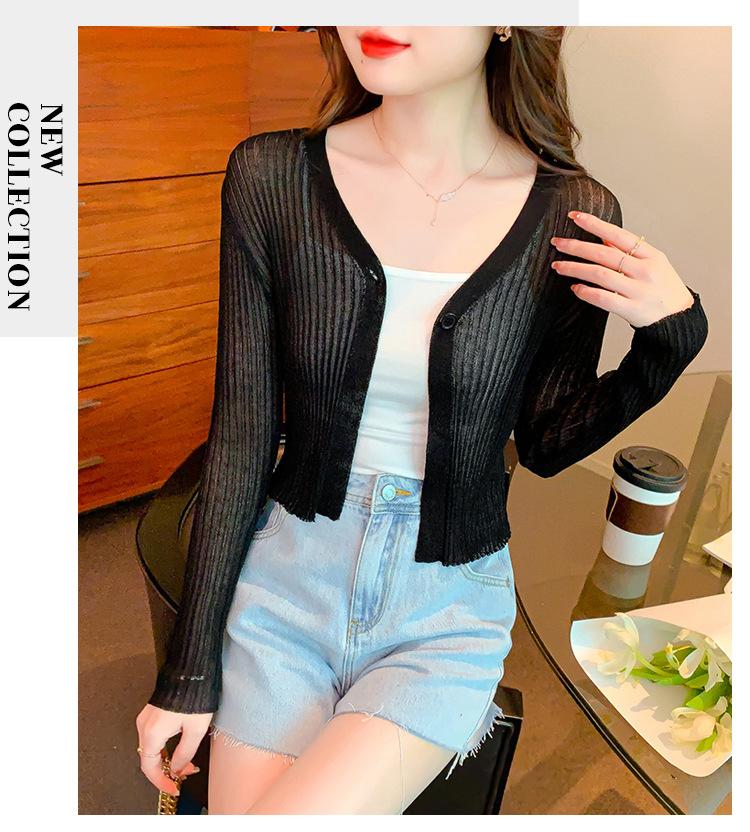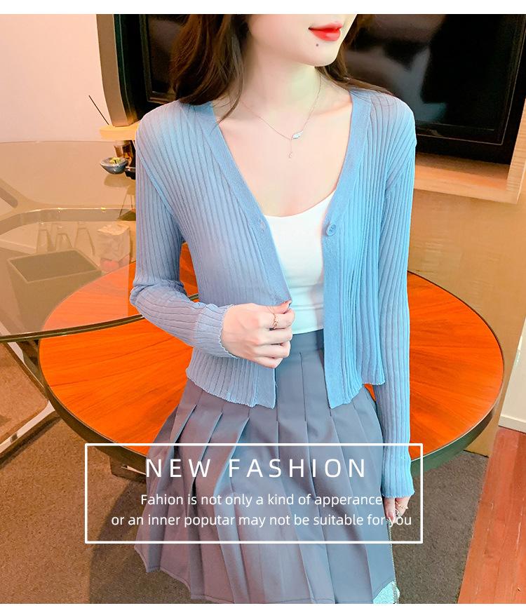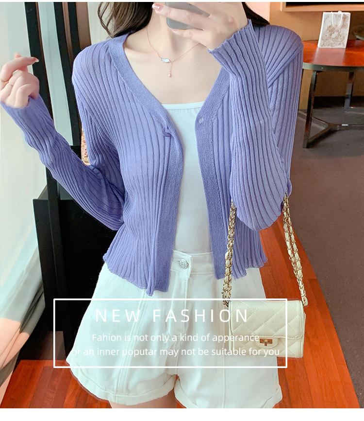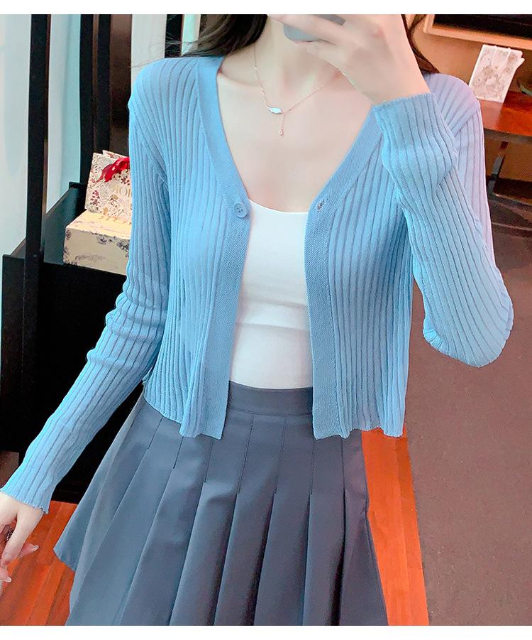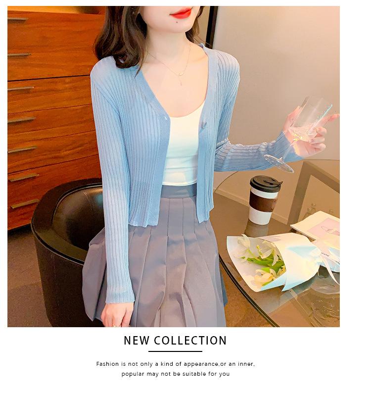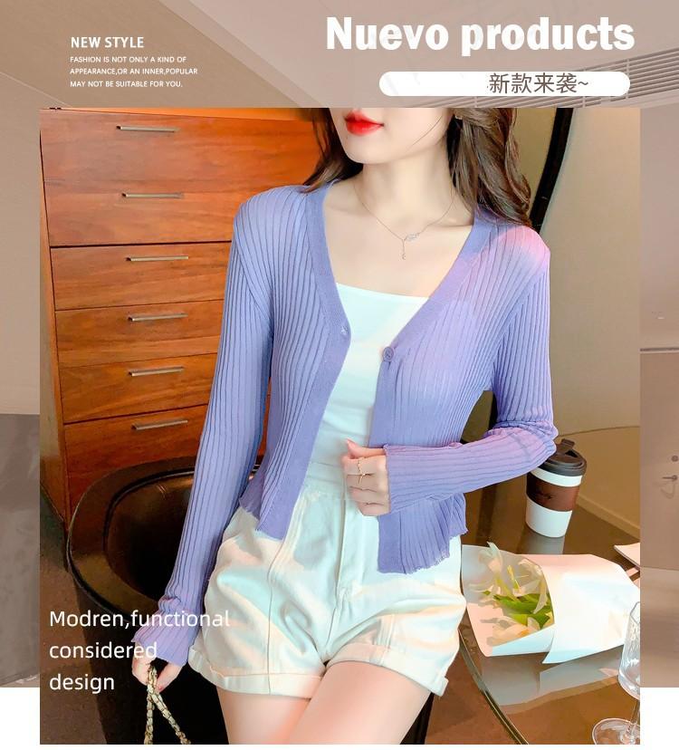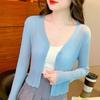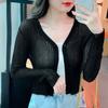 Cárdigan Delgado de Punto de Manga Larga con Cuello en V y Color Puro Estilo Coreano Nuevo de Primavera y Verano 2025 para Protección Solar