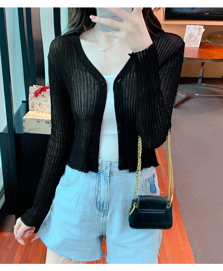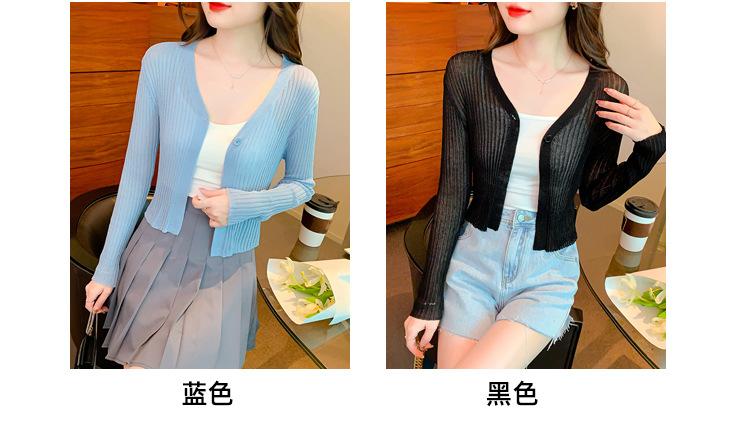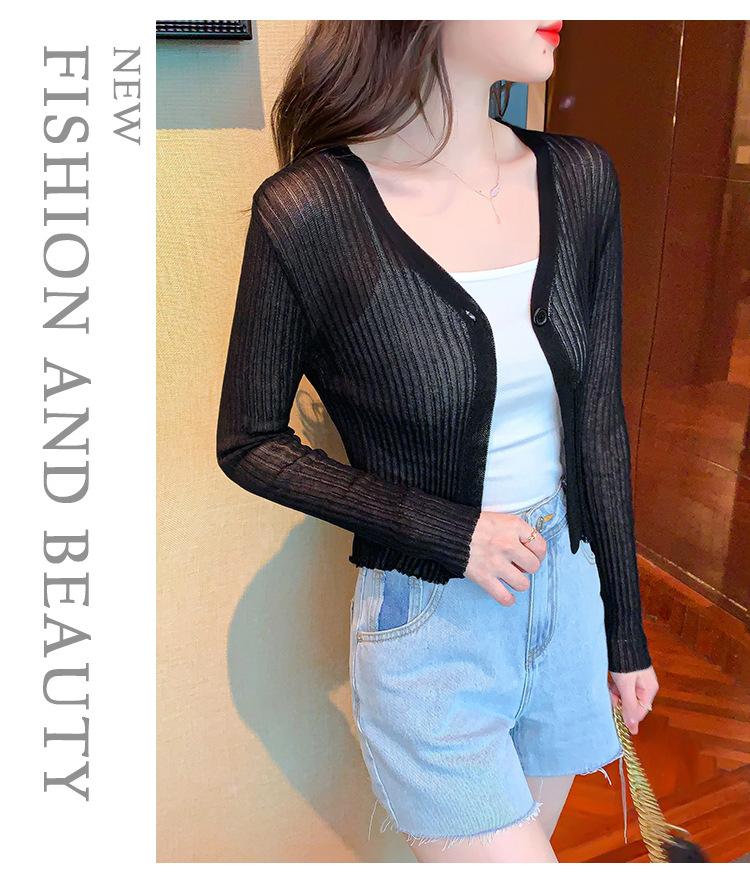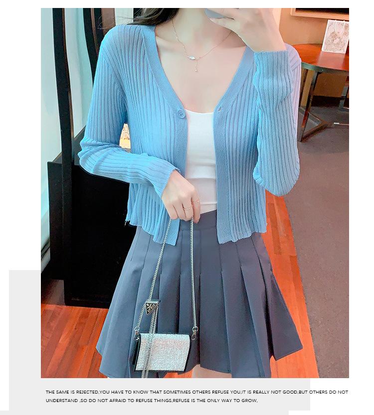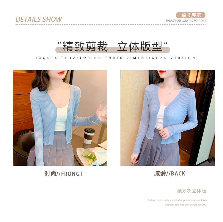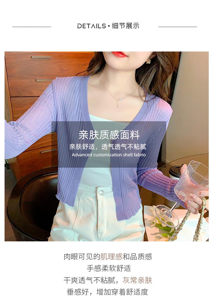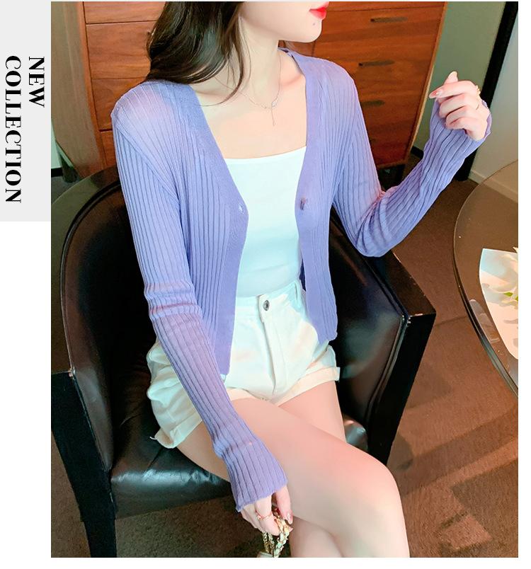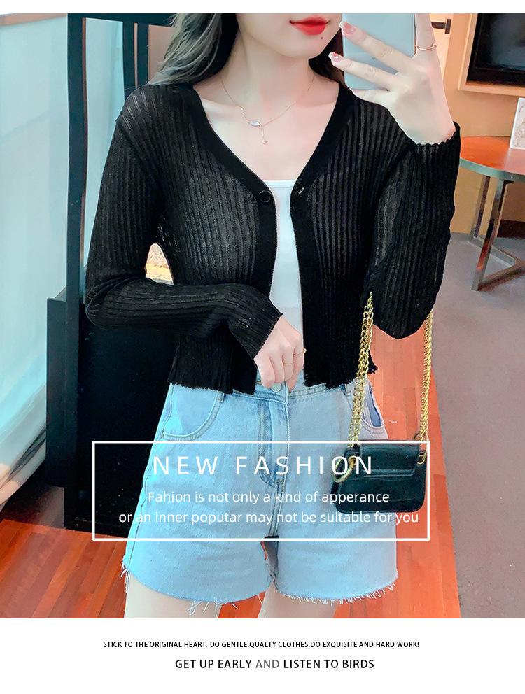 Cárdigan Delgado de Punto de Manga Larga con Cuello en V y Color Puro Estilo Coreano Nuevo de Primavera y Verano 2025 para Protección Solar