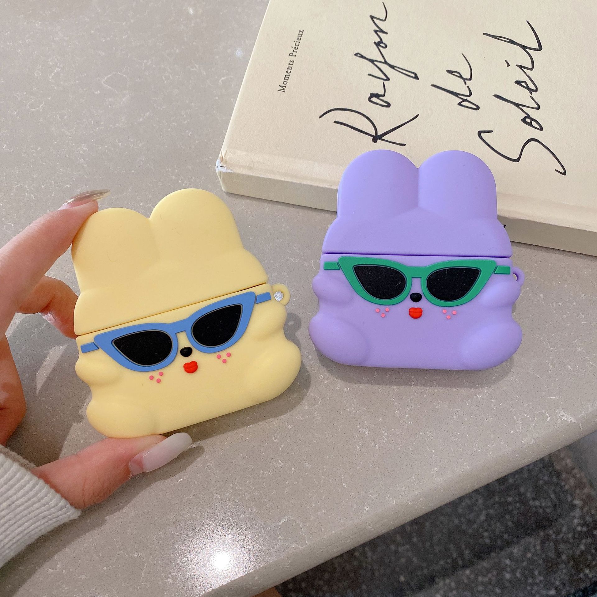 Lindo Conejo de Gafas de Sol Adecuado para Estuche Protector para AirPods Pro 1/2 Generación Estuche para Audífonos Bluetooth Apple Airpods3