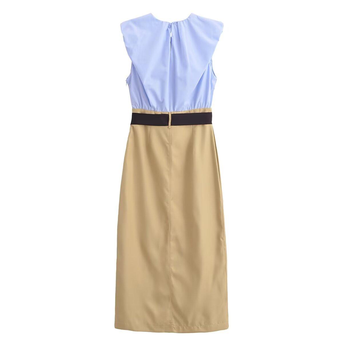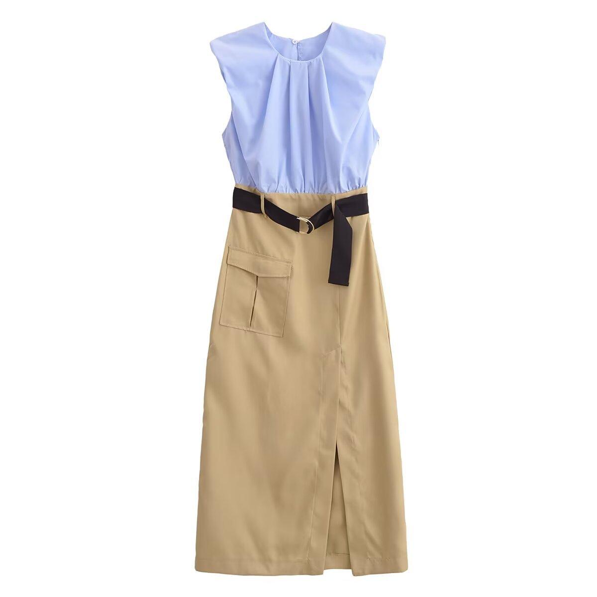 Vestido elegante sin mangas con cinturón, ligero y maduro, con costuras de cinturón, para mujer, estilo transfronterizo europeo y americano, de verano 2024