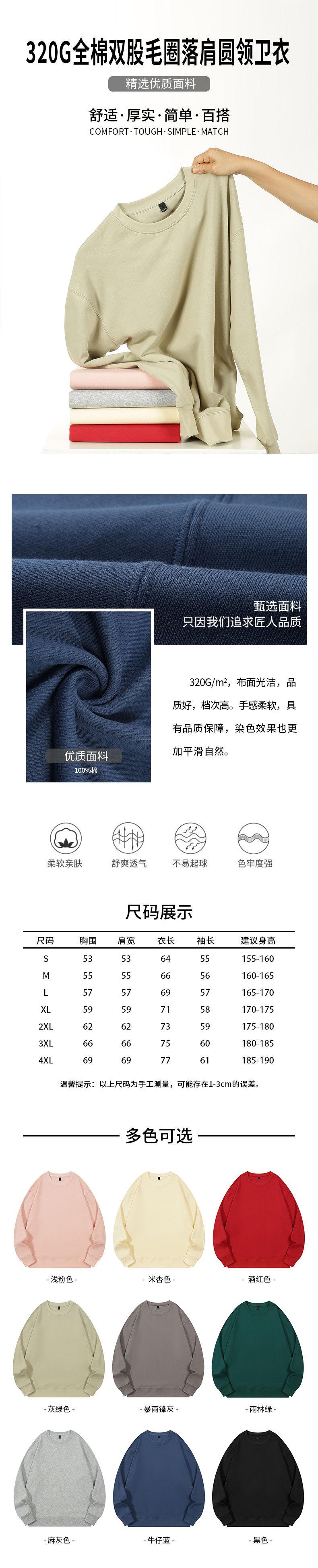 Sudadera Pulóver de Felpa de Algodón de Doble Hebra de 320 g con Hombros Descubiertos y Cuello Redondo Uniforme de Clase Logotipo Estampado Marca de Moda Manga Larga Simple