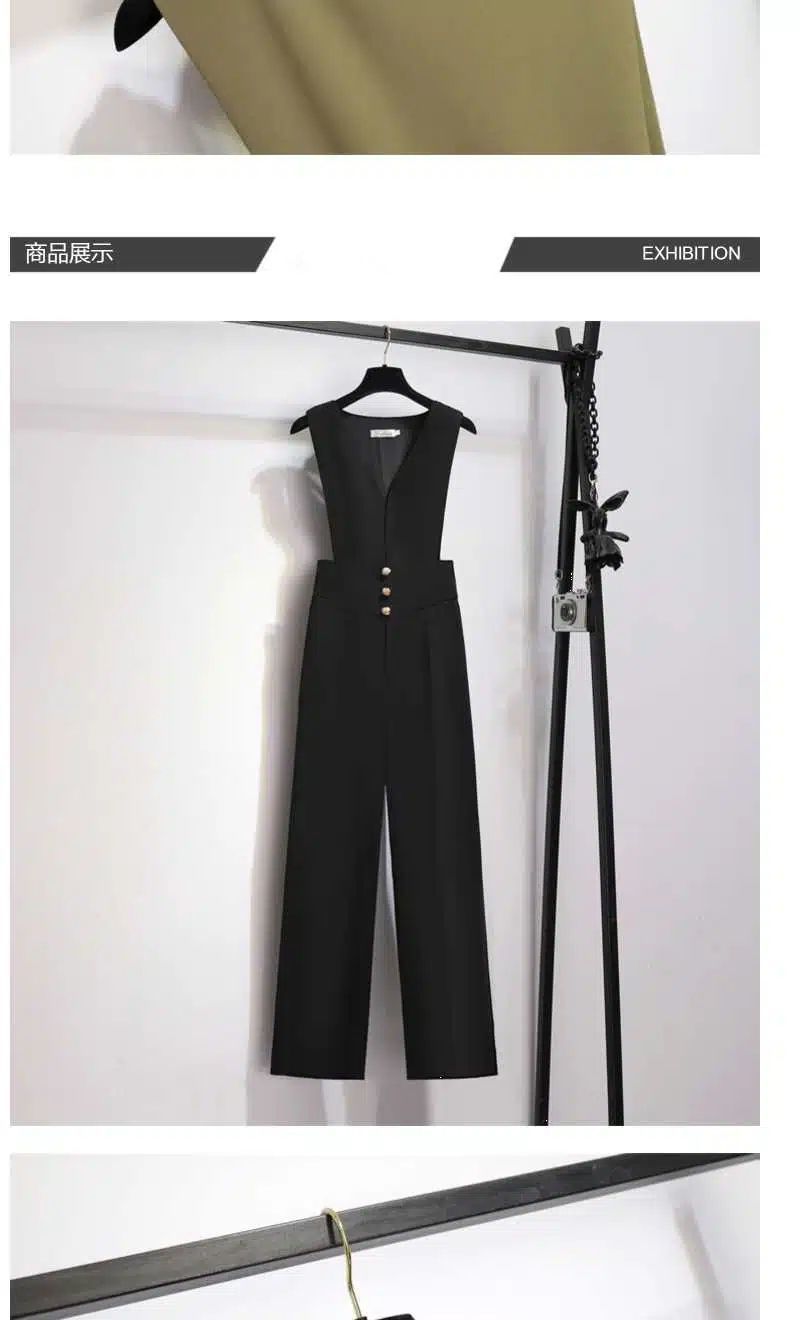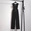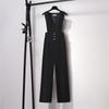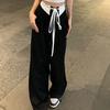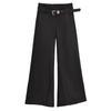 Pantalones negros de pierna ancha con diseño de correas para mujer, novedad de verano 2023, estilo coreano informal, traje de cintura alta