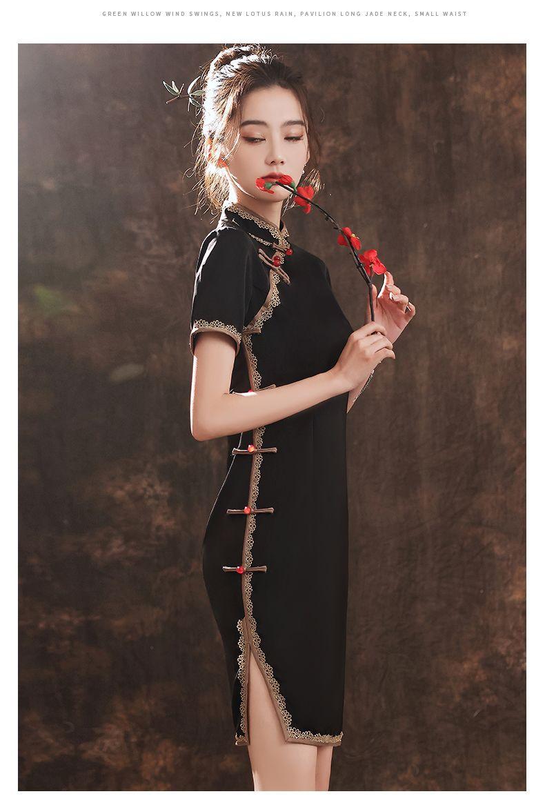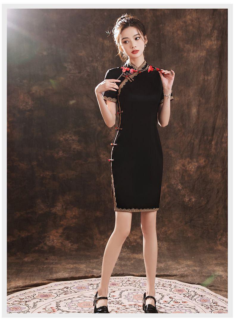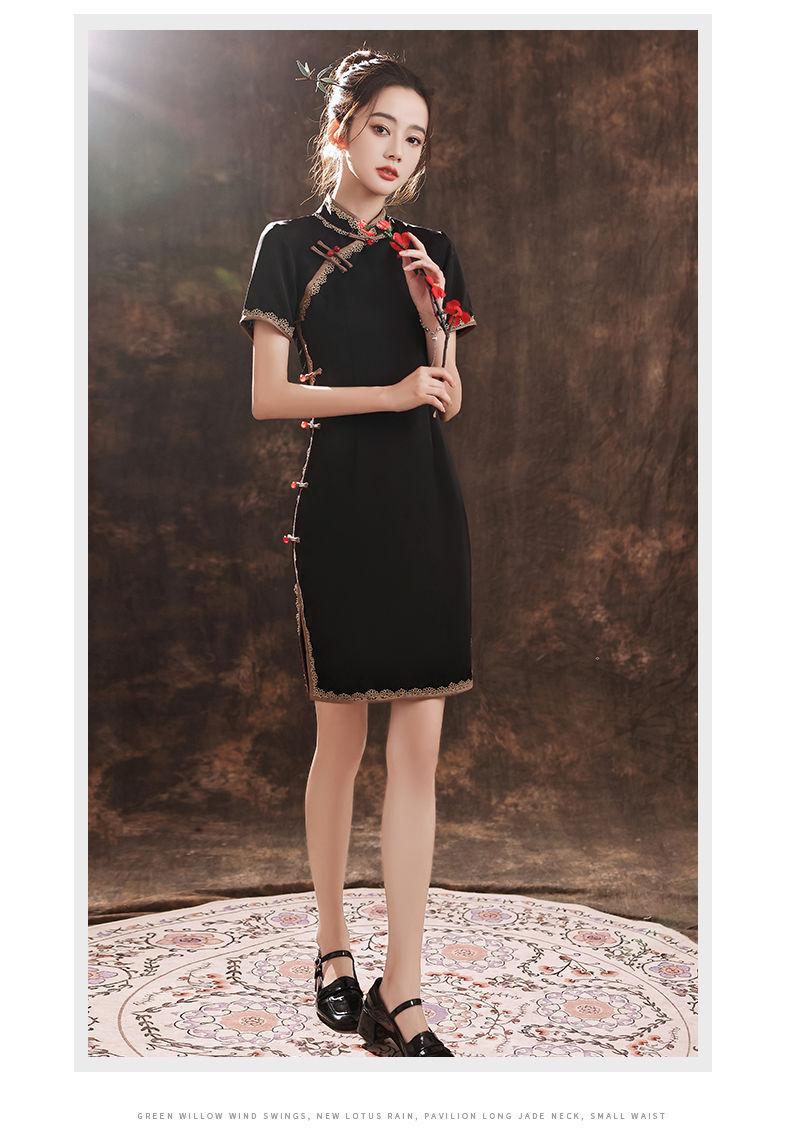 Cheongsam negro de estilo chino 2023, nuevo estilo de verano para jóvenes, temperamento callejero frito mejorado, moda nacional pequeña, informal