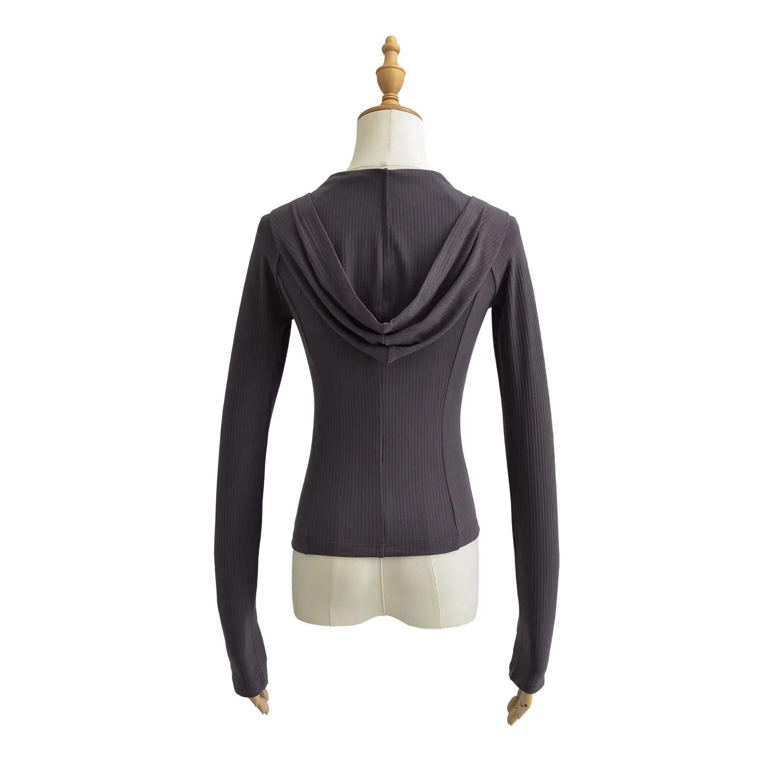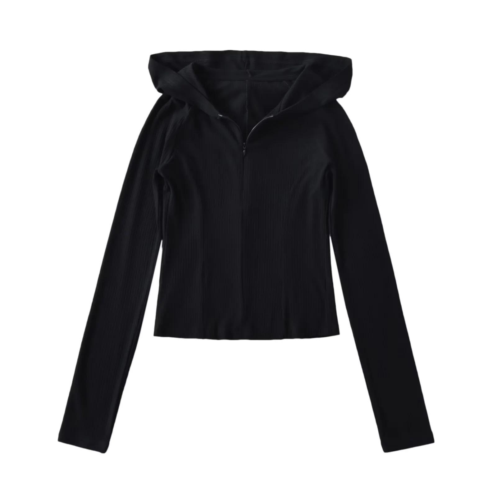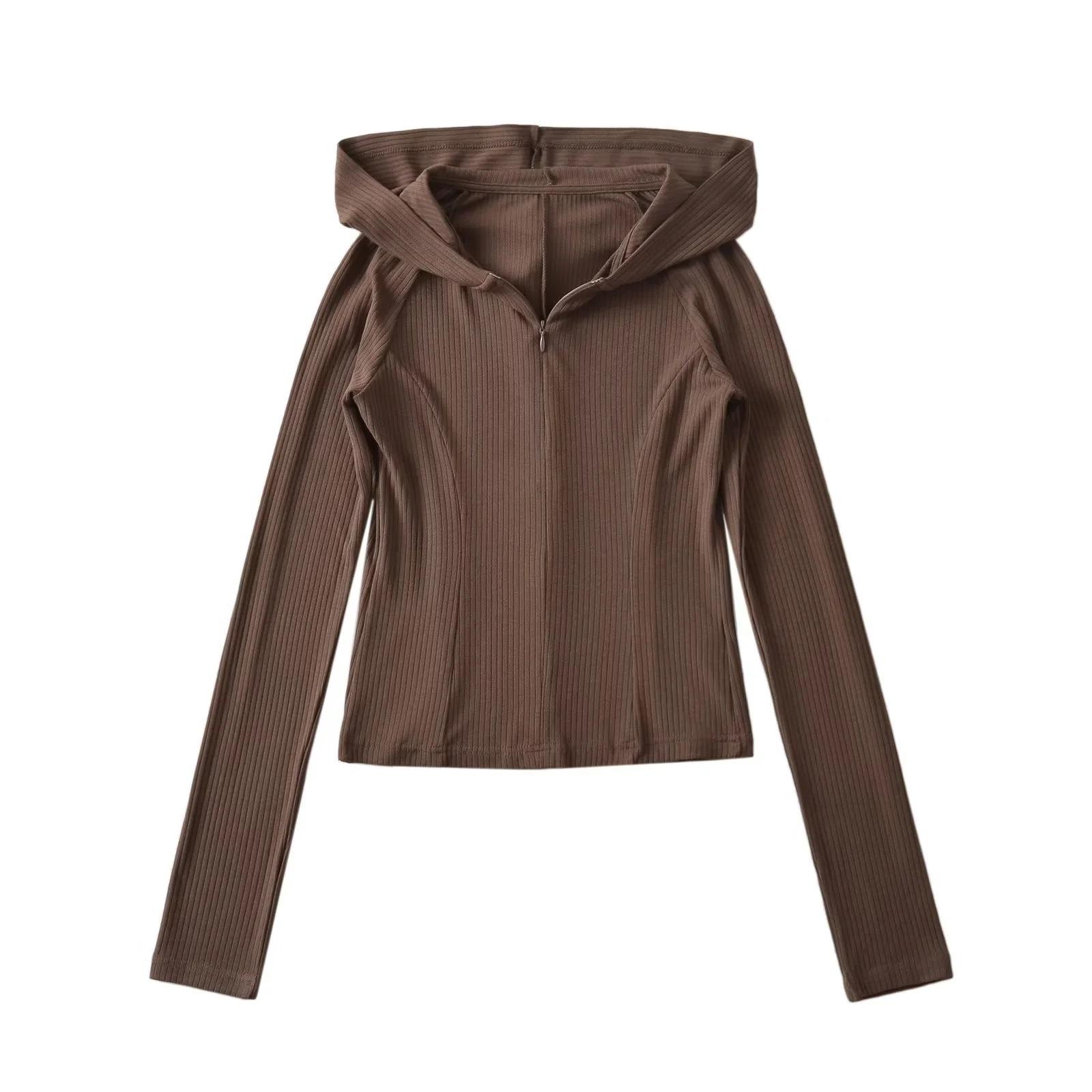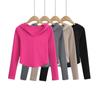 Camiseta con capucha y media cremallera estilo ins sexy para chica nueva de otoño, top de manga larga ajustado y grueso para mujer