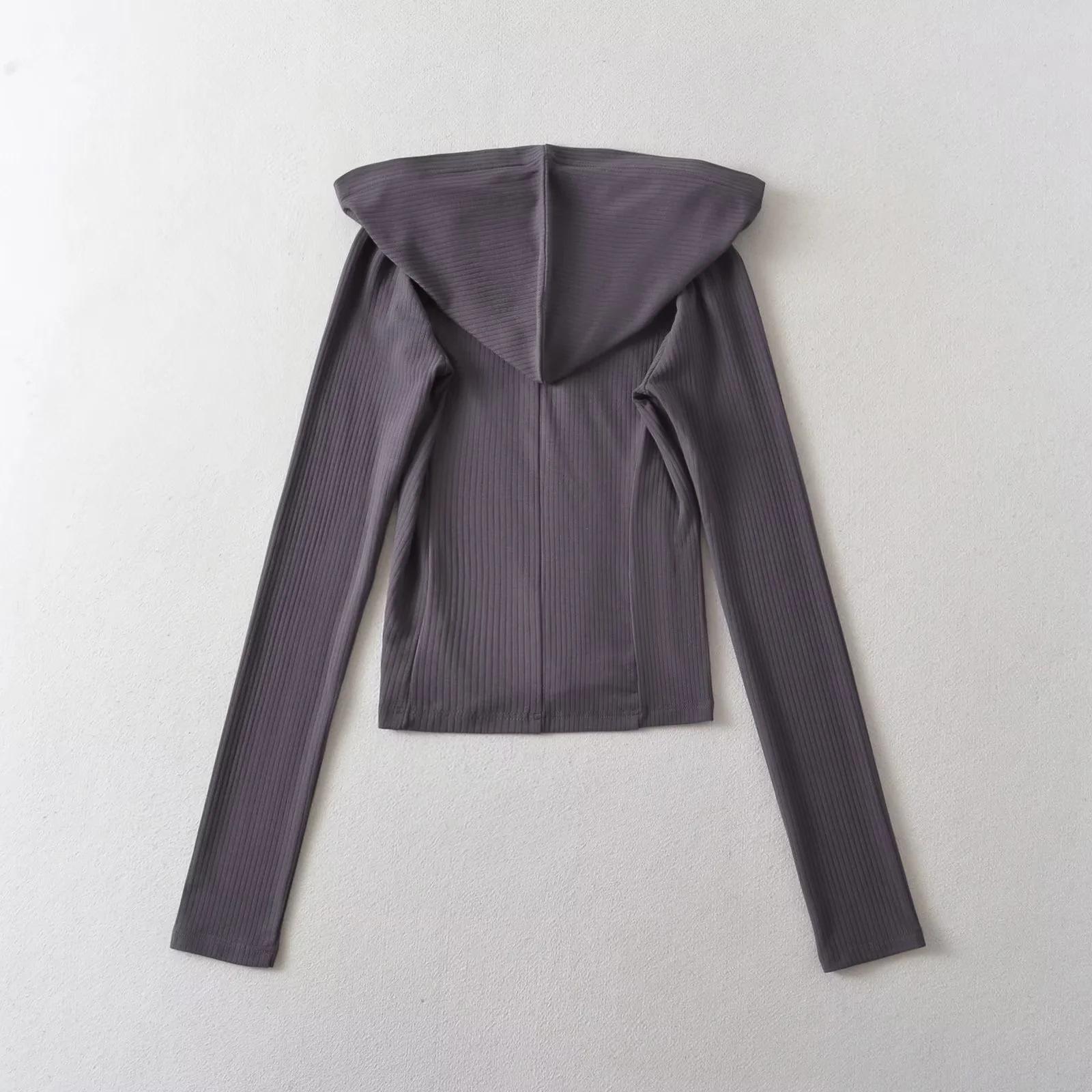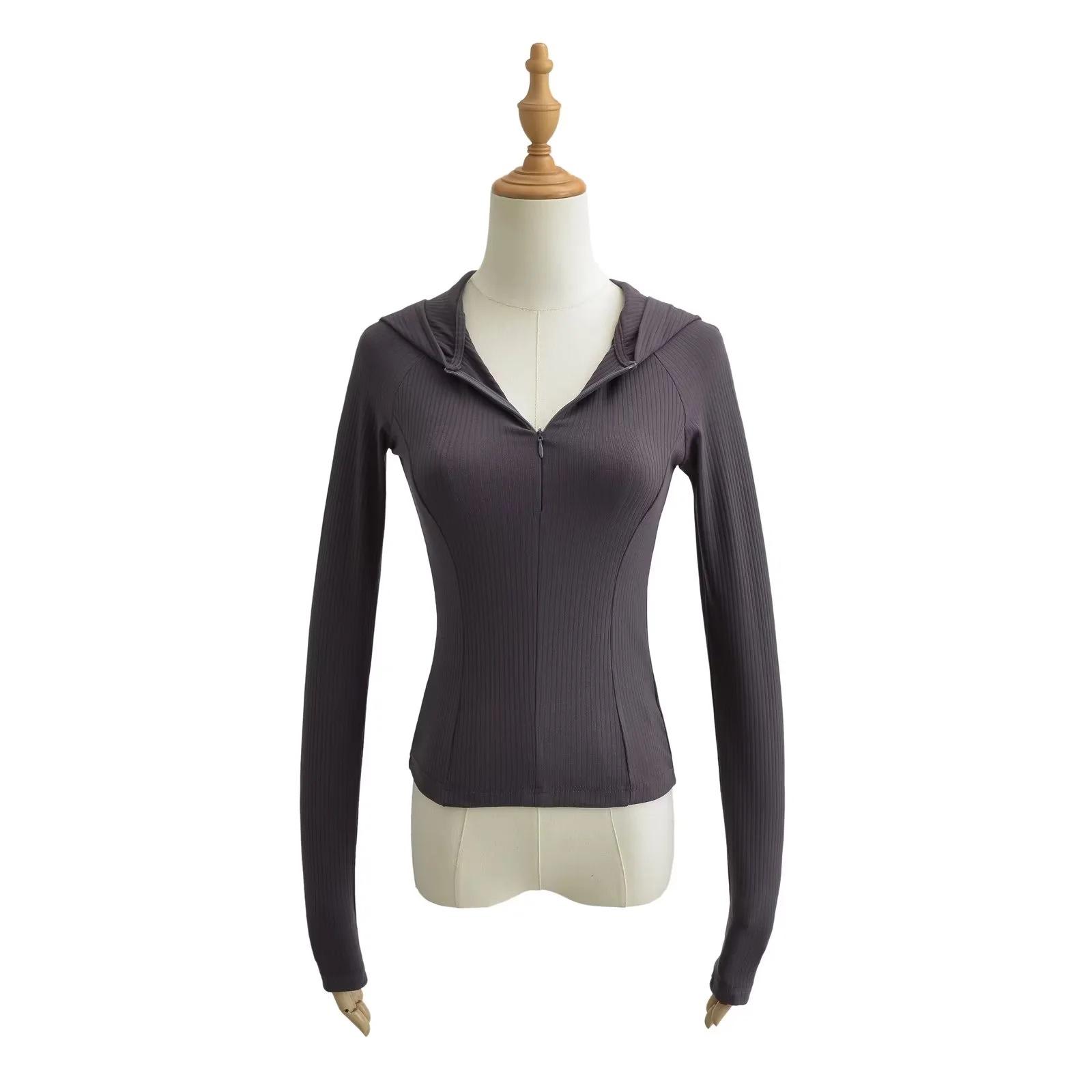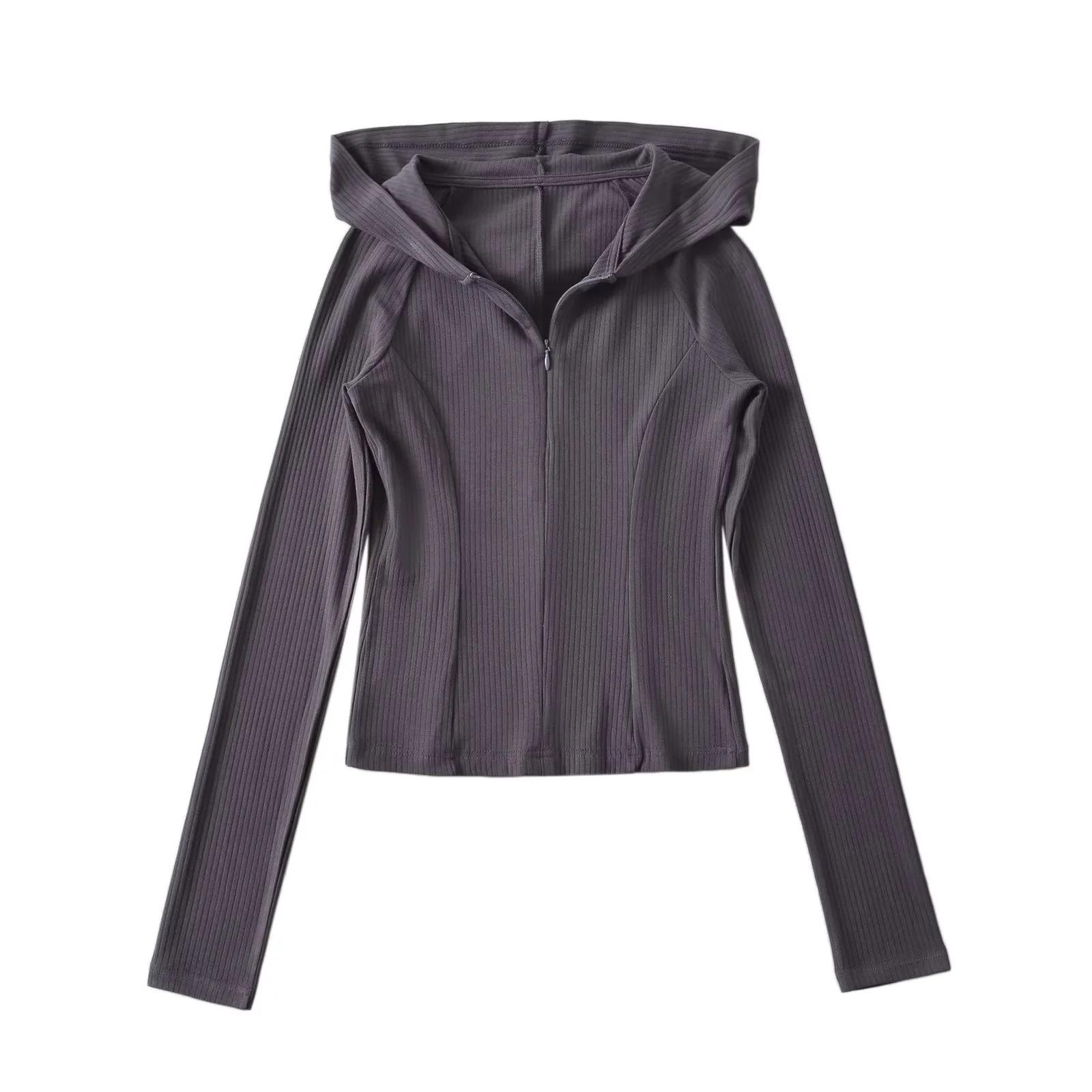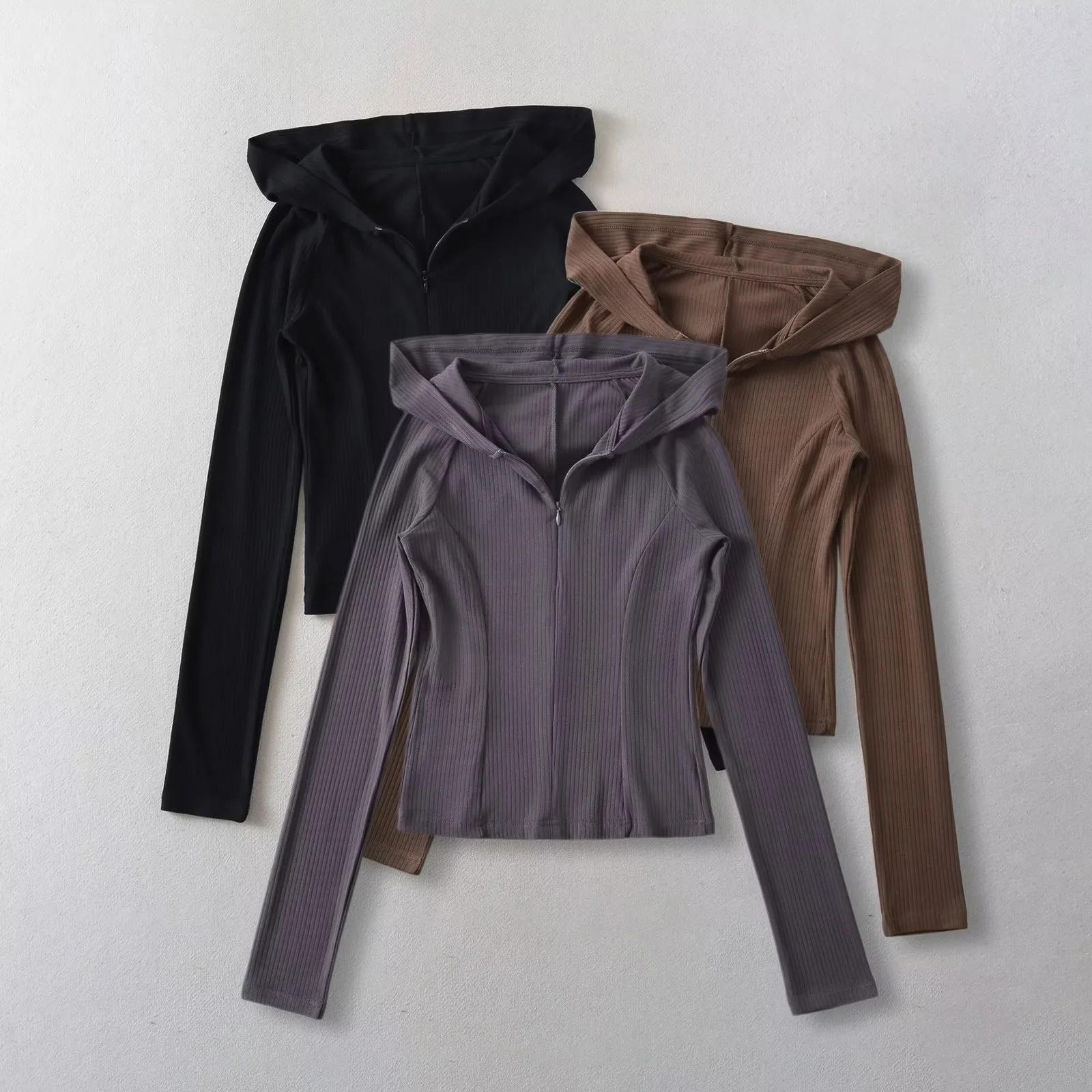 Camiseta con capucha y media cremallera estilo ins sexy para chica nueva de otoño, top de manga larga ajustado y grueso para mujer
