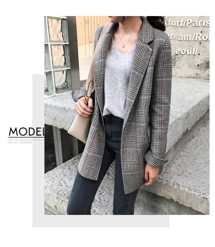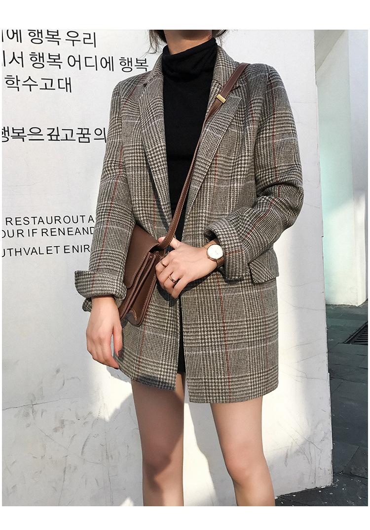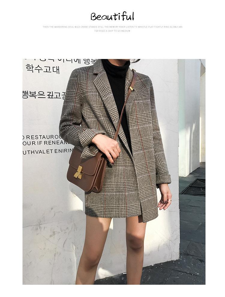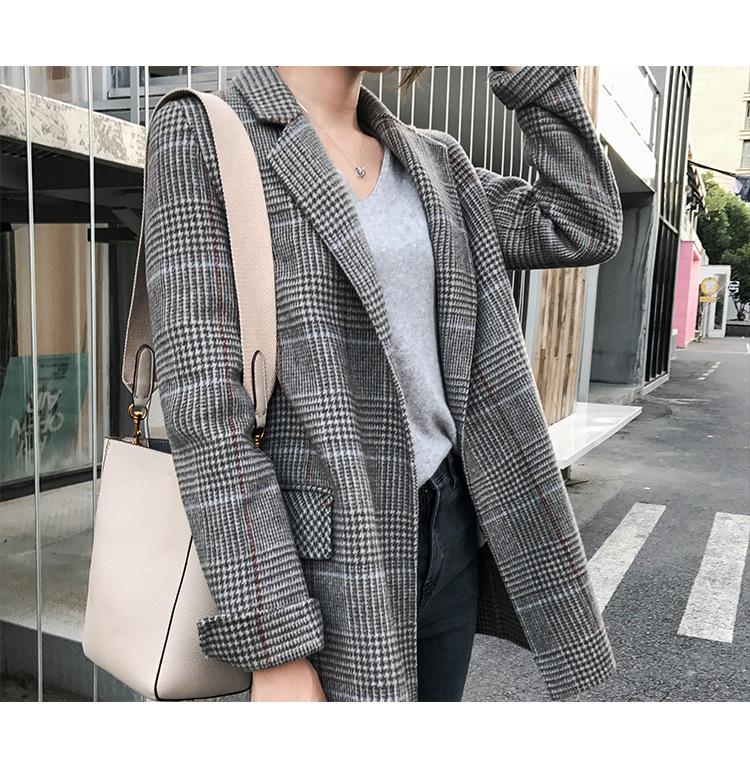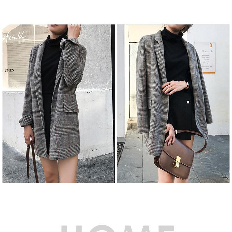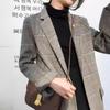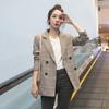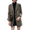 Traje coreano de cuadros nuevo 2025 Chic Retro Suelto Largo Medio Traje pequeño de cuadros Abrigo delgado para mujer