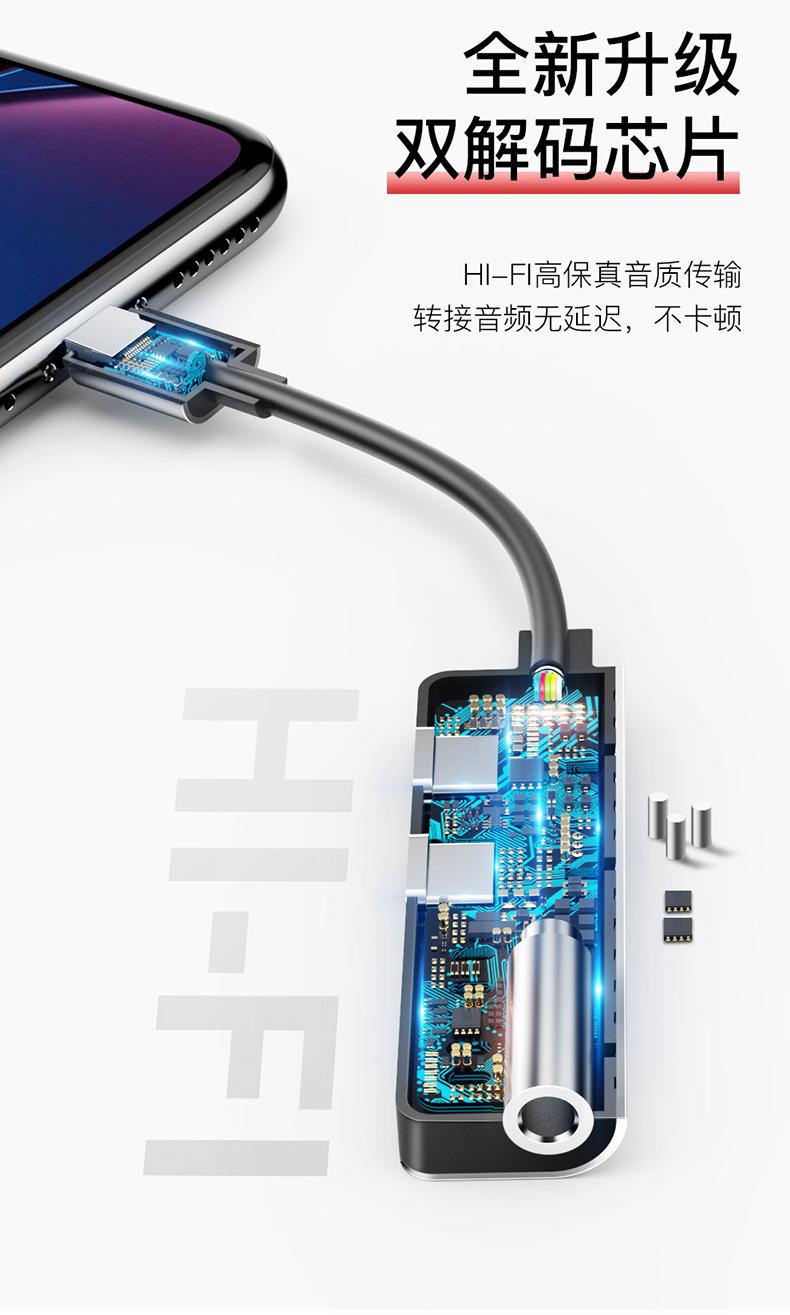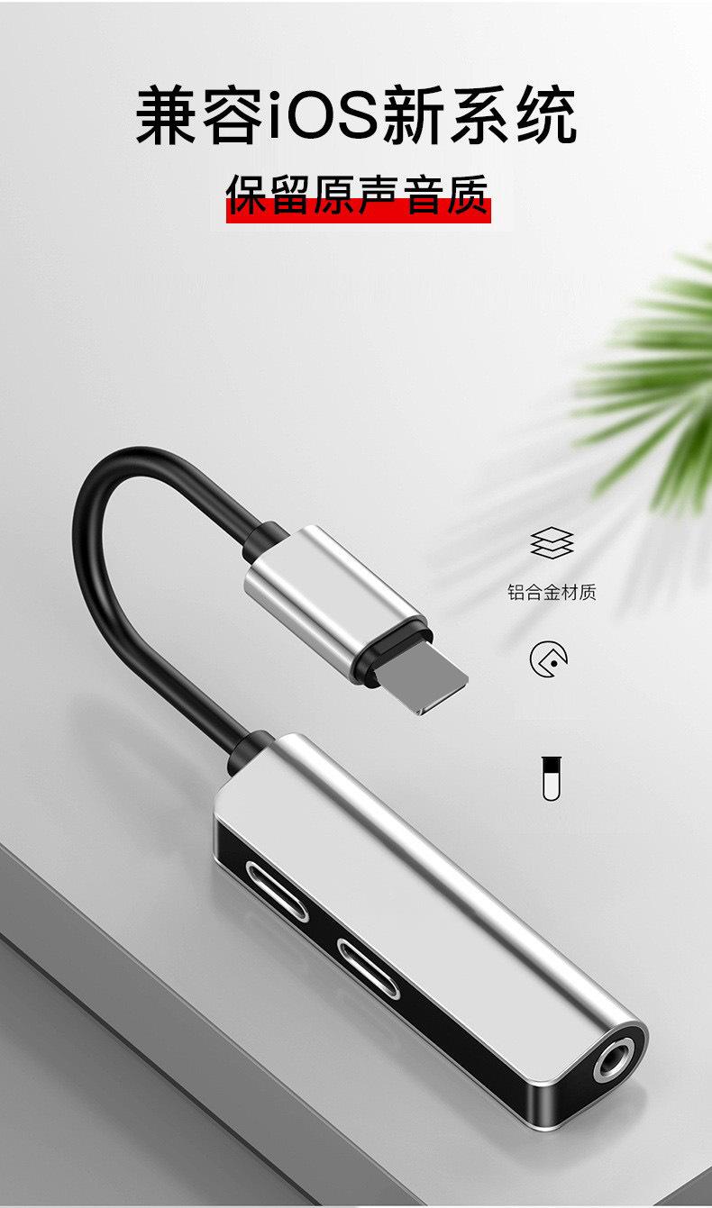 Adecuado para el adaptador de auriculares Apple 14 iphone13pro Carga Escuchar canciones Control de línea Adaptador de línea de audio tres en uno