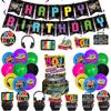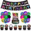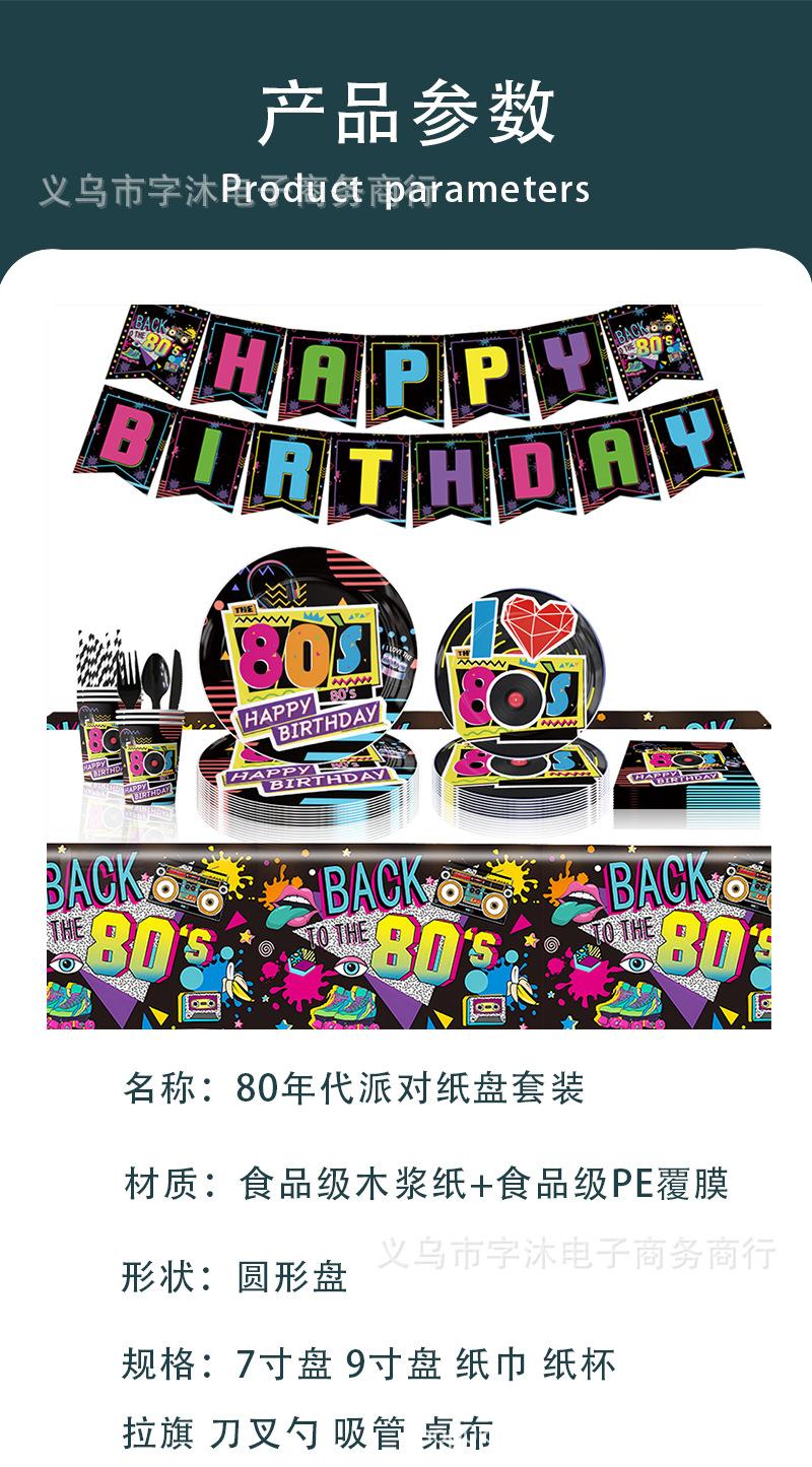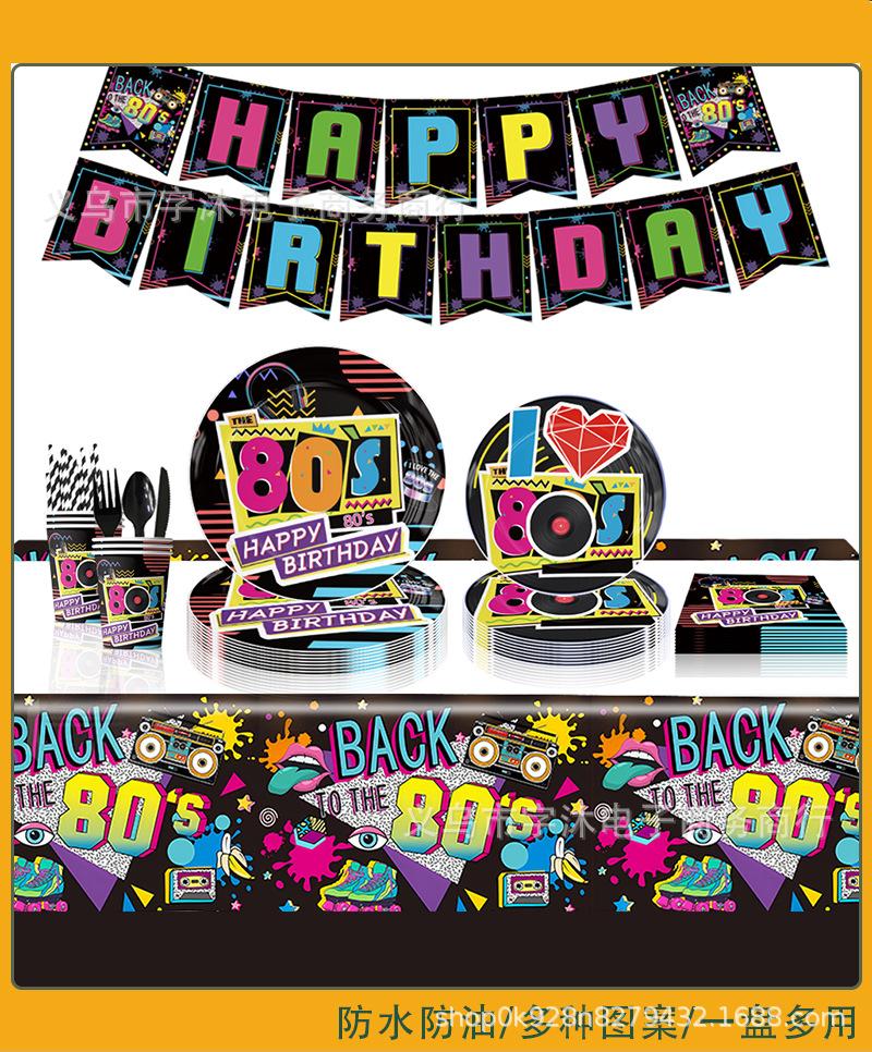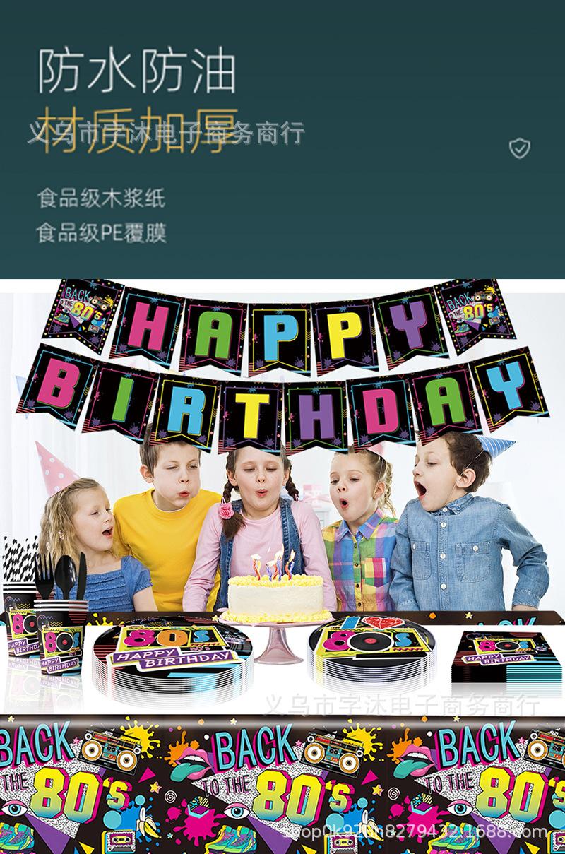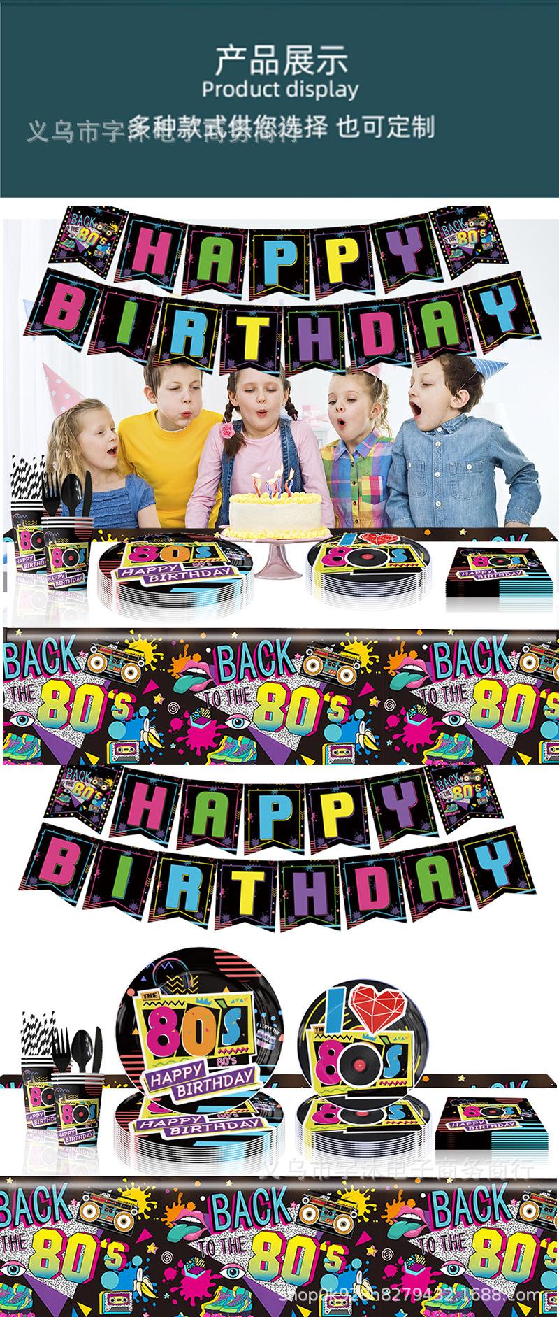 Decoración de Fondo para Fiesta de Cumpleaños Temática de los 80 Globo Impreso de Dibujos Animados Inserto para Pastel Bandera Colgante