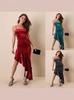 Compra Vestido de terciopelo dorado con tirantes, estilo europeo y americano, 2025, sexy, con costuras y volantes en la cadera. al por mayor en Joom.pro