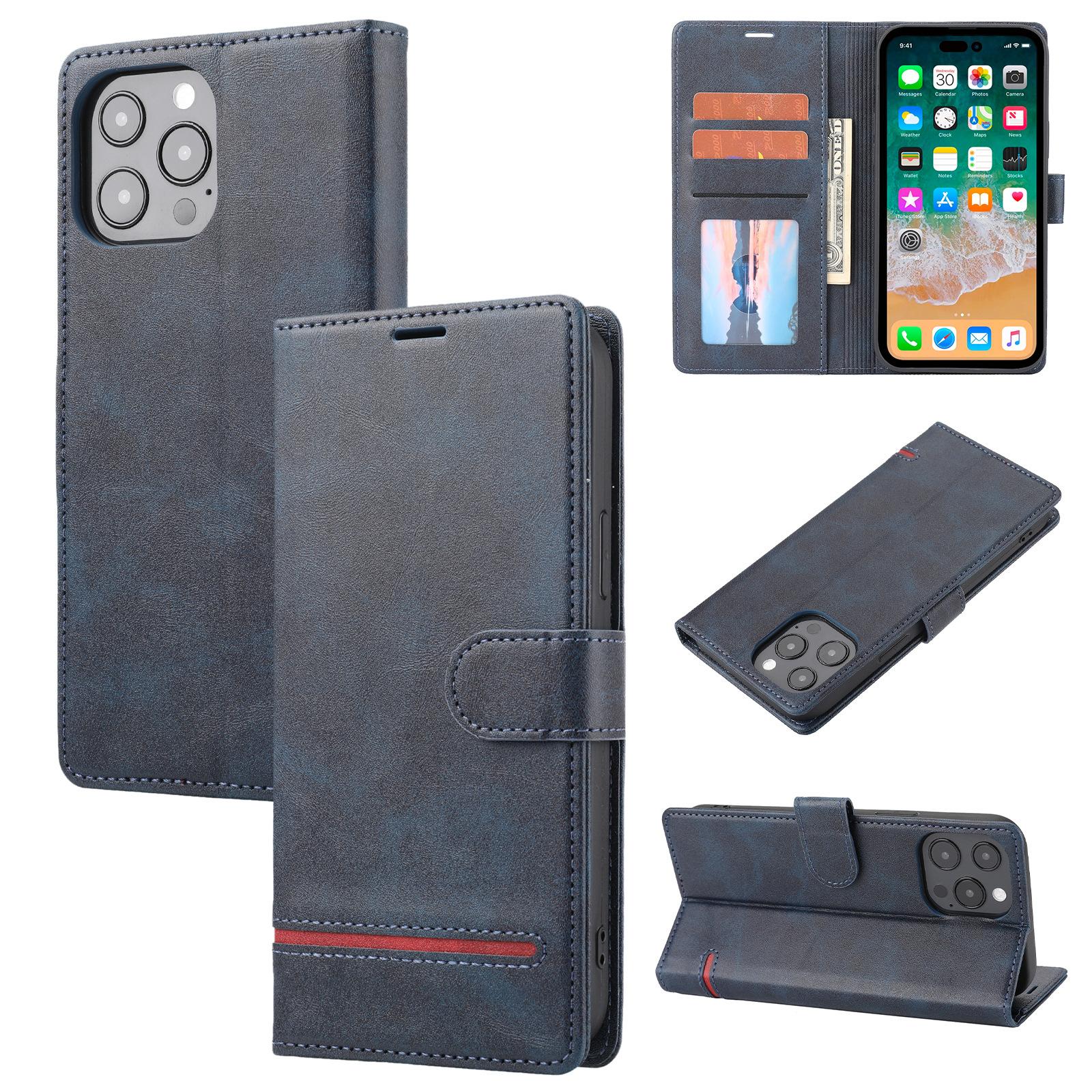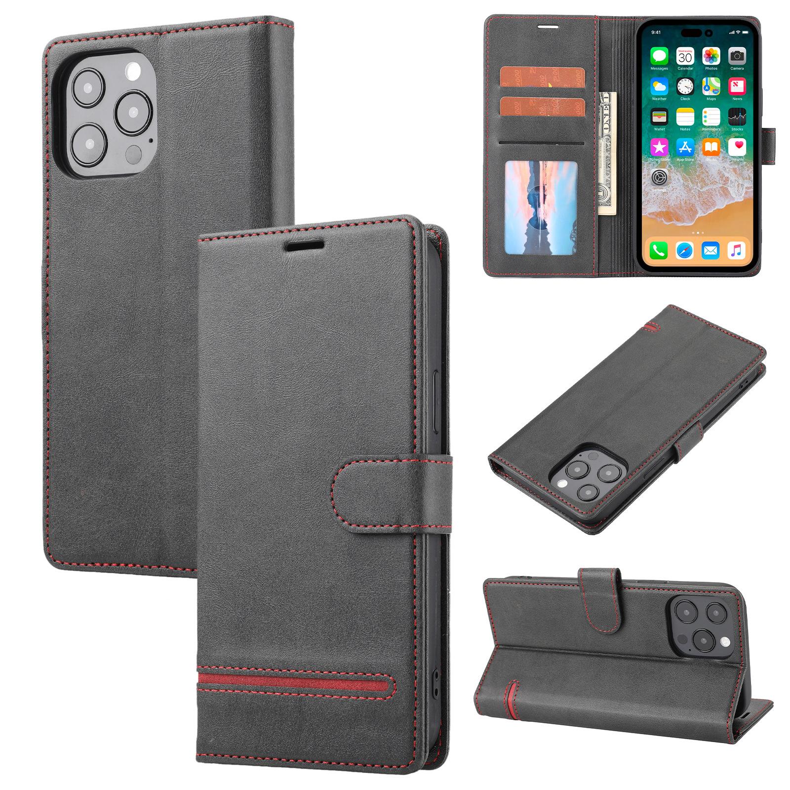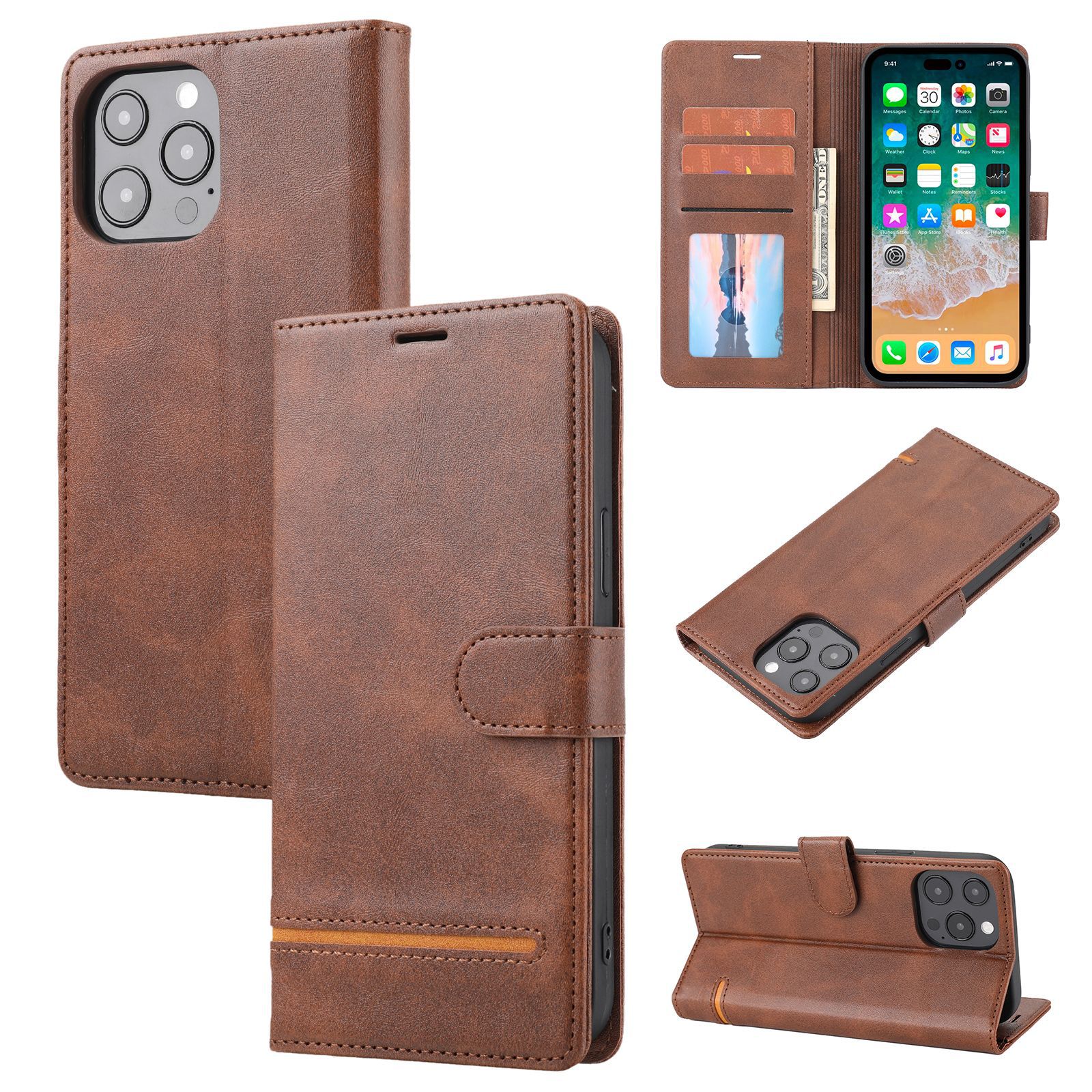 Adecuado para Funda de Cuero para Teléfono Móvil Iphone16 15Pro Retro Business Costuras de Línea Horizontal Billetera para Tarjetas Funda Protectora