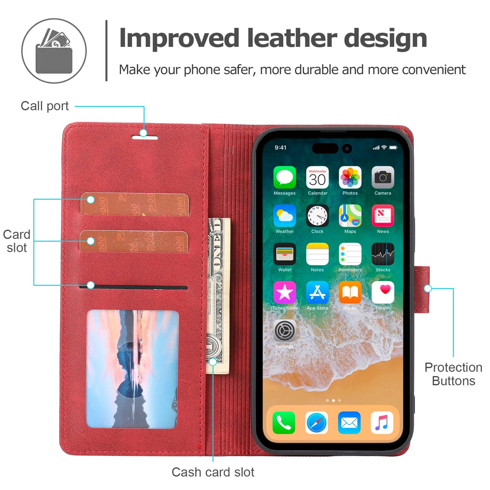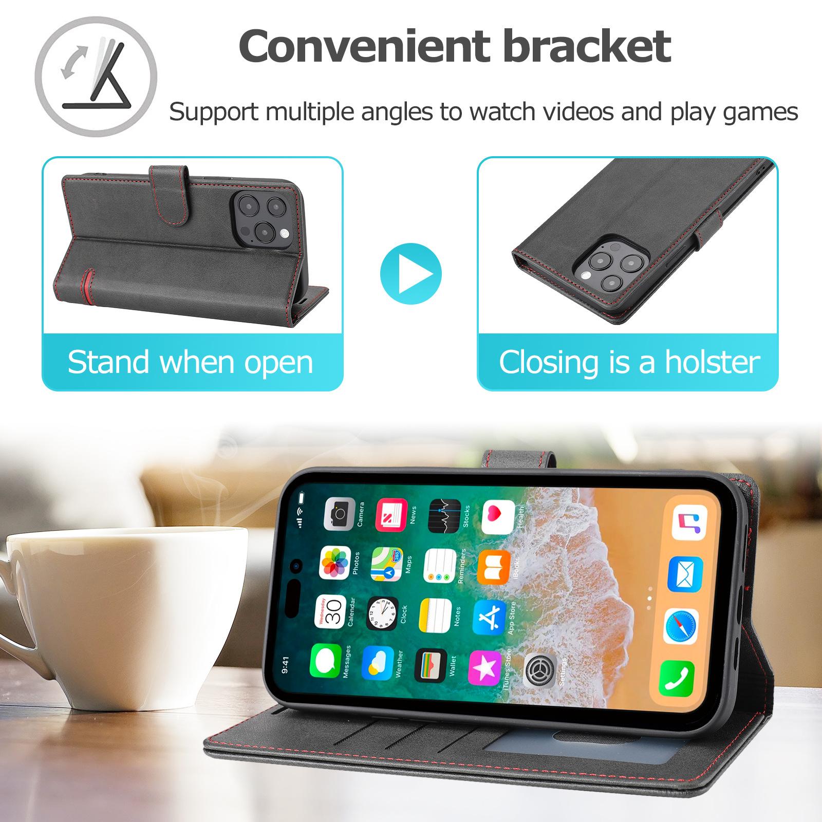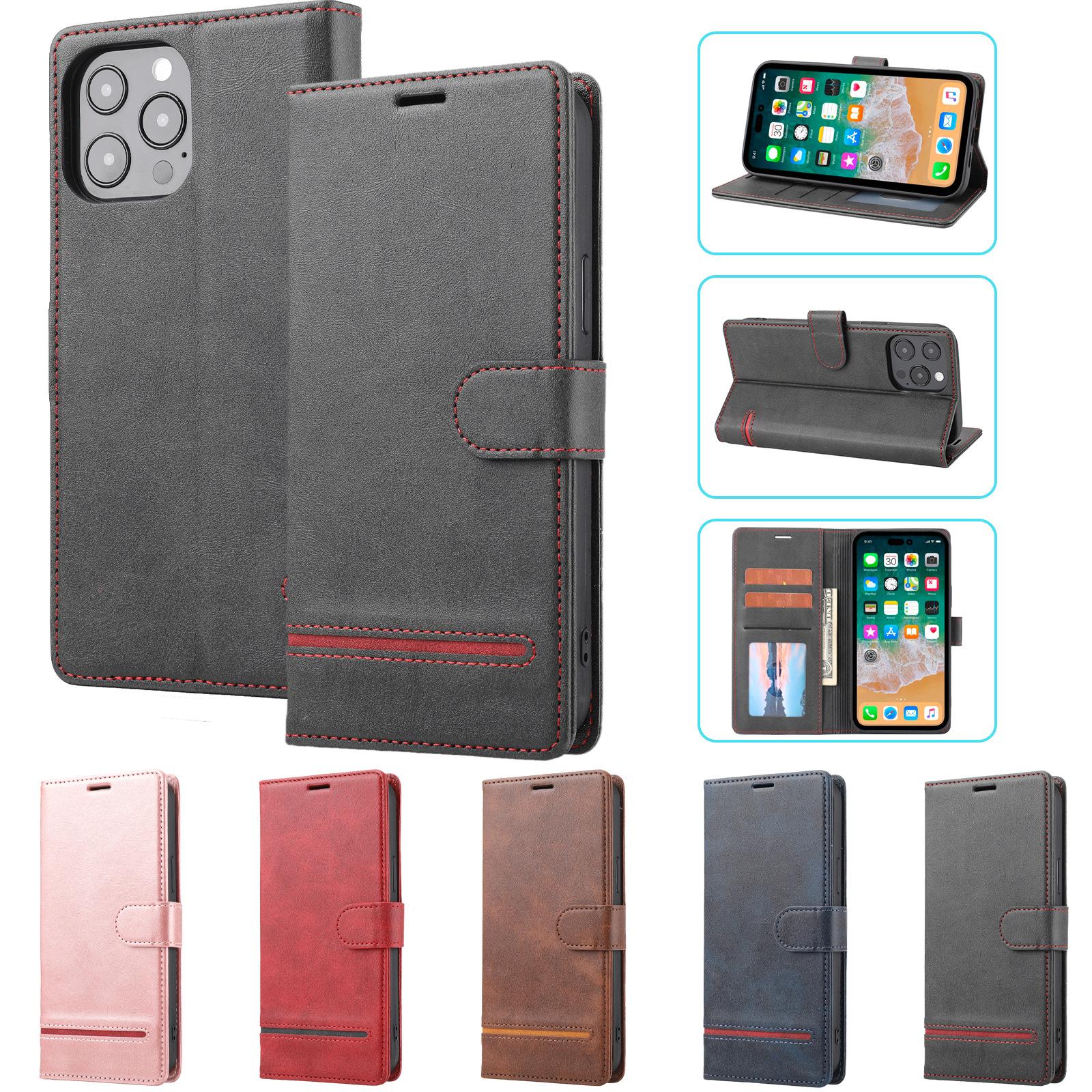 Adecuado para Funda de Cuero para Teléfono Móvil Iphone16 15Pro Retro Business Costuras de Línea Horizontal Billetera para Tarjetas Funda Protectora