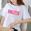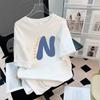 Camiseta de manga corta con estampado de letras cortas de estilo coreano para mujer, top ajustado y adelgazante de moda, combina con todo.