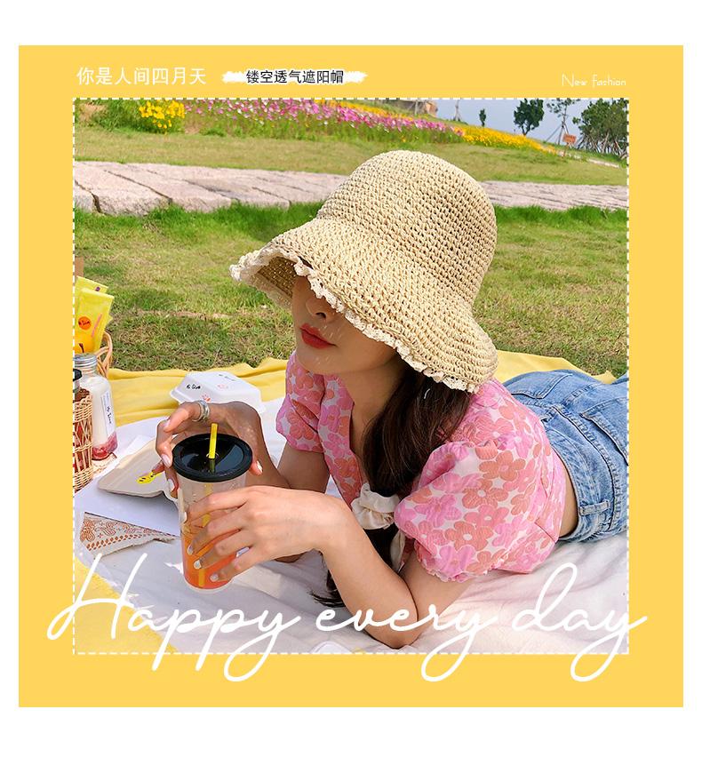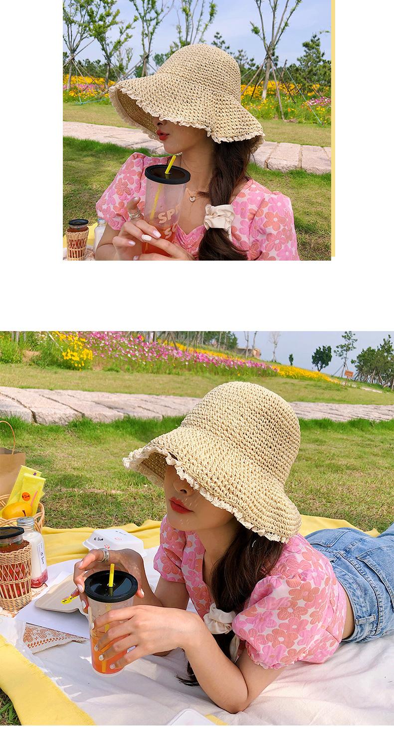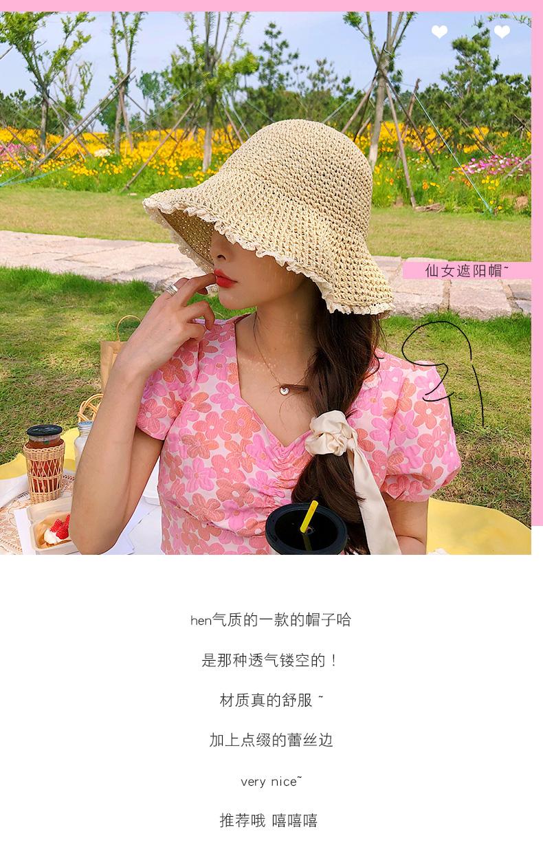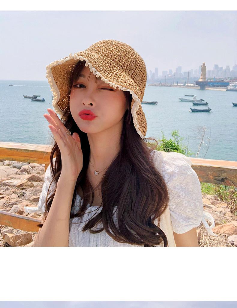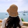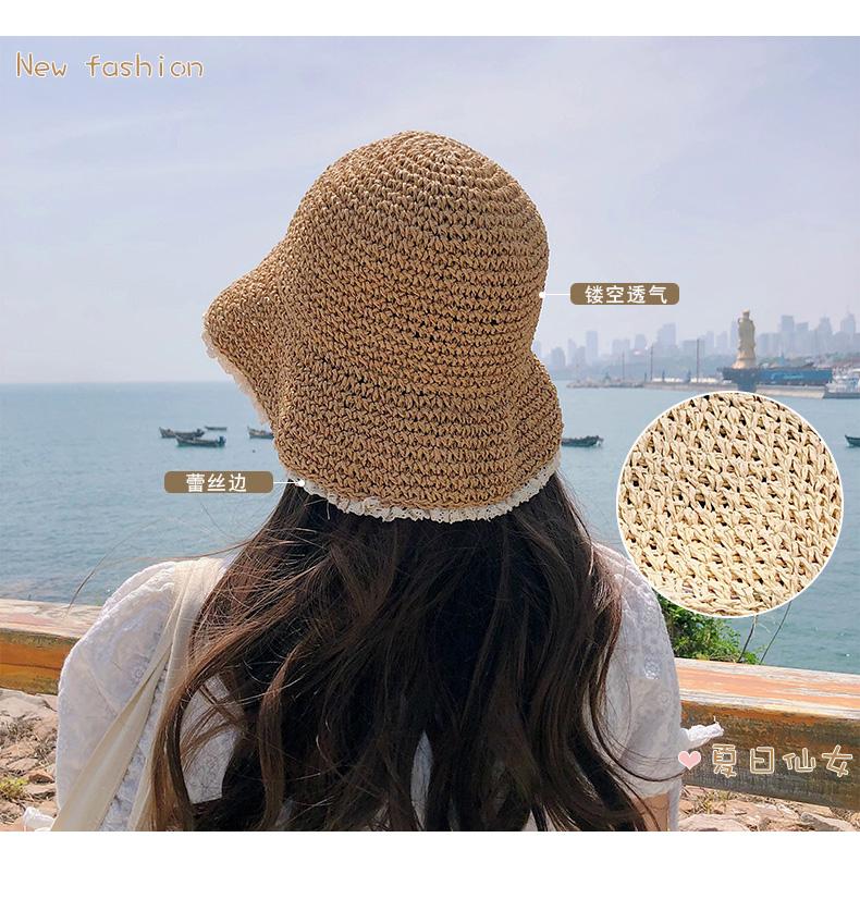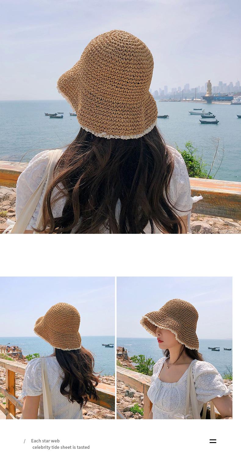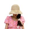 Sombrero de Paja con Encaje Estilo Japonés para Mujer Verano Fresco Playa Sombrilla Sombrero Cubo Estilo Coreano Moderno Combinable Protector Solar Paja Tejida Sombrero de Pescador