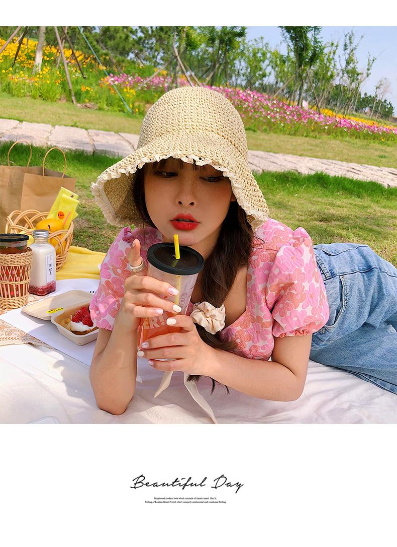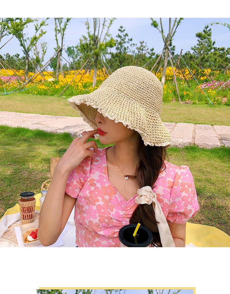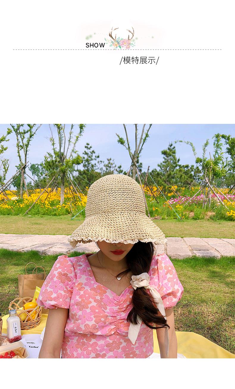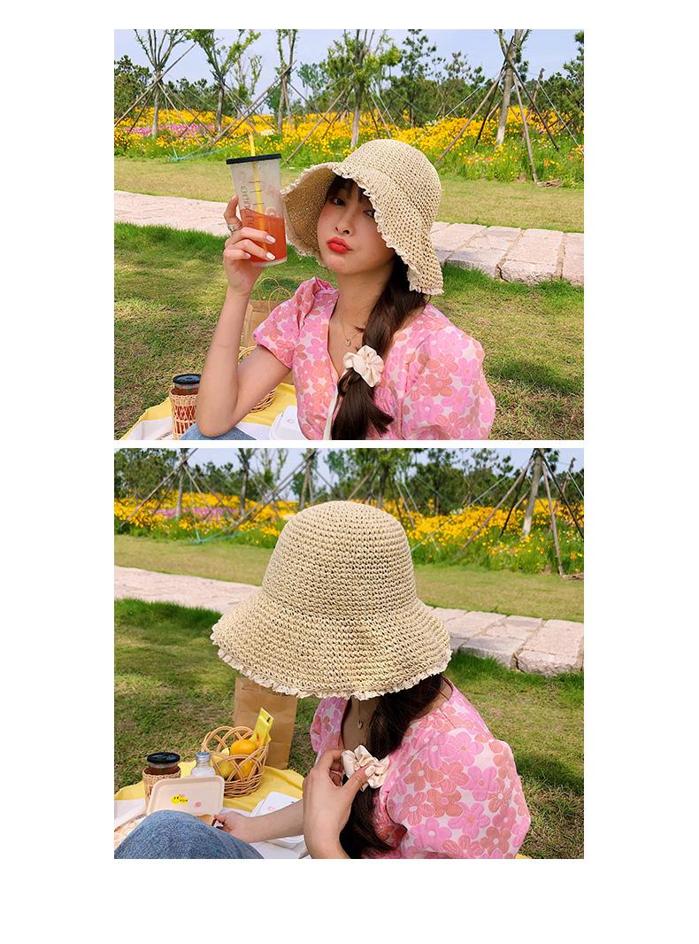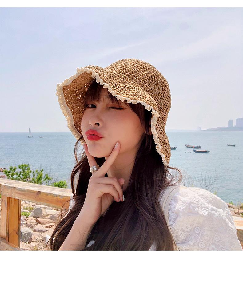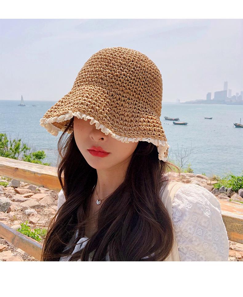 Sombrero de Paja con Encaje Estilo Japonés para Mujer Verano Fresco Playa Sombrilla Sombrero Cubo Estilo Coreano Moderno Combinable Protector Solar Paja Tejida Sombrero de Pescador