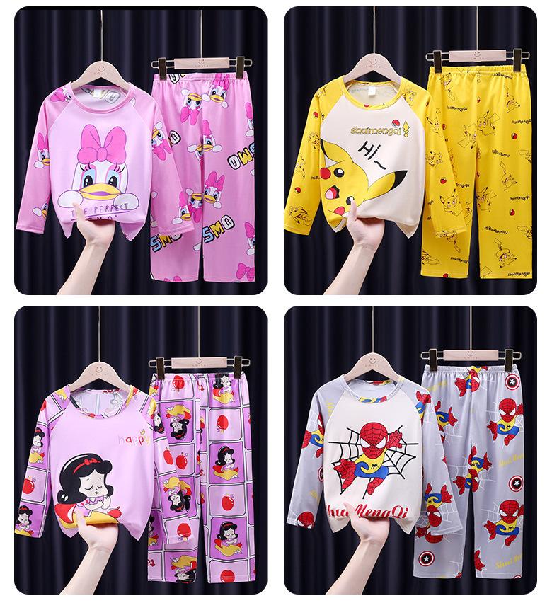 Pijamas infantiles de comercio exterior de primavera y otoño para niños, dibujos animados, lindas, delgadas, para niñas, bebés, medianos y grandes, ropa de hogar para niños al por mayor