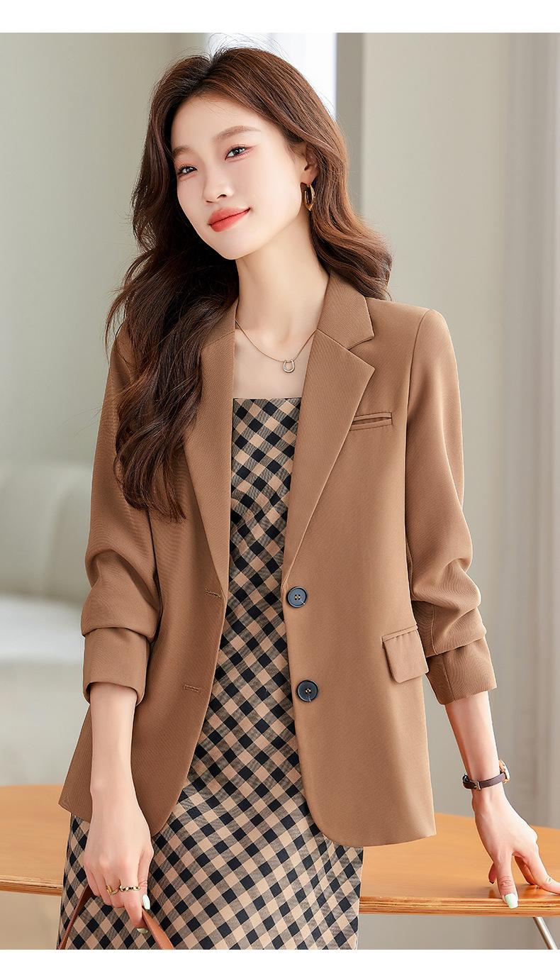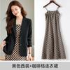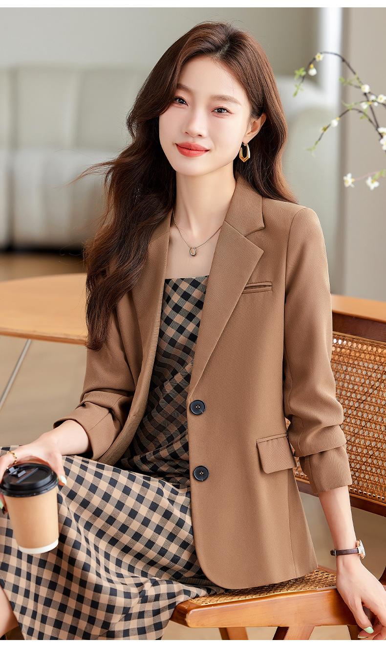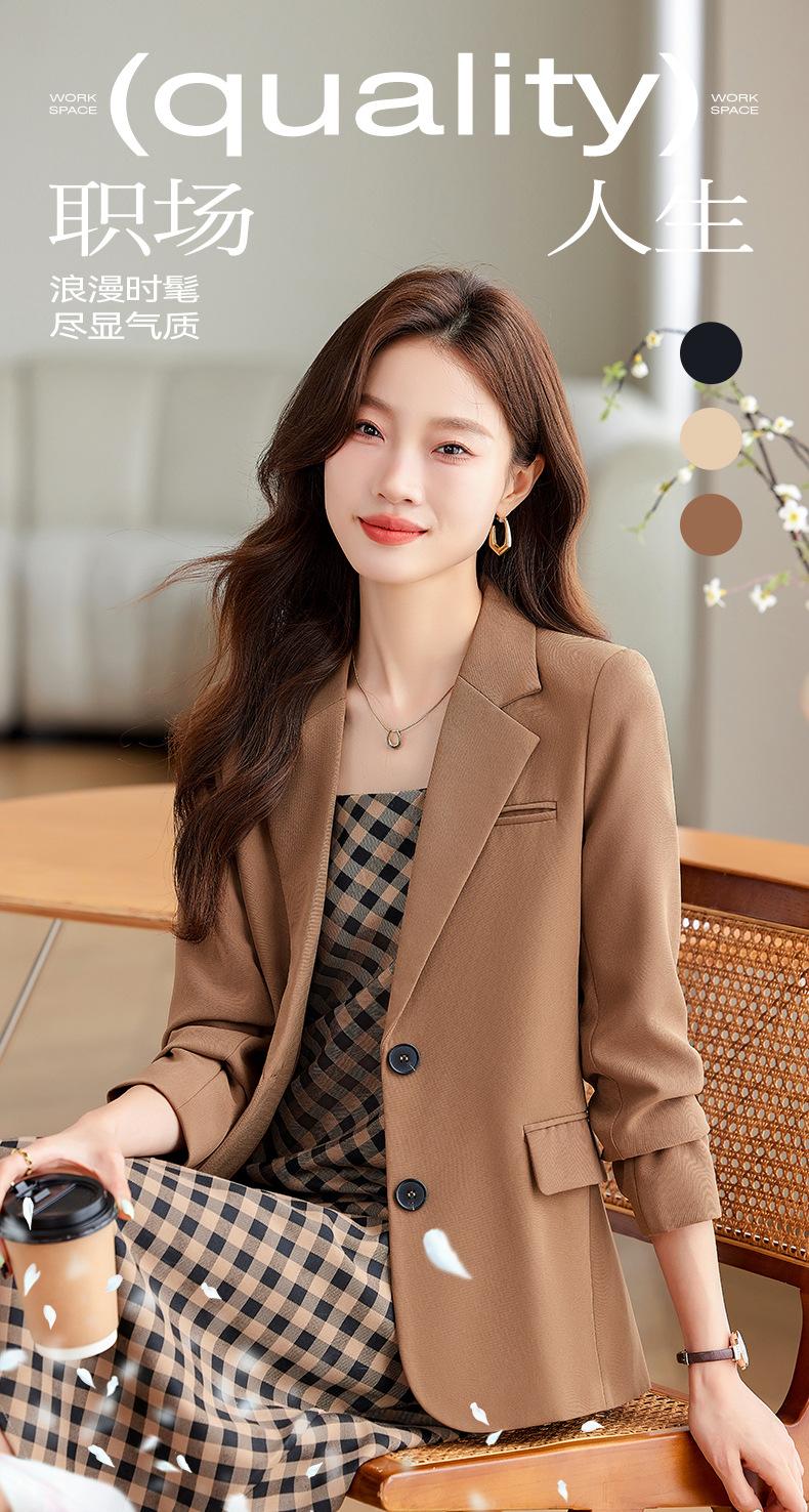 2024 nuevo vestido de traje informal de alta gama, chaqueta de traje marrón de dos piezas para mujer, primavera y otoño