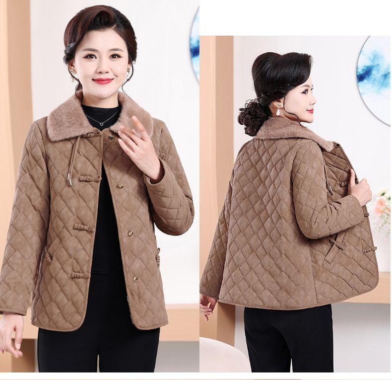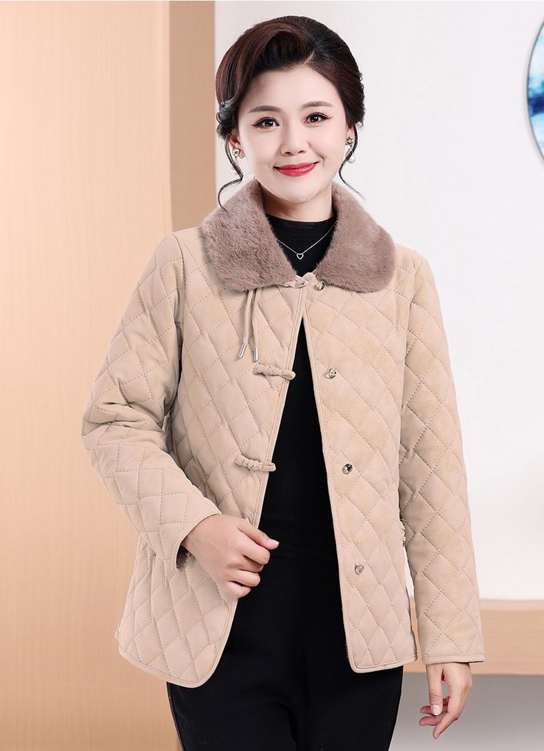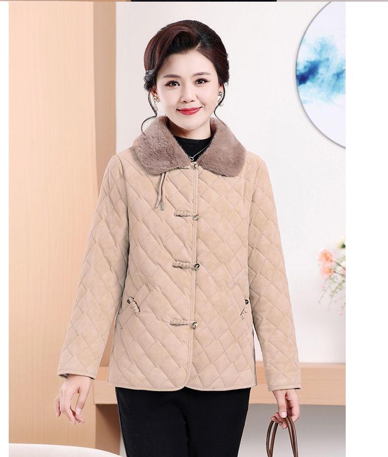 Abrigo de Algodón Cuero de Madre con Forro Polar Engrosado Invierno 2024 Nuevo Estilo Elegante Chaqueta de Algodón Suelta Talla Grande Abrigo de Algodón Corto para Mujer