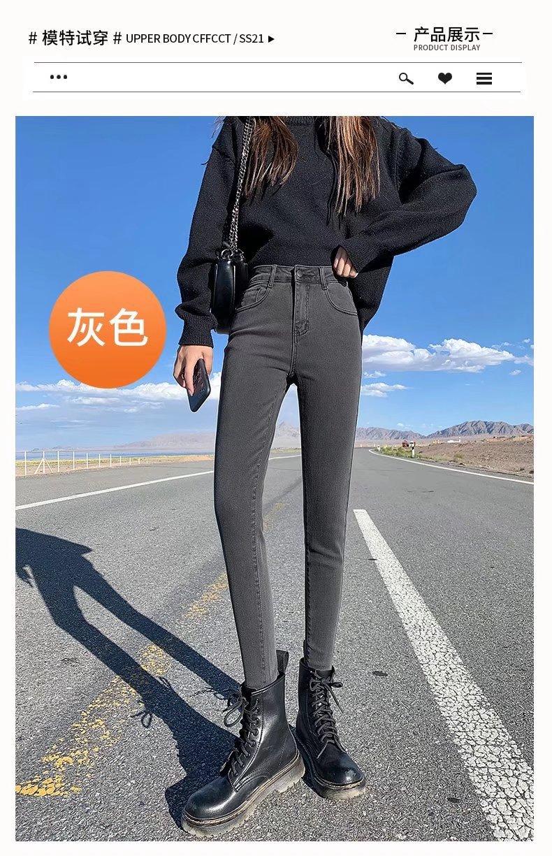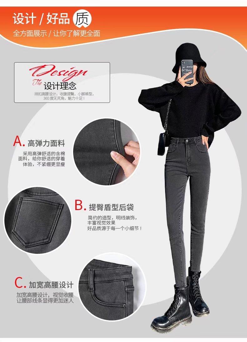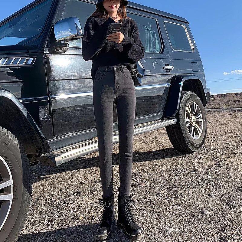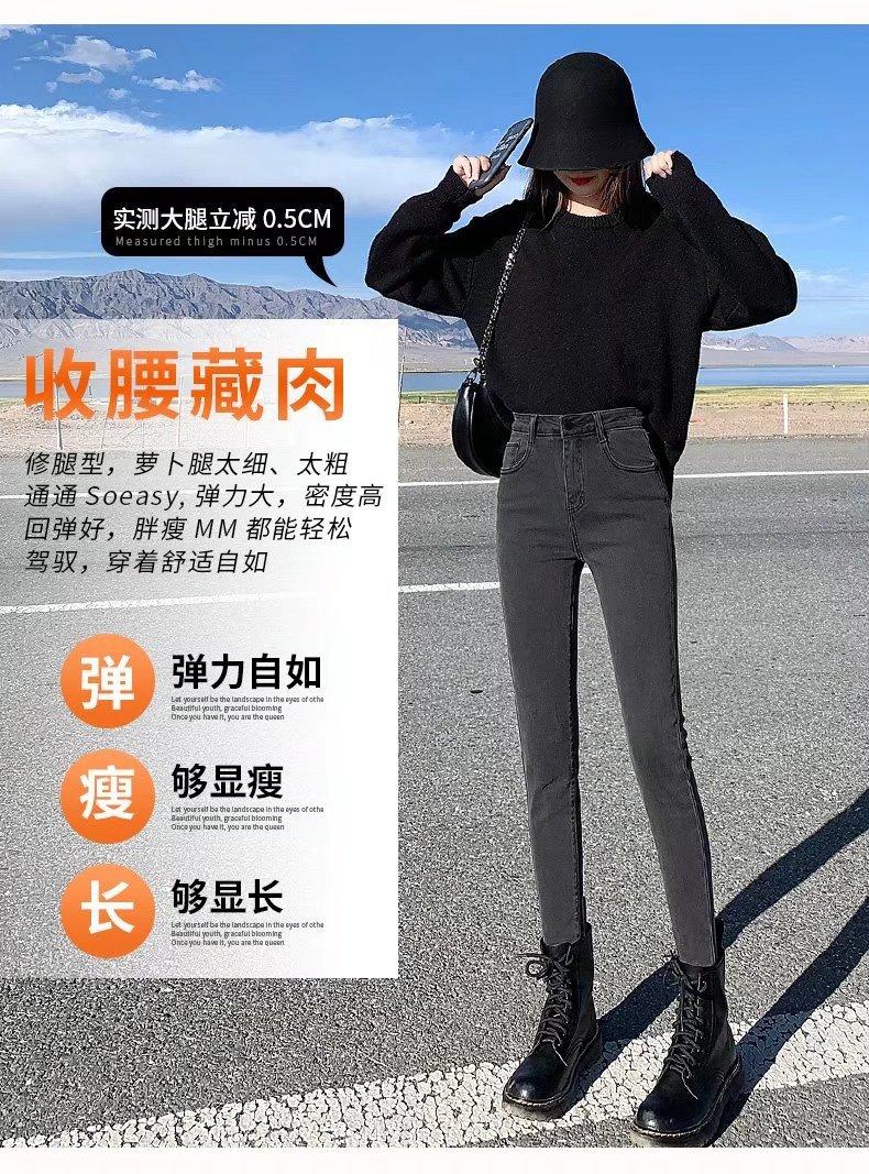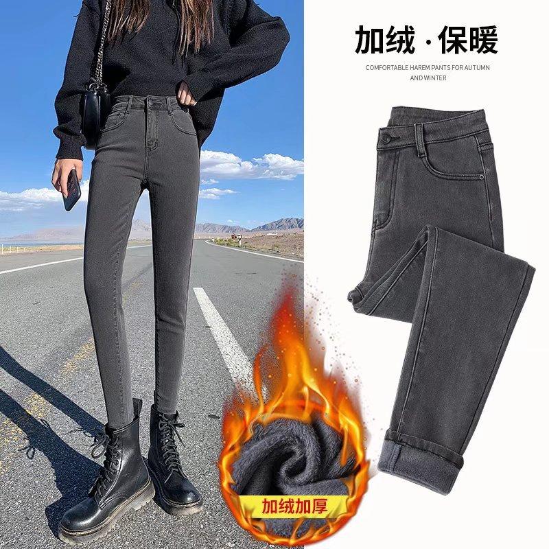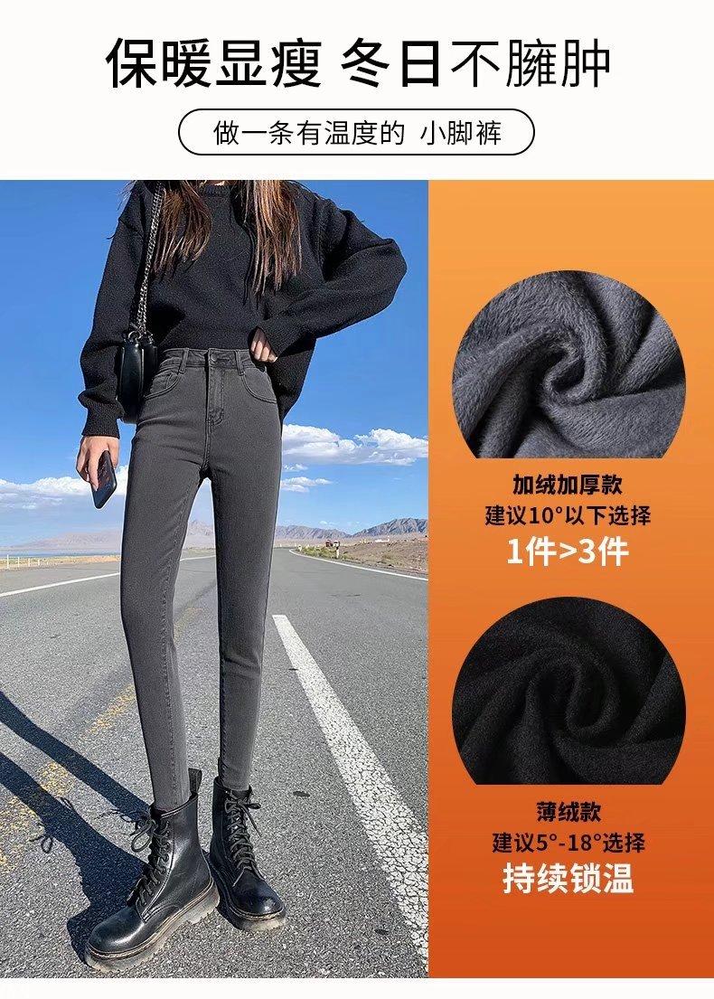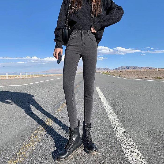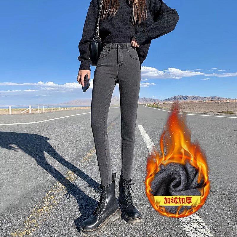 Calça jeans de cintura alta para mulheres 2023 outono novo emagrecimento preto slim fit apertado popular lápis calças com forro de lã