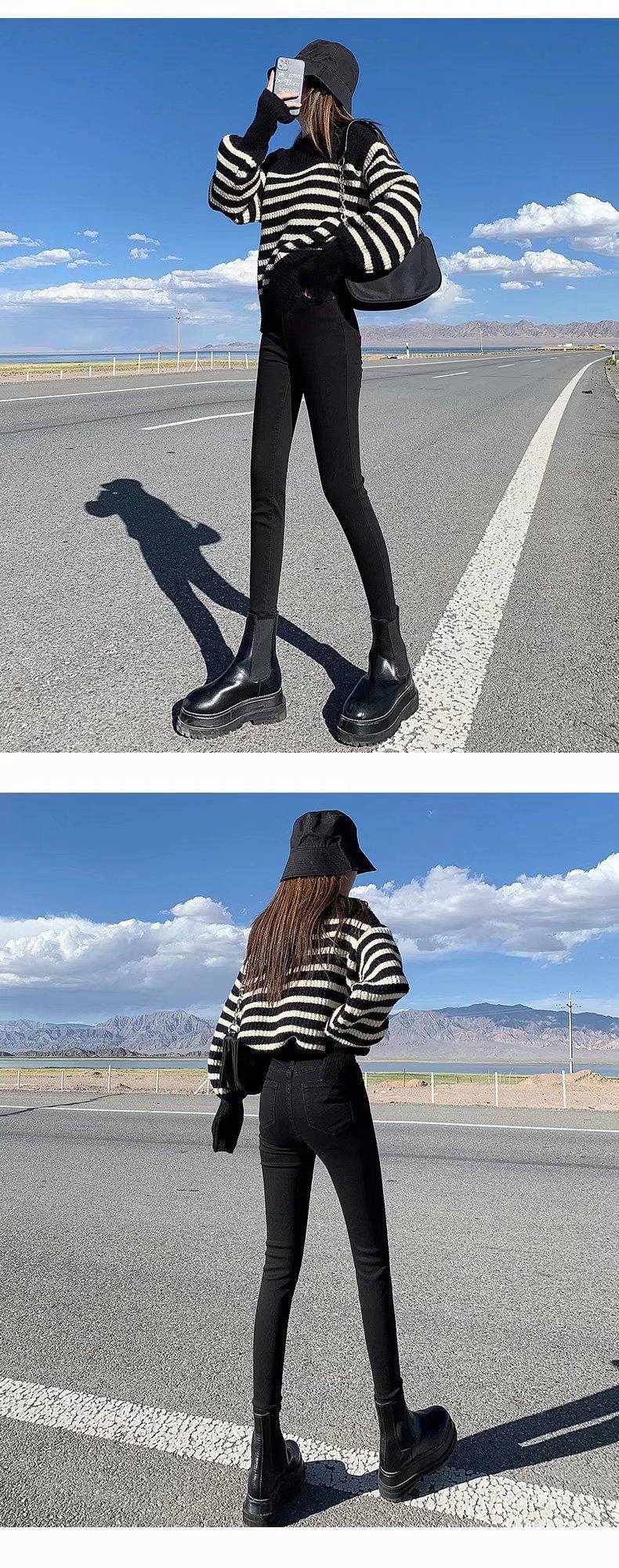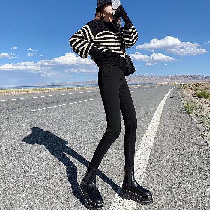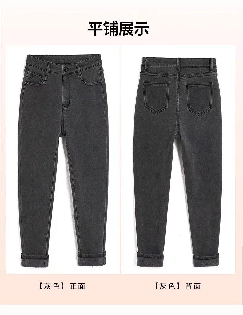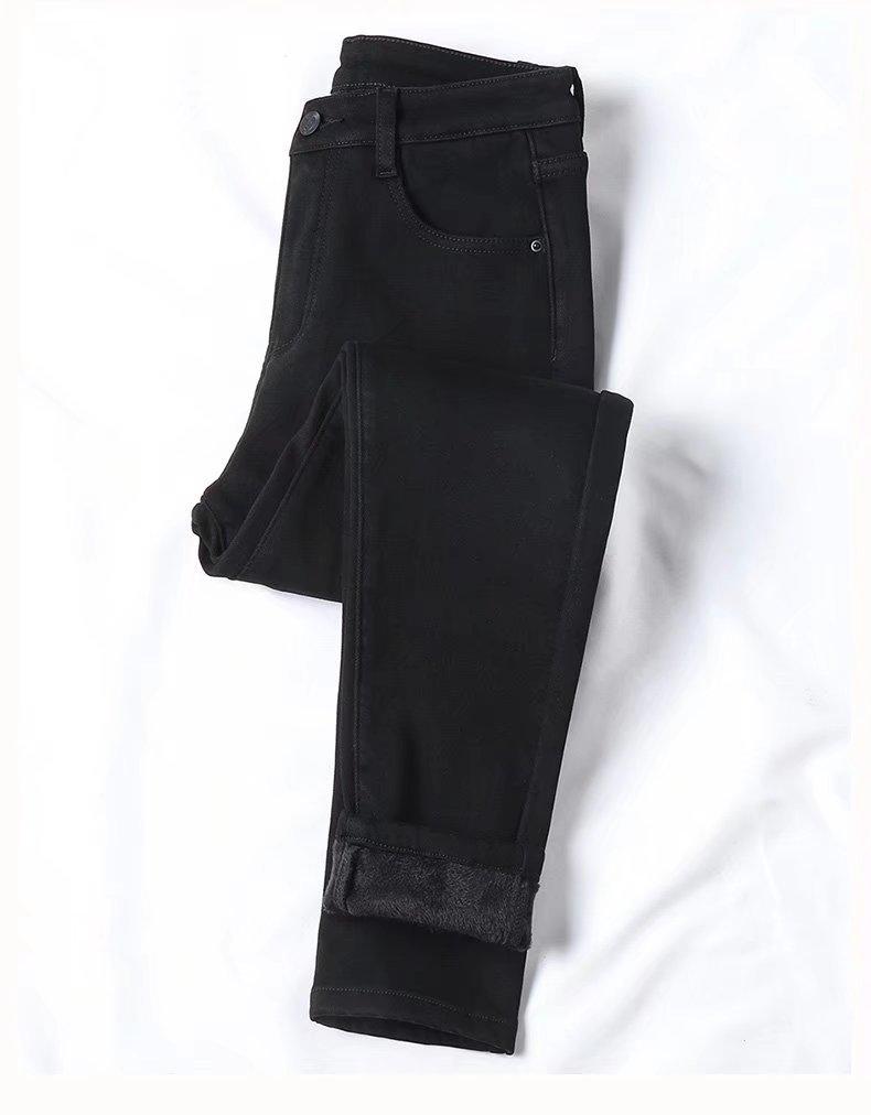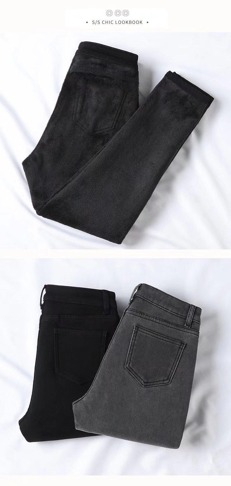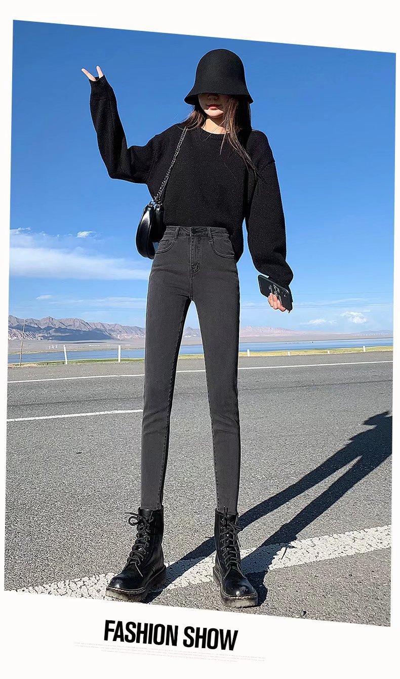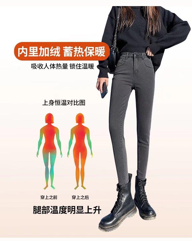 Calça jeans de cintura alta para mulheres 2023 outono novo emagrecimento preto slim fit apertado popular lápis calças com forro de lã