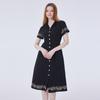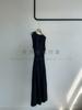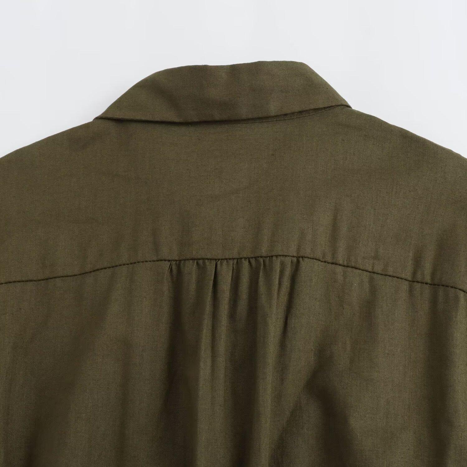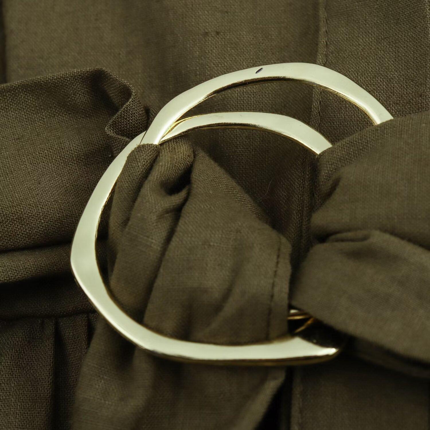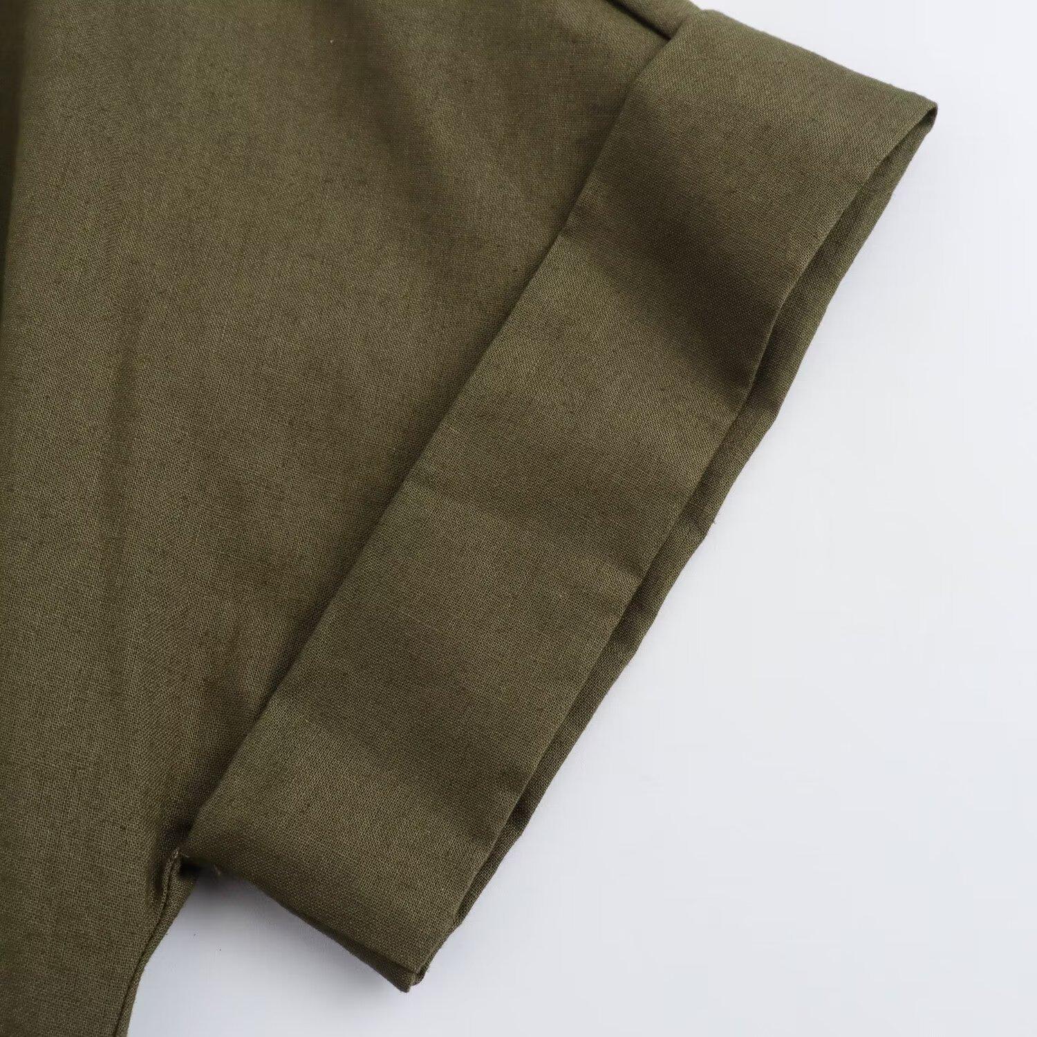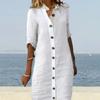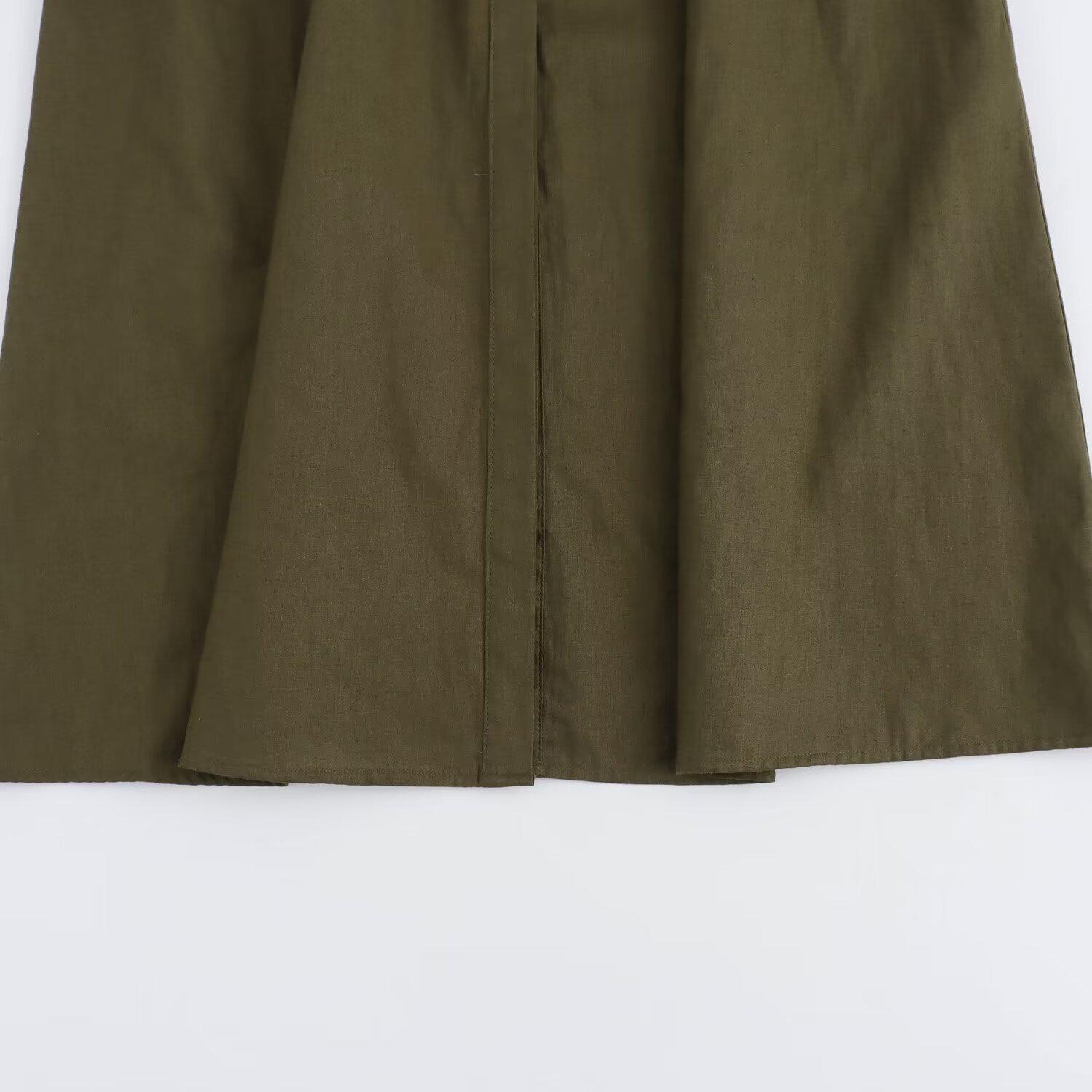 Vestido midi de lino mezclado con manga corta y color liso, novedad de verano 2024, falda con cinturón para mujer transfronteriza europea y americana.