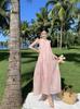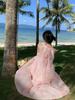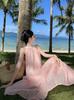 Vestido estilo francés con encaje, cuello halter, sin mangas, holgado, largo, corte A, con volantes, color rosa y teñido anudado.
