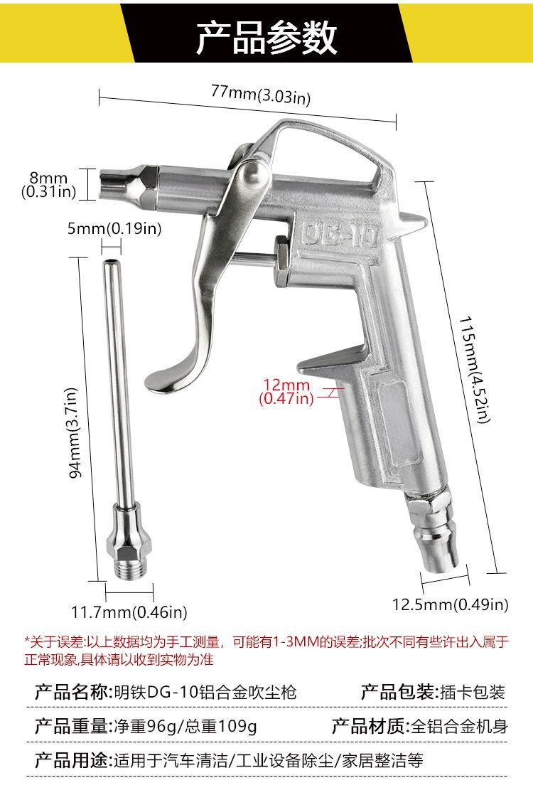 Pistola de aire para soplado de polvo de coche/equipo limpieza eliminación de polvo gran volumen de aire pistola neumática para soplado de polvo DG-10 pistola para soplado de polvo de aleación de aluminio