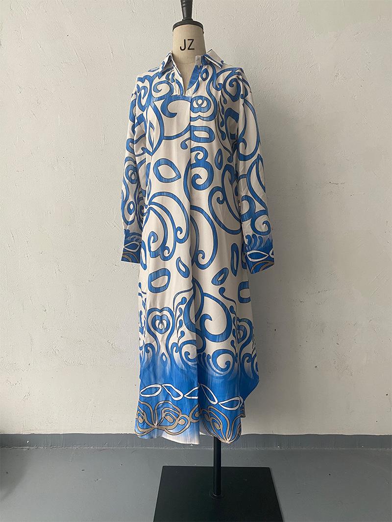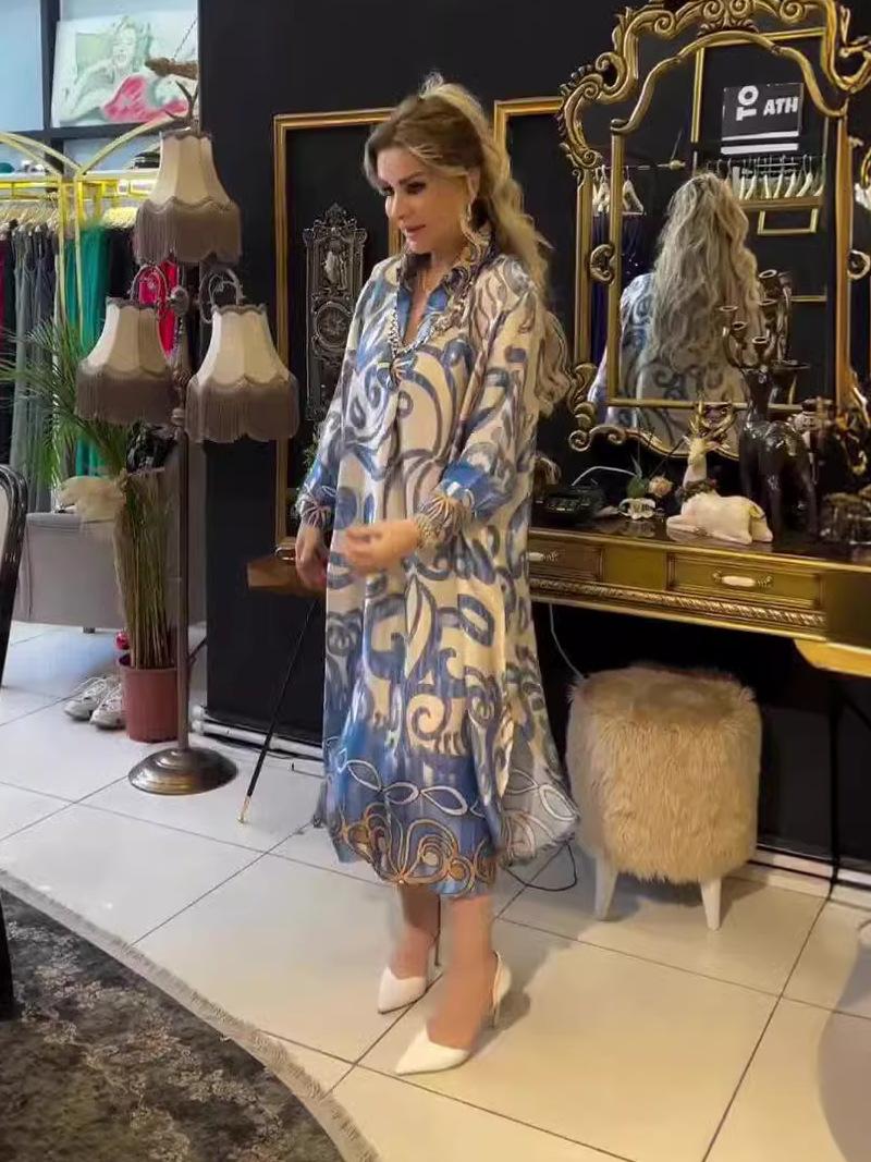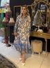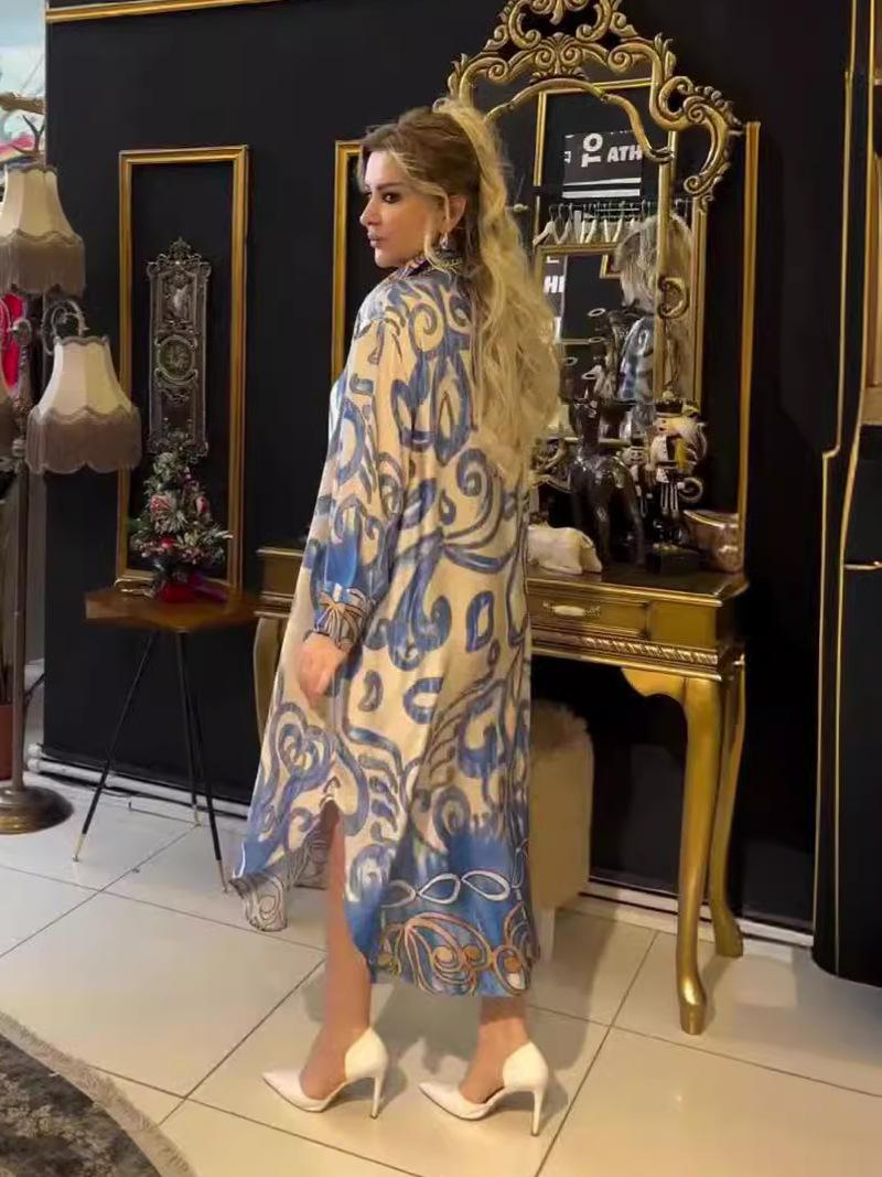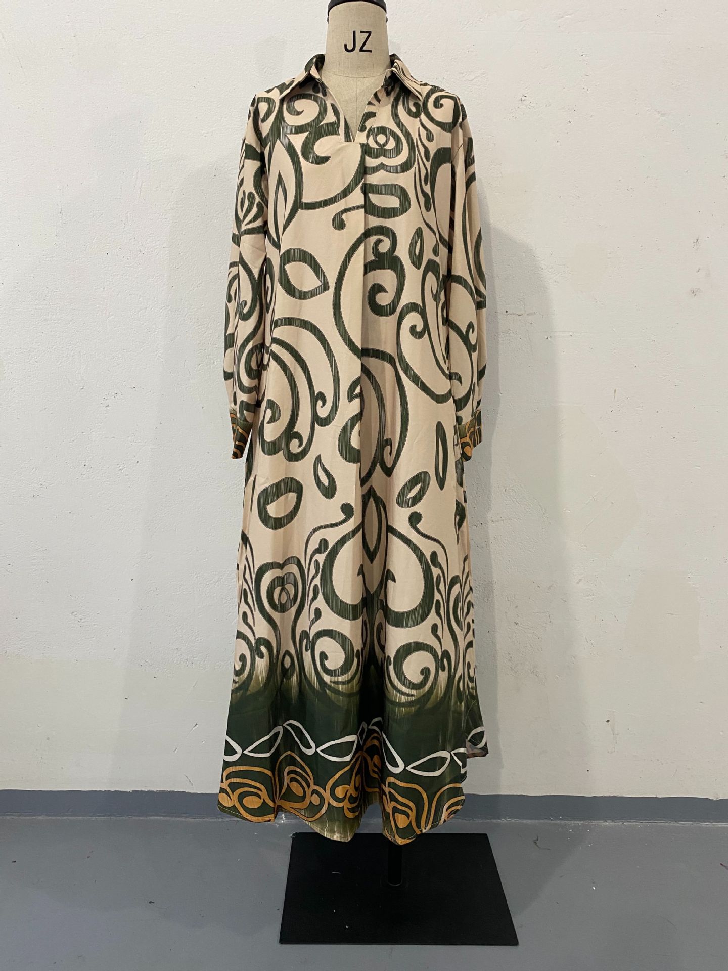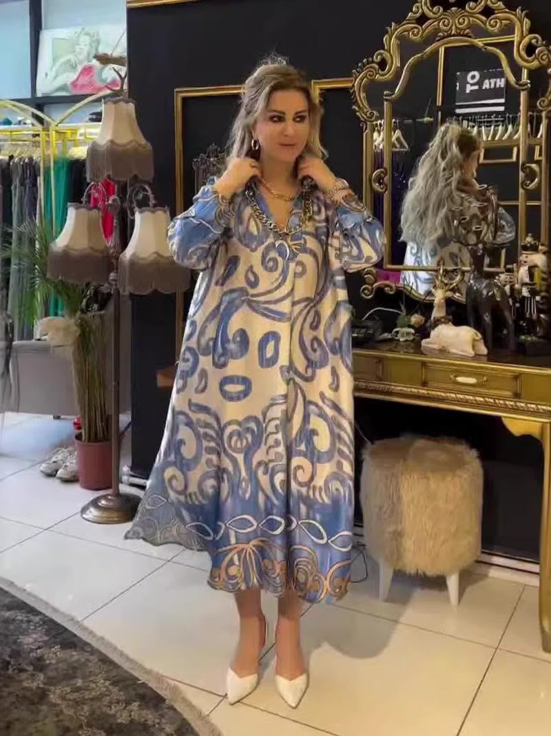 Amazon 2024 Verano Europeo y Americano Nuevo Cuello en V Moda Estampado Manga Larga Vestido Suelto para Mujer