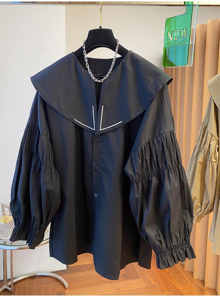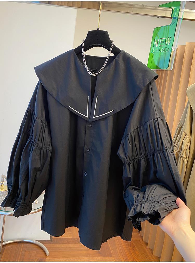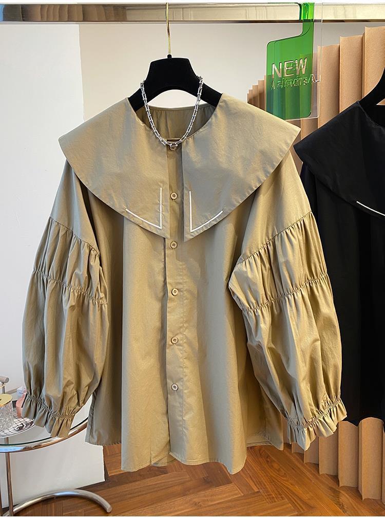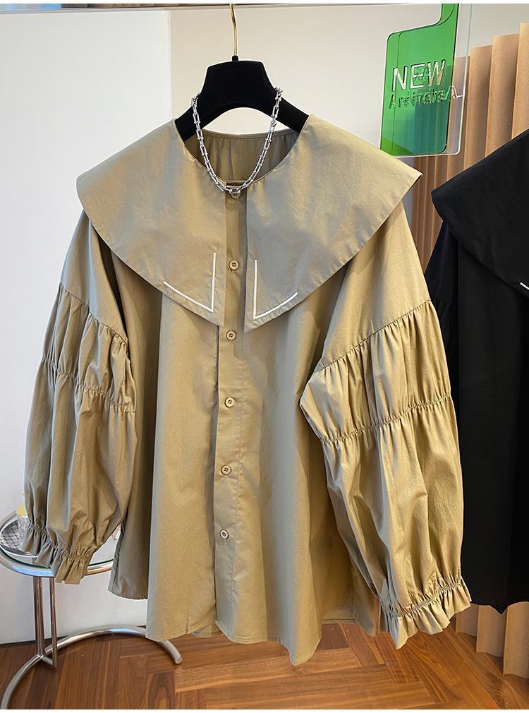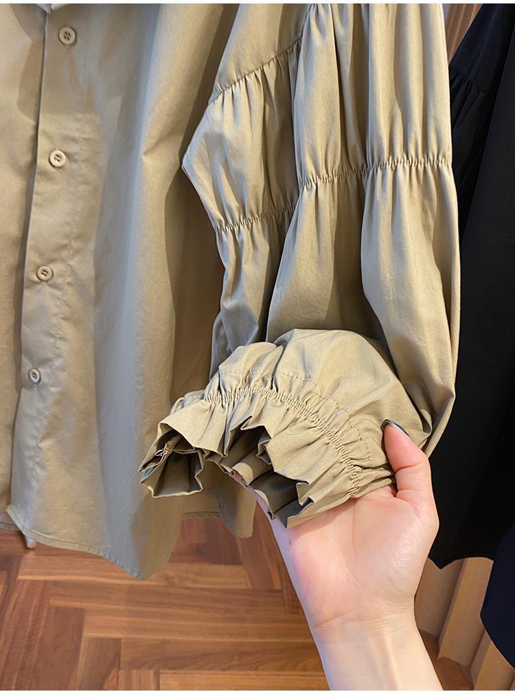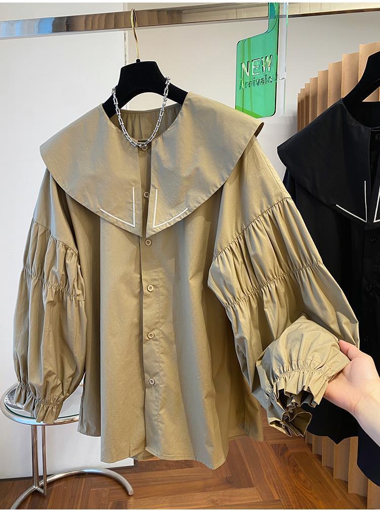 Camisa holgada de primavera y otoño de productos europeos 2024 para mujer, top de manga farol con diseño de cuello de muñeca delgado, tendencia de comercio exterior