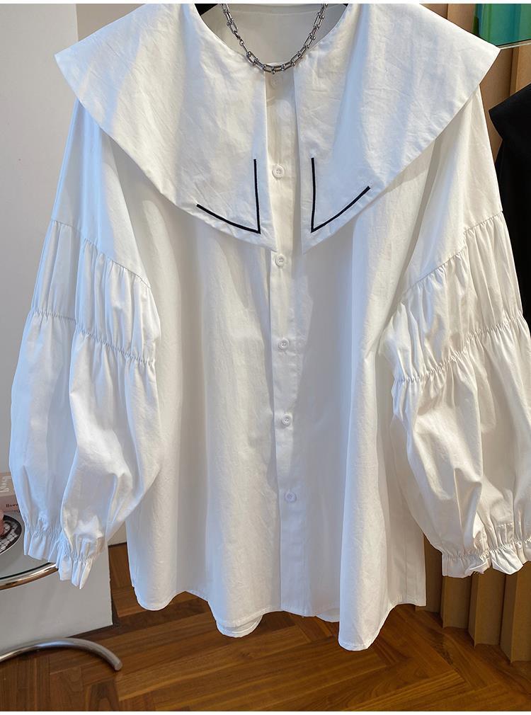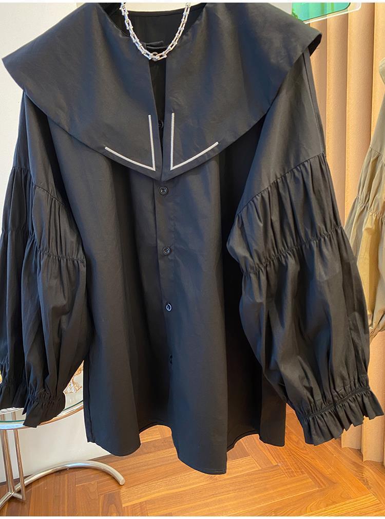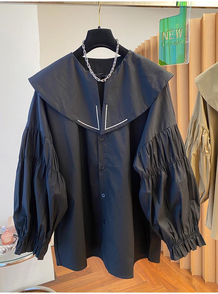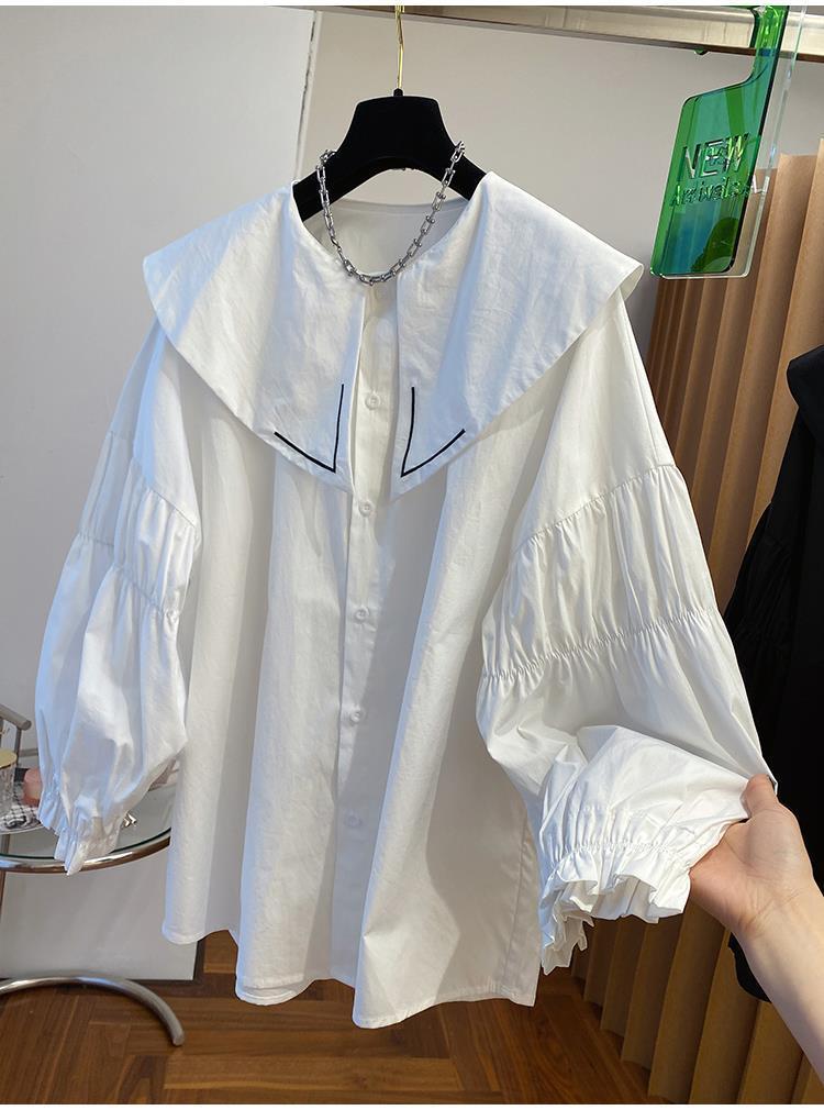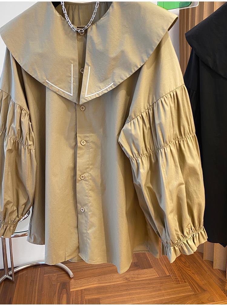 Camisa holgada de primavera y otoño de productos europeos 2024 para mujer, top de manga farol con diseño de cuello de muñeca delgado, tendencia de comercio exterior