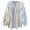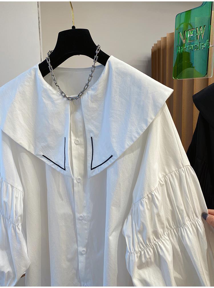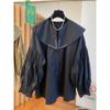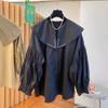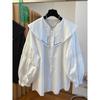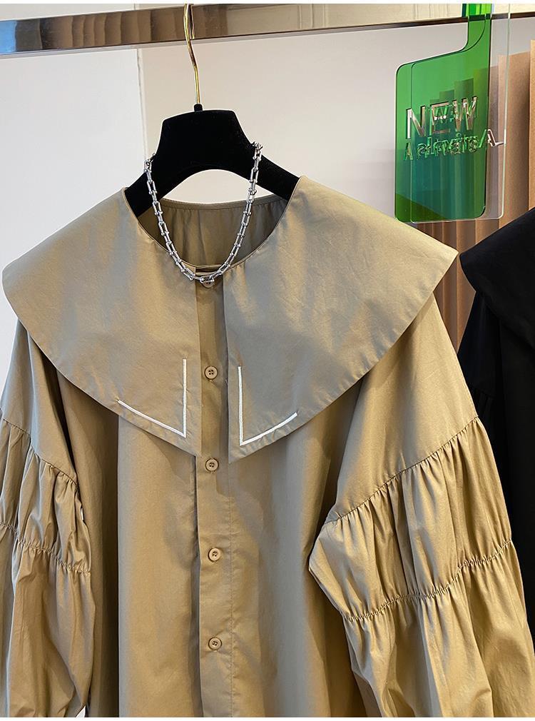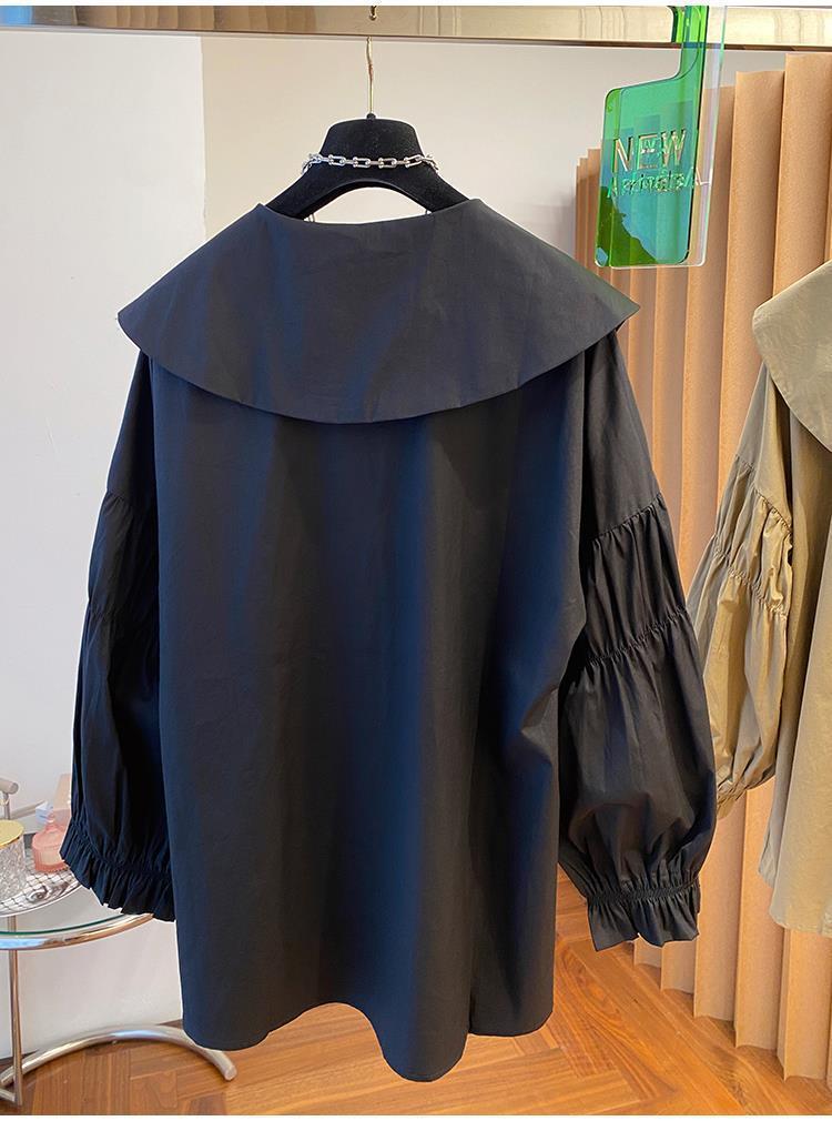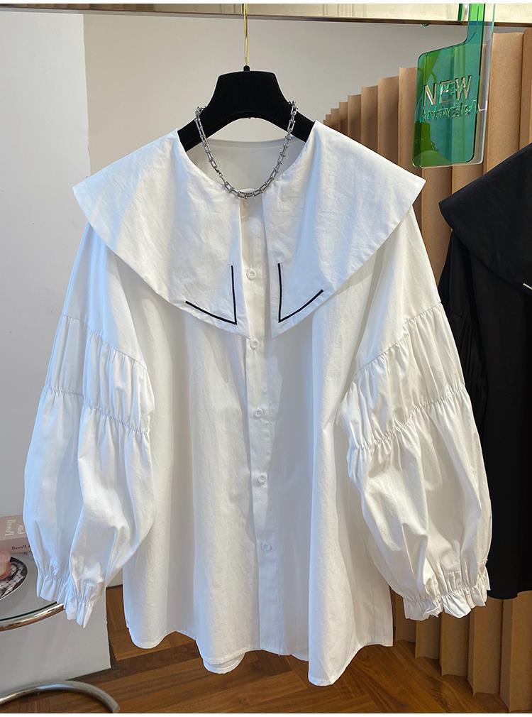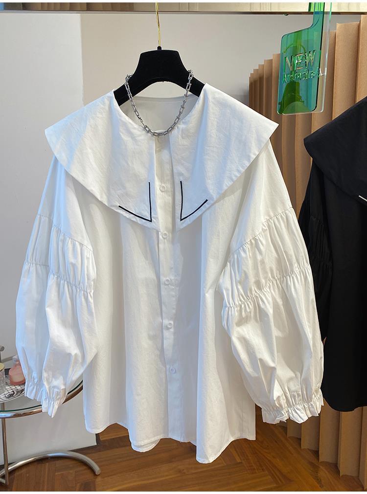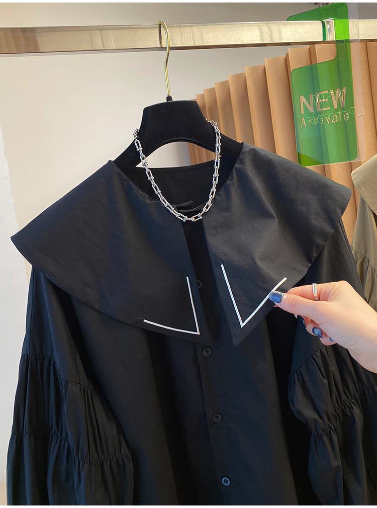 Camisa holgada de primavera y otoño de productos europeos 2024 para mujer, top de manga farol con diseño de cuello de muñeca delgado, tendencia de comercio exterior