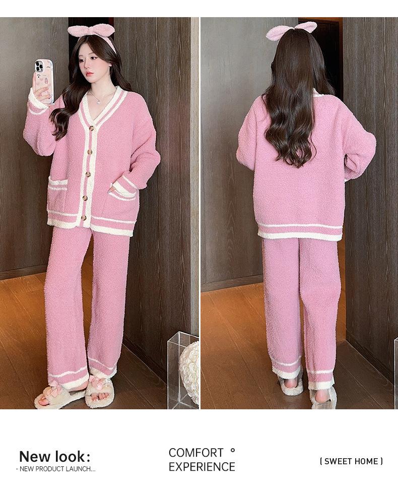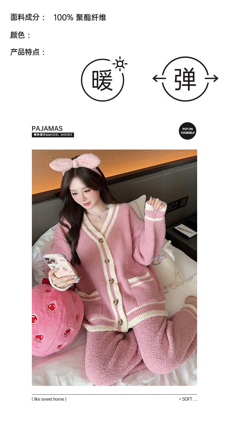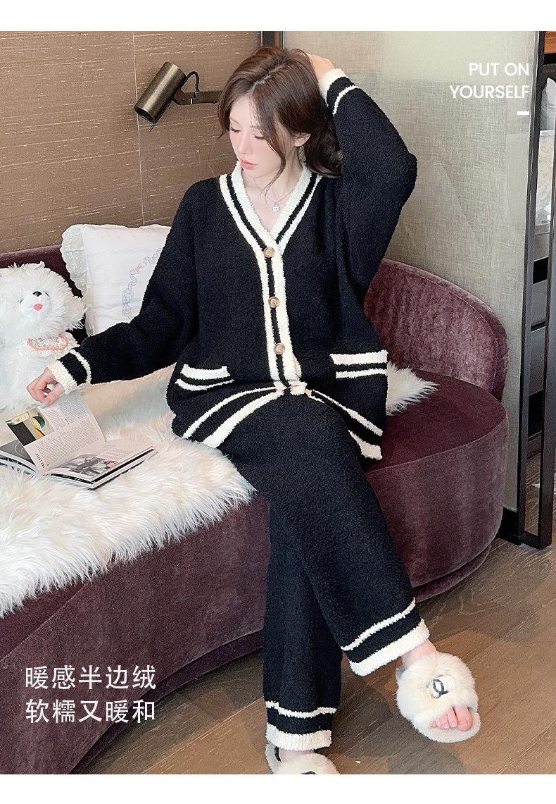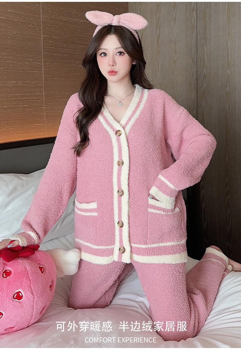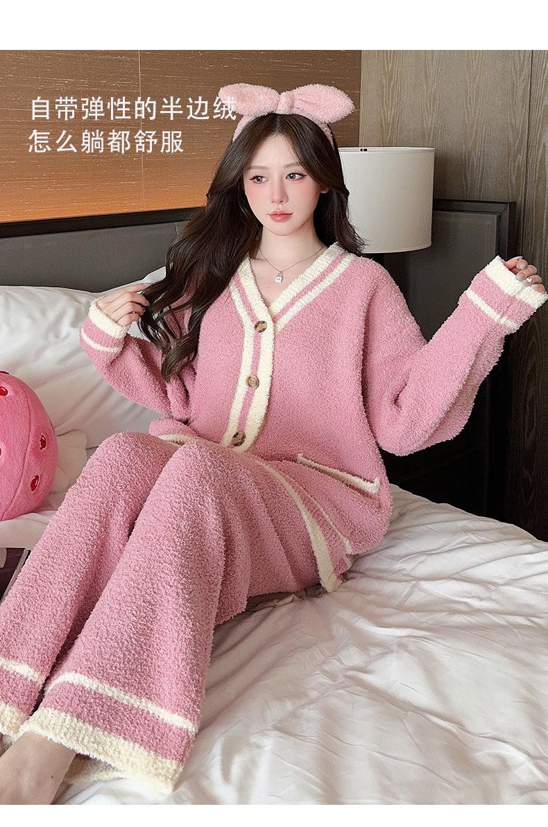 Pijamas de terciopelo suave de medio lado para mujer, ropa de invierno ligera, de lujo, gruesa y cálida para el hogar, novedad de 2024