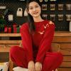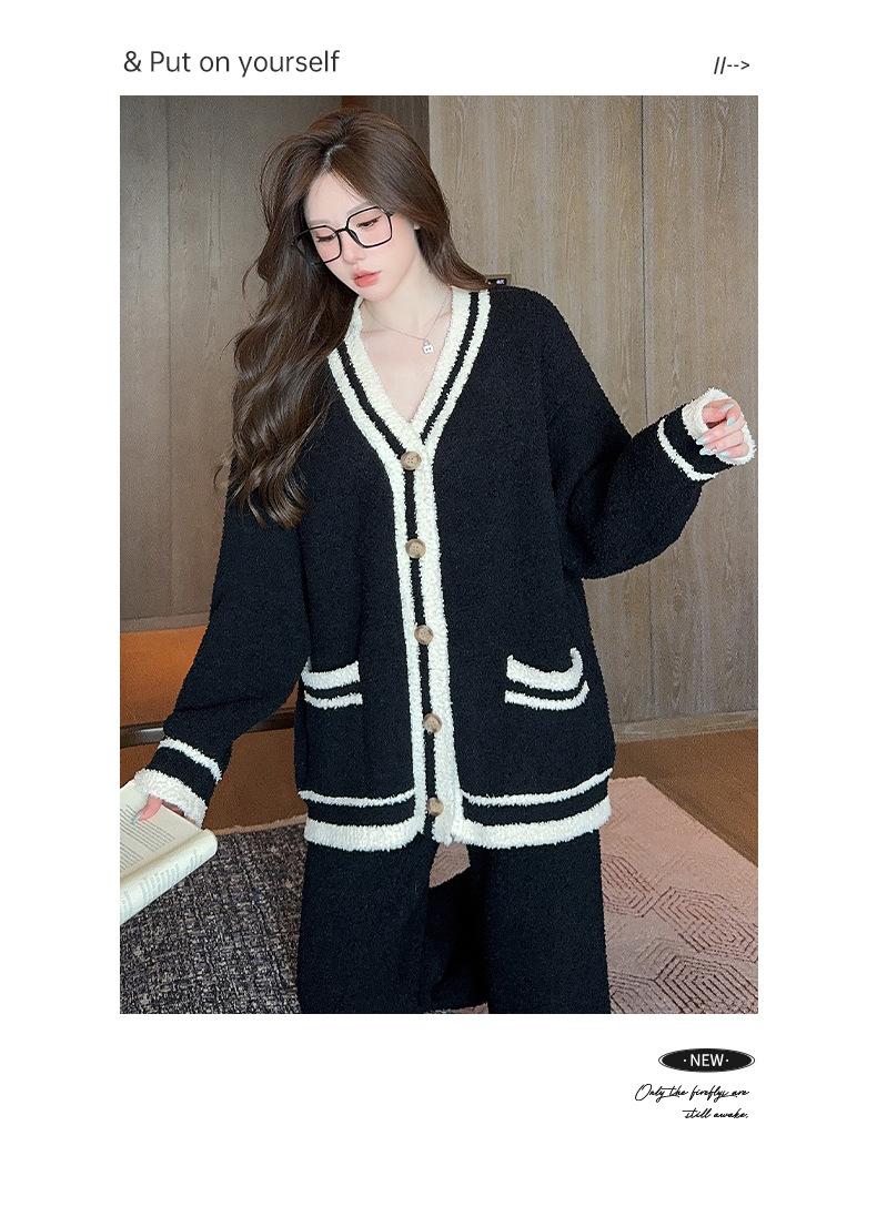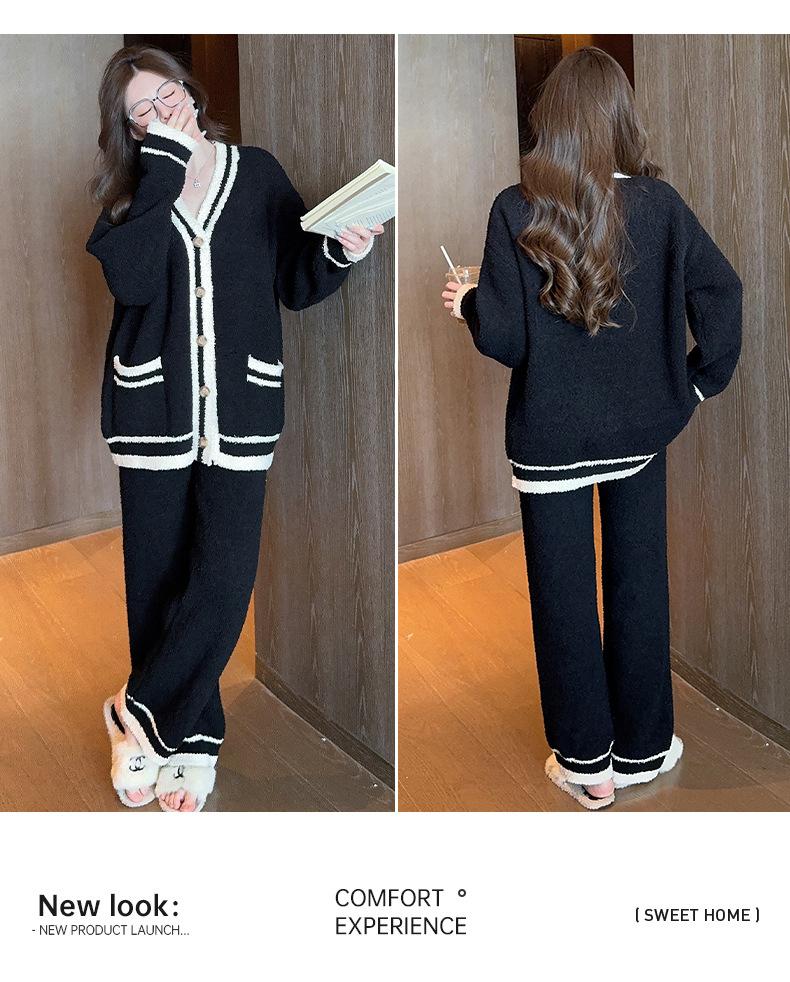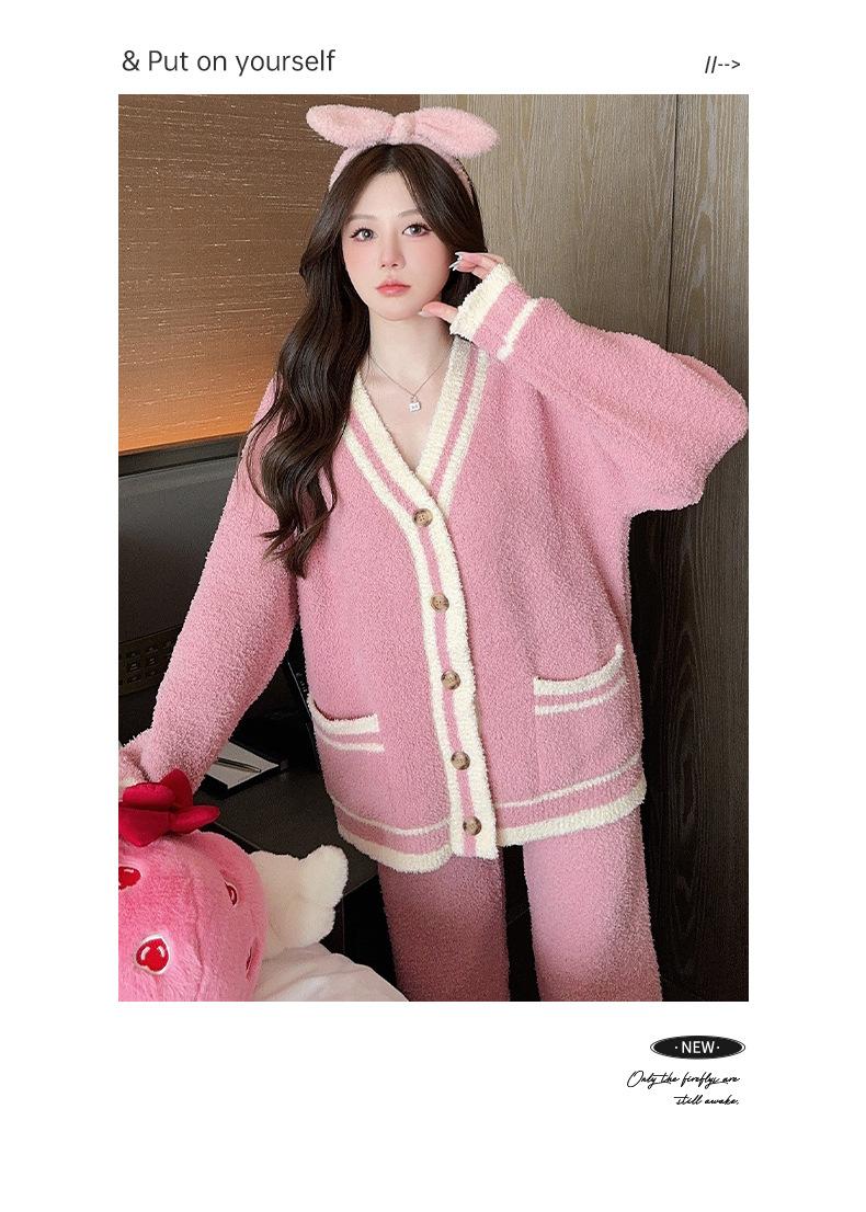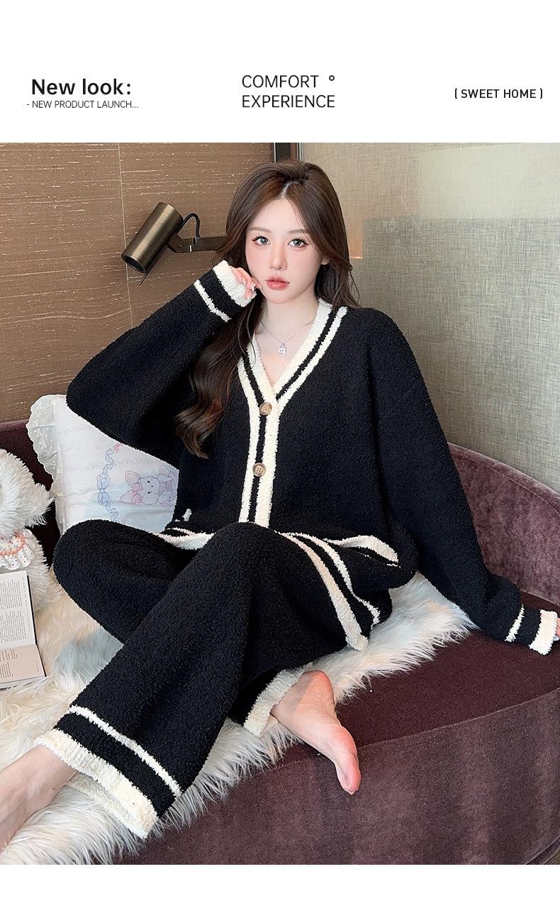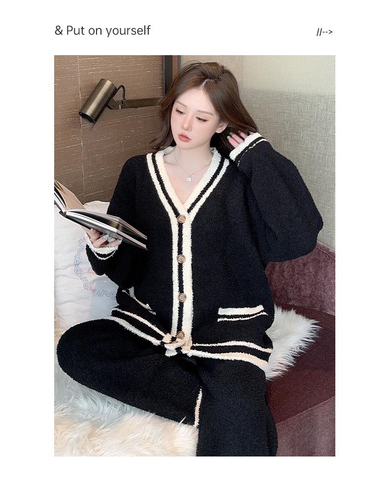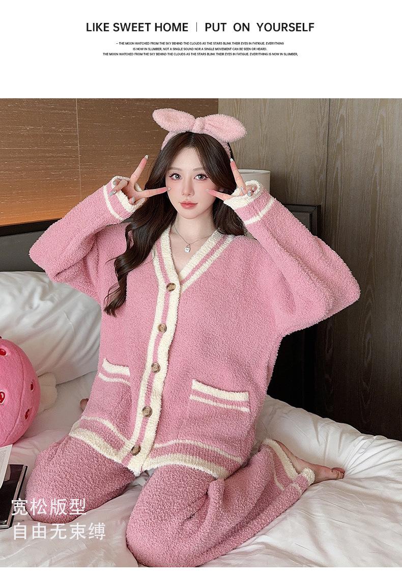 Pijamas de terciopelo suave de medio lado para mujer, ropa de invierno ligera, de lujo, gruesa y cálida para el hogar, novedad de 2024